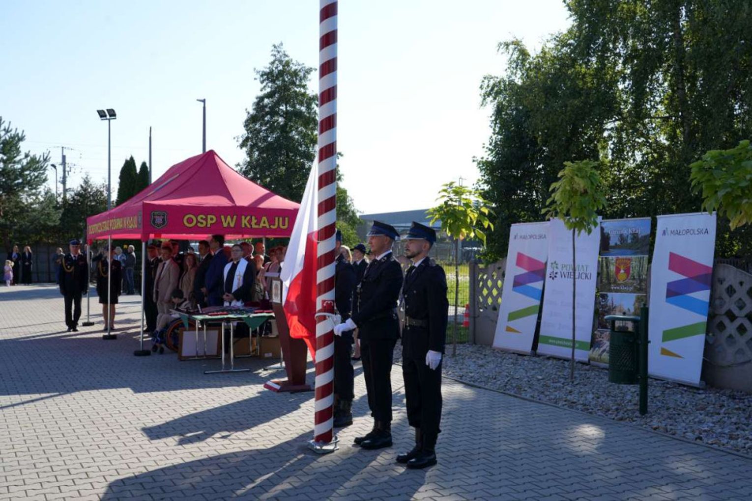 Obchody rozpoczęły się od złożenia meldunku przez dowódcę uroczystości, mł. kpt. Łukasza Tomczaka ze Szkoły Aspirantów Państwowej Straży Pożarnej w Krakowie Prezesowi Zarządu Oddziału Powiatowego Ochotniczych Straży Pożarnych RP Władysławowi Kucharskiemu, po czym nastąpiło podniesienie flagi państwowej na maszt i odśpiewanie hymnu narodowego. Następnie odbyło się uroczyste przecięcie wstęgi symbolizujące otwarcie nowej części remizy. Obiekt został poświęcony przez ks. Kanonika Jana Bierowca, proboszcza parafii pw. św. Józefa Robotnika w Kłaju.