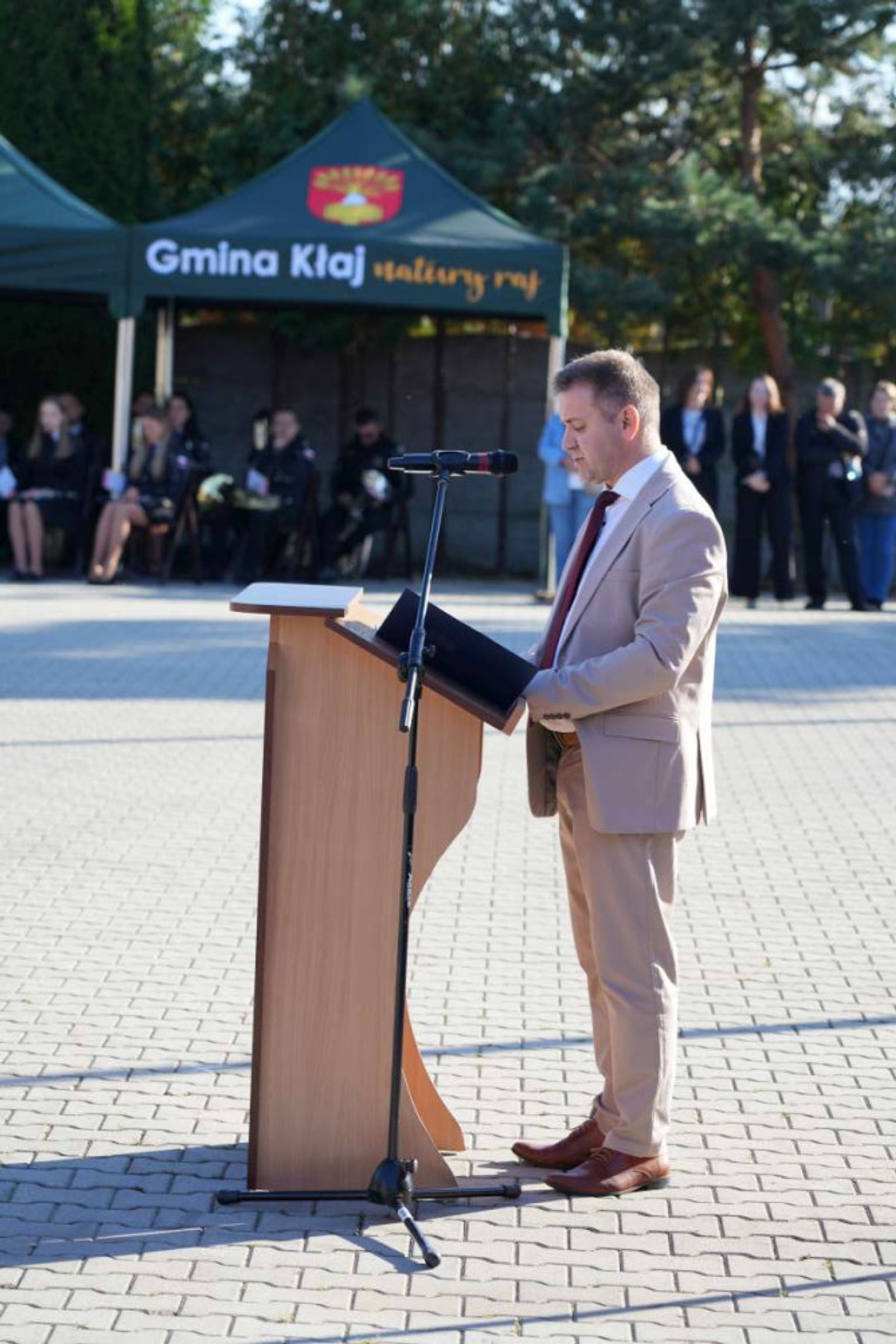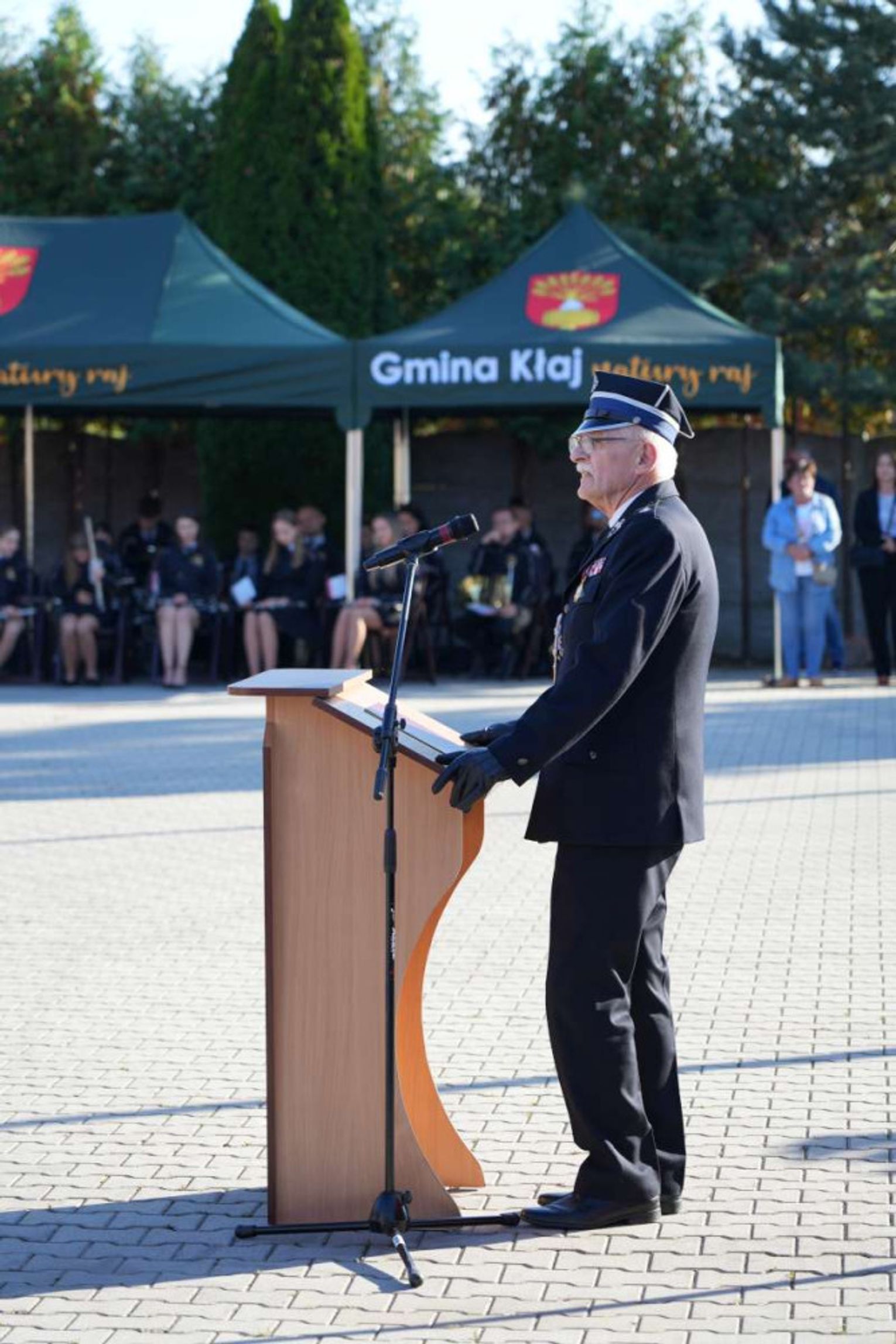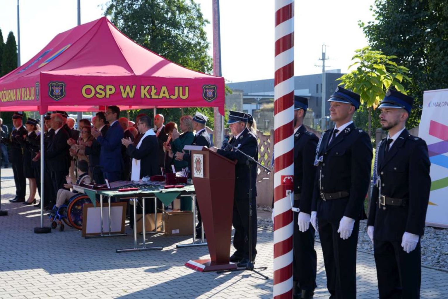 Podczas uroczystości głos zabrali m.in.: mł. bryg. Robert Ulman – Komendant Powiatowy PSP w Wieliczce, Roman Wcisło - dyrektor Departamentu Programów Unijnych dla Obszarów Wiejskich i KPO, Roman Ptak - Starosta Wielicki oraz Zbigniew Strączek - Wójt Gminy Kłaj. W swoich wystąpieniach podkreślali znaczenie strażaków ochotników dla bezpieczeństwa mieszkańców oraz dziękowali im za poświęcenie i wieloletnią służbę. Strażacy otrzymali od zaproszonych gości jubileuszowe prezenty.