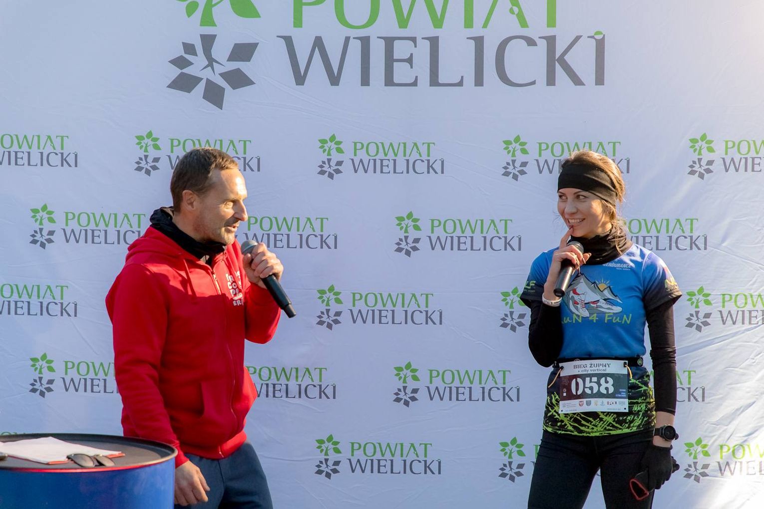 Przed rozpoczęciem zmagań uczestników przywitała Ewa Ptasznik, Wicestarosta Wielicki, życząc wszystkim biegaczom dobrej energii, sportowej rywalizacji w duchu fair play oraz wielu powodów do dumy po przekroczeniu mety.