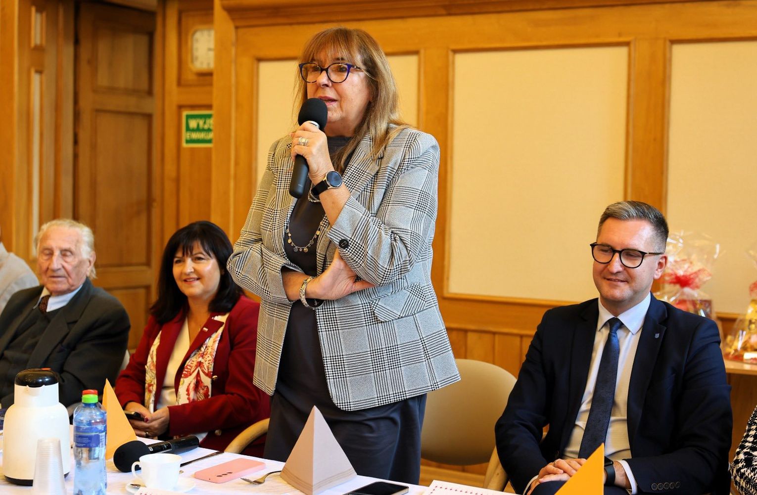 Wśród gości obecna była Wicestarosta Ewa Ptasznik, która w imieniu Starosty Wielickiego Romana Ptaka oraz swoim własnym złożyła Seniorom serdeczne życzenia, podkreślając, że to właśnie Oni – siedzący przy stołach – tworzą tę niepowtarzalną, ciepłą atmosferę.