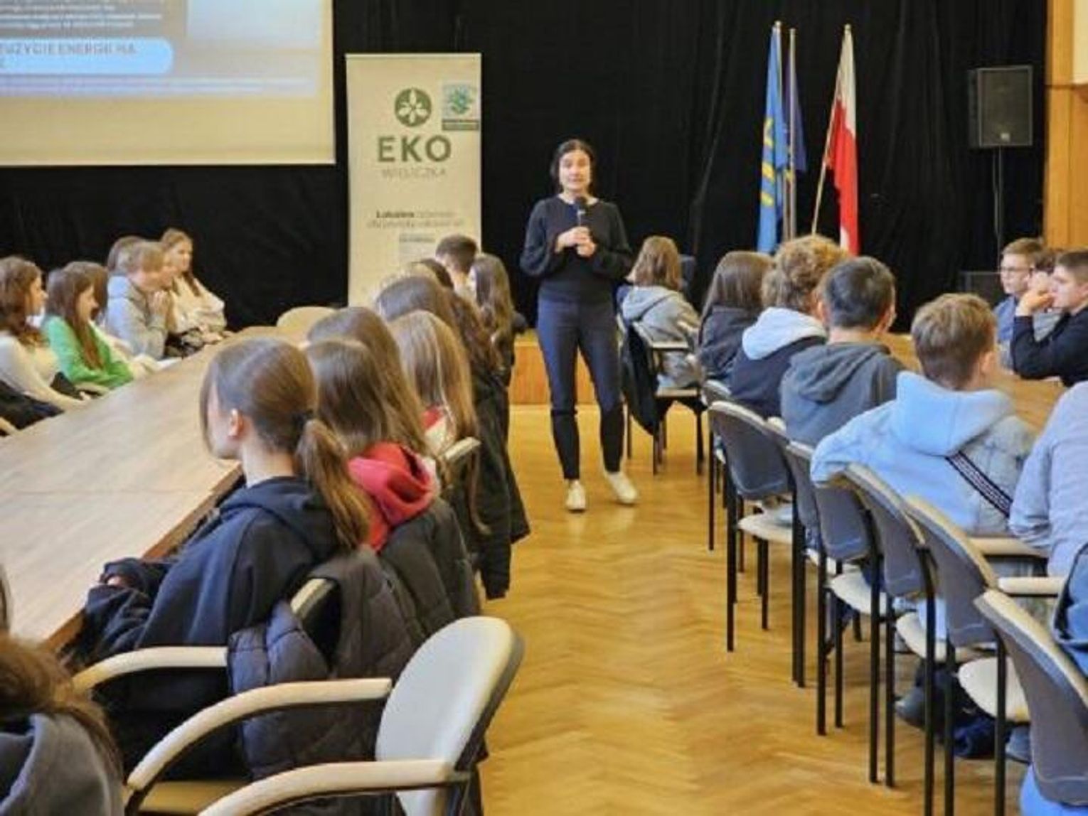 Uczestników spotkania przywitał Sekretarz Gminy Wieliczka – Marcin Idzi, podkreślając, że wiedza o klimacie i świadomość ekologiczna młodego pokolenia to inwestycja w przyszłość nas wszystkich. Zachęcił także młodzież do aktywnego uczestnictwa i otwartej dyskusji o wyzwaniach, przed którymi stoi nasza planeta.