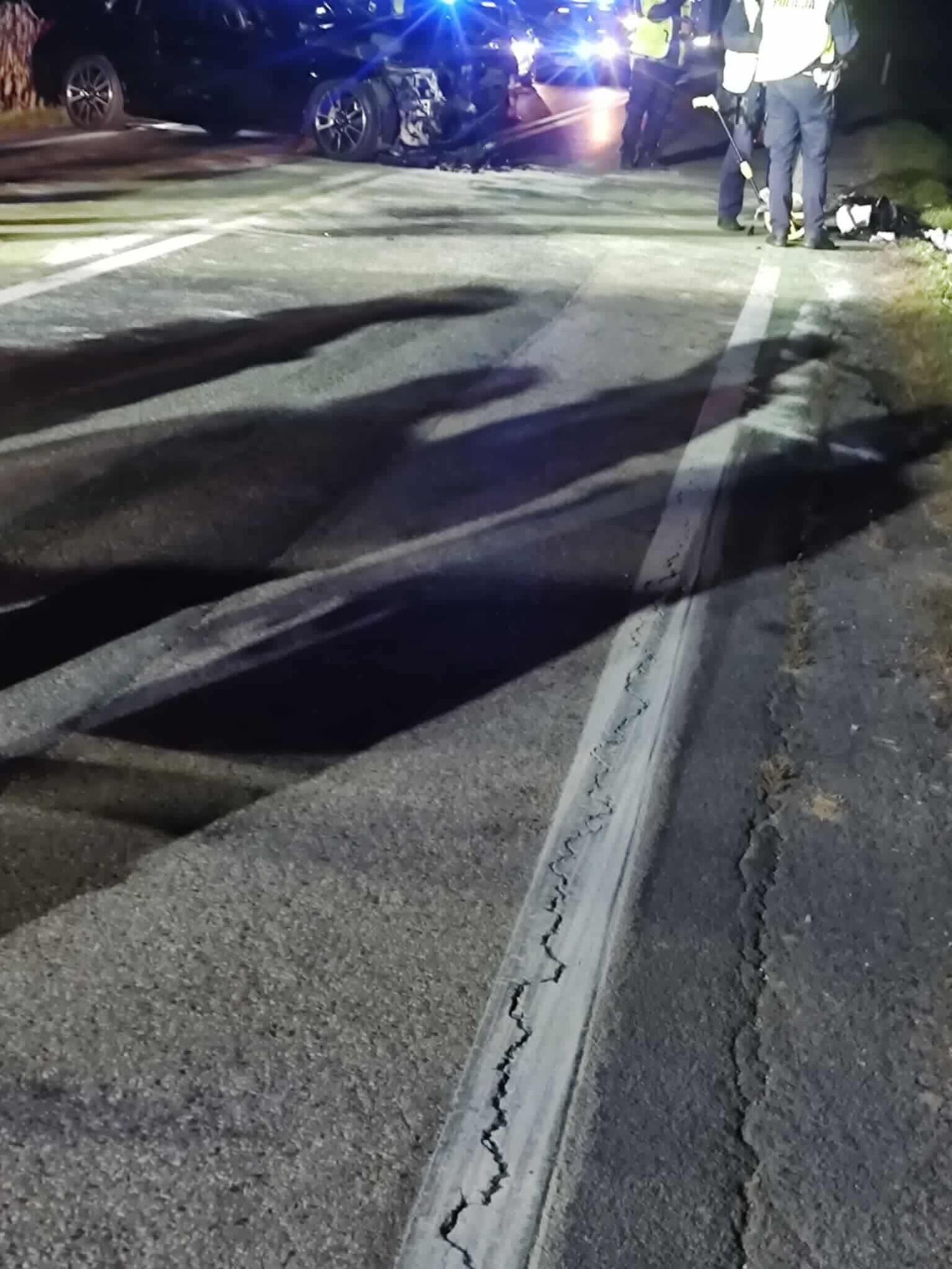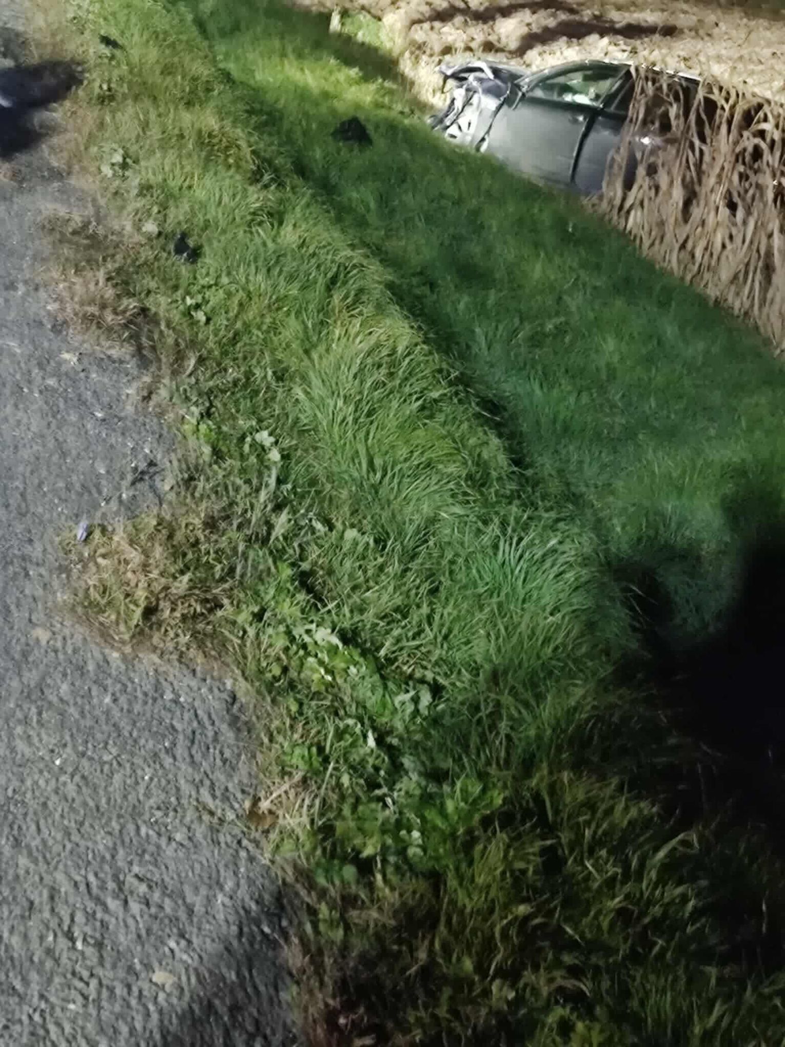 Doszło tam do czołowego zderzenia dwóch samochodów, jeden z nich wpadł do rowu a drugi blokuje oba pasy jezdni.