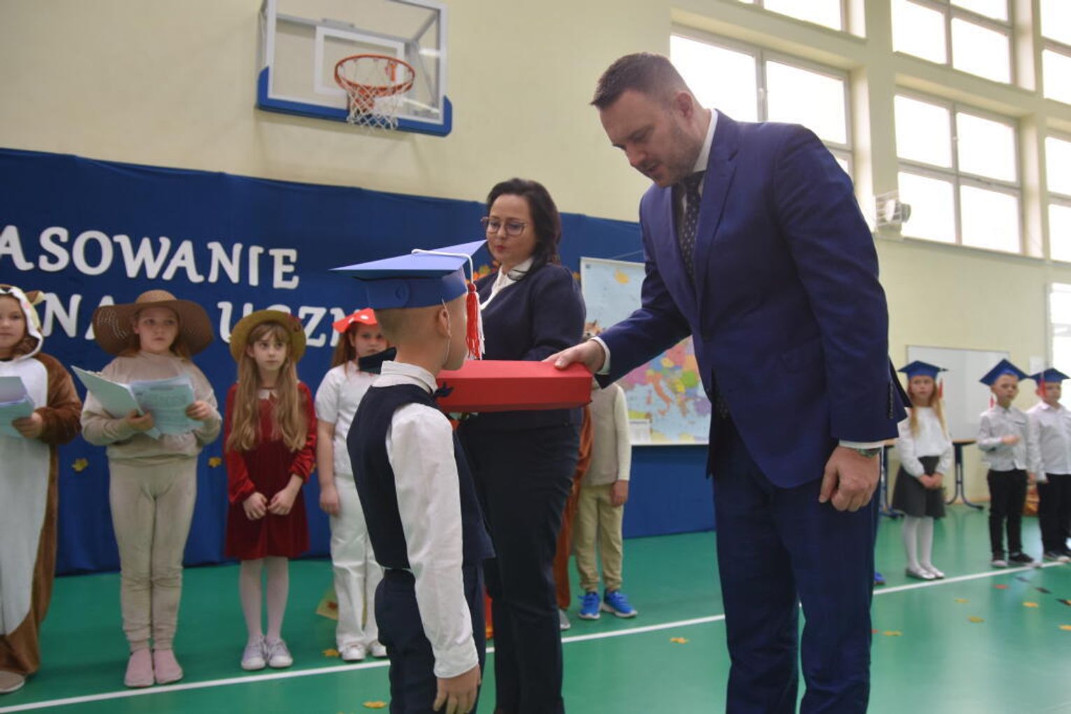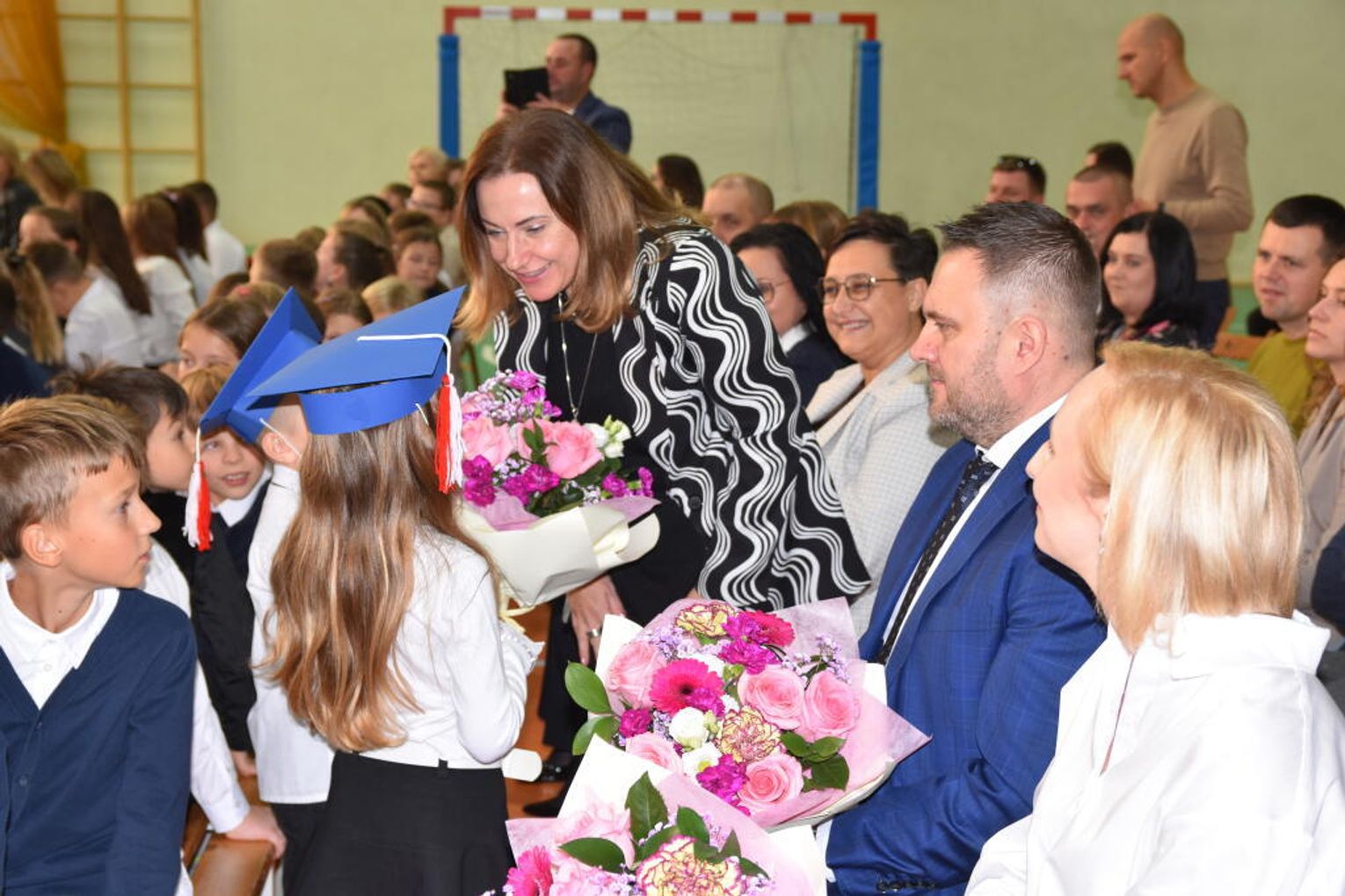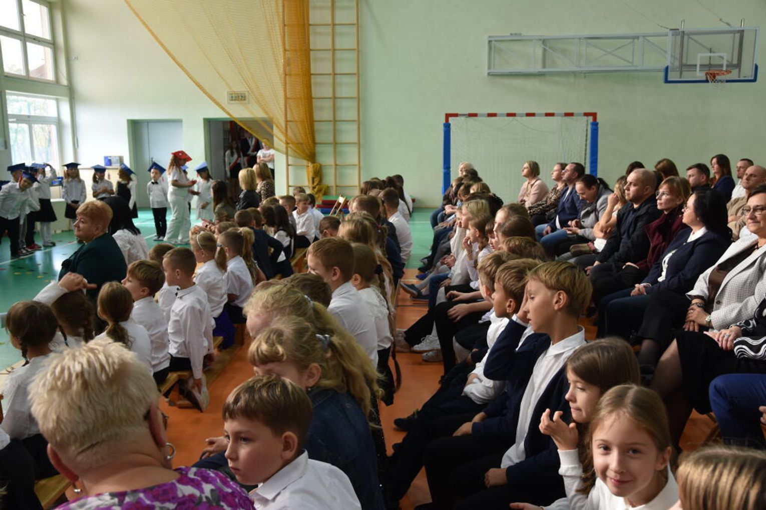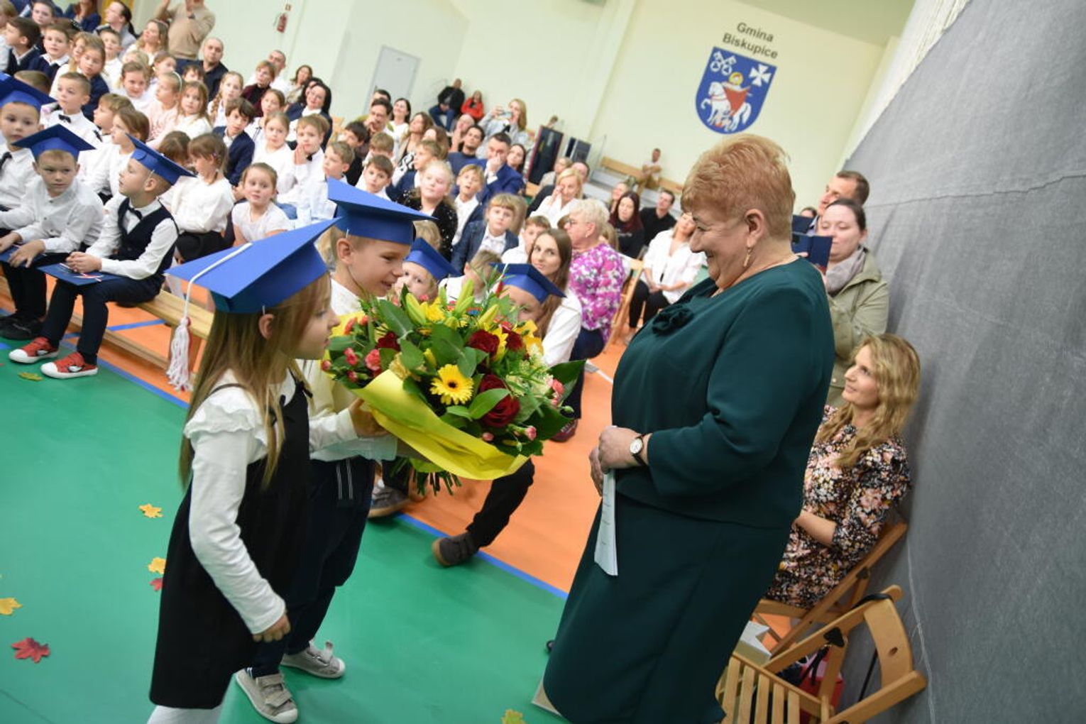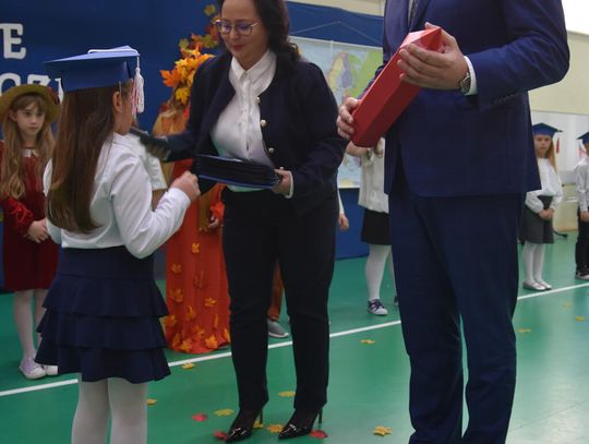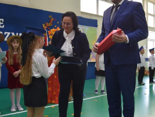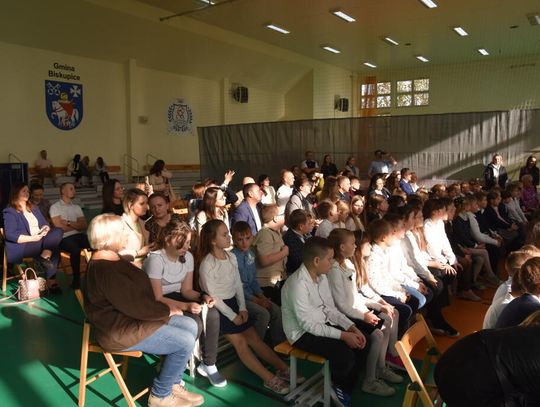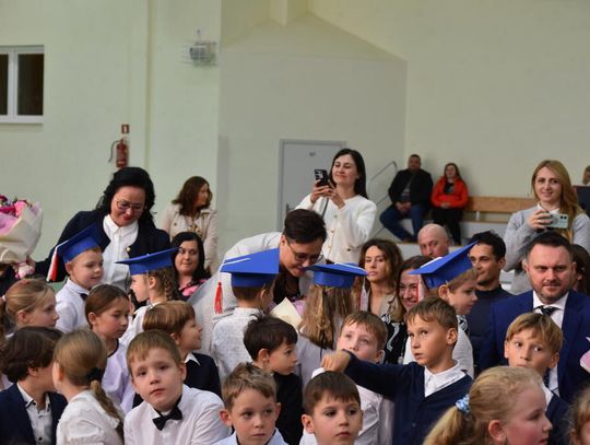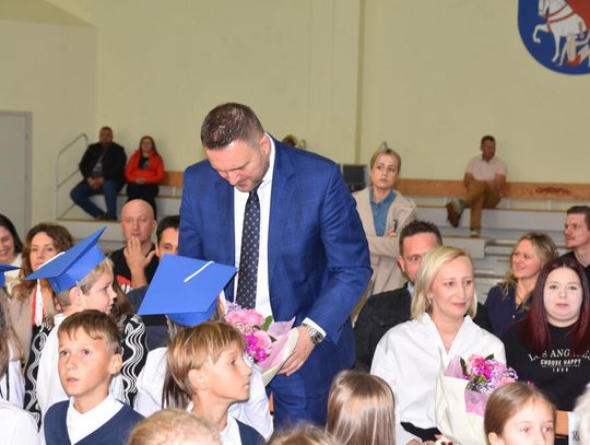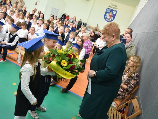 Na uroczystości obecna była również wójt gminy Biskupice - Renata Gawlik, która złożyła pierwszakom serdeczne gratulacje oraz życzyła im wielu sukcesów na nowej drodze edukacyjnej. W trakcie wydarzenia podziękowano także wychowawczyniom klas pierwszych – Lidii Satole oraz Sylwii Biros – za ich zaangażowanie w przygotowanie dzieci do tego ważnego dnia.