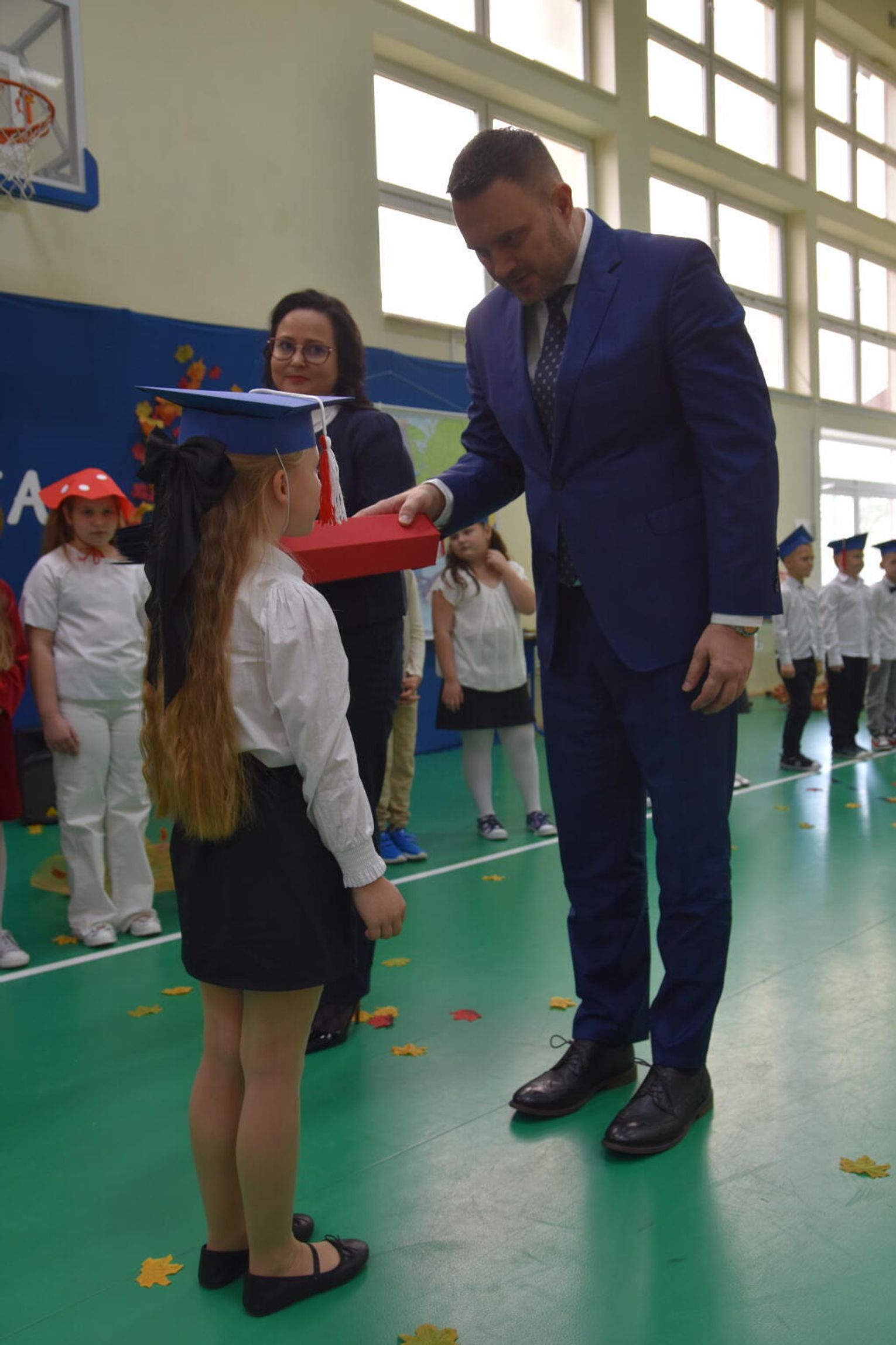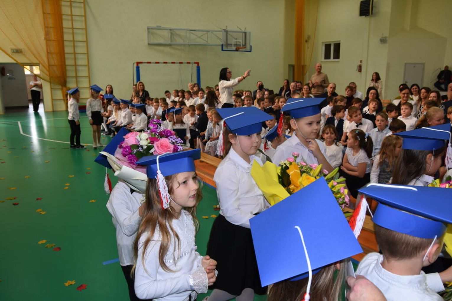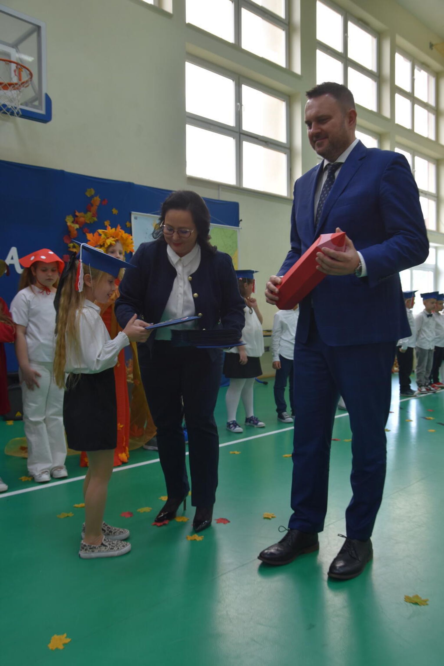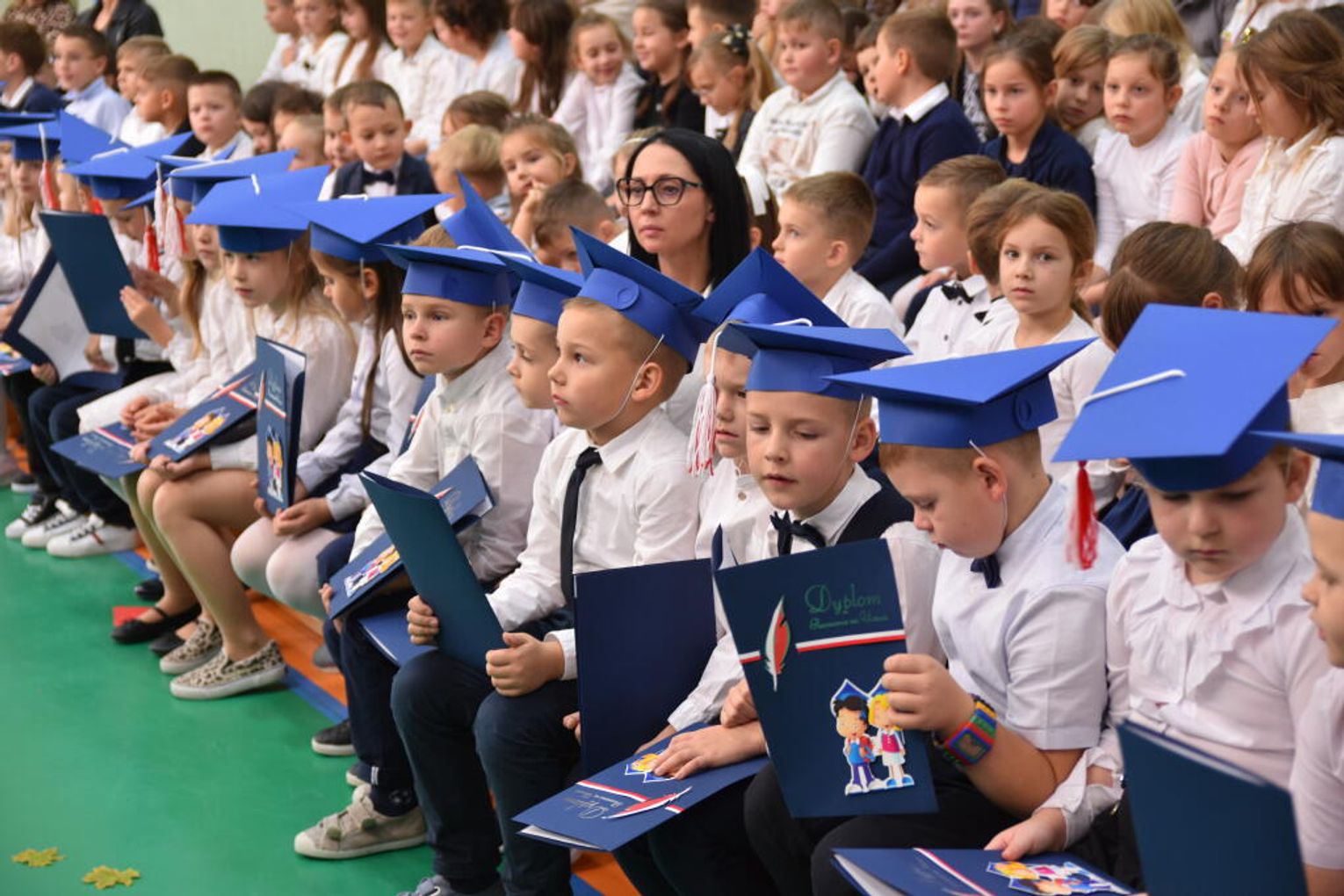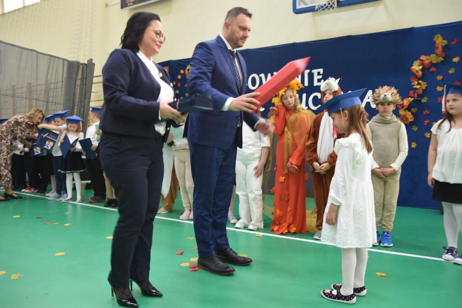 Na uroczystości obecna była również wójt gminy Biskupice - Renata Gawlik, która złożyła pierwszakom serdeczne gratulacje oraz życzyła im wielu sukcesów na nowej drodze edukacyjnej. W trakcie wydarzenia podziękowano także wychowawczyniom klas pierwszych – Lidii Satole oraz Sylwii Biros – za ich zaangażowanie w przygotowanie dzieci do tego ważnego dnia.