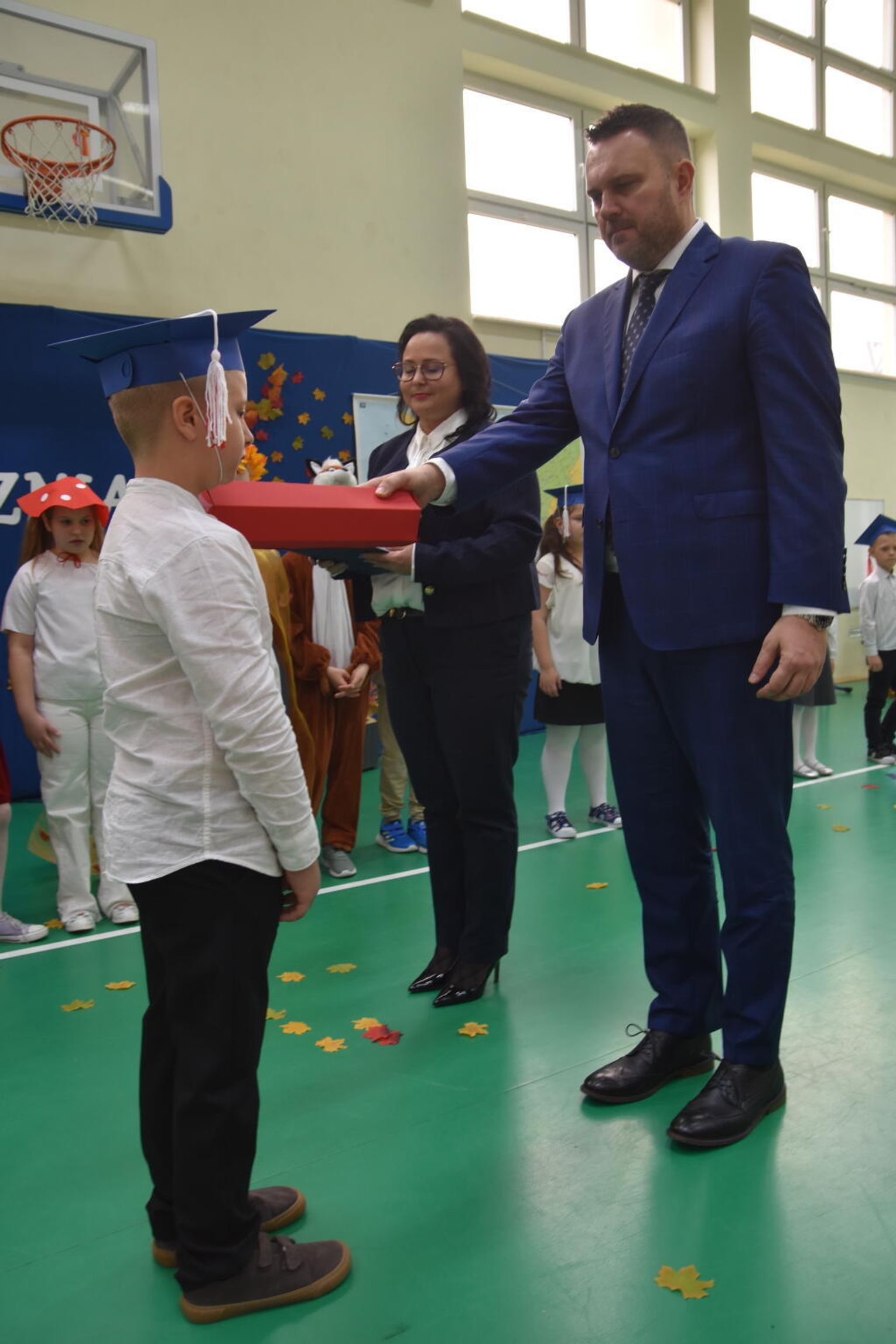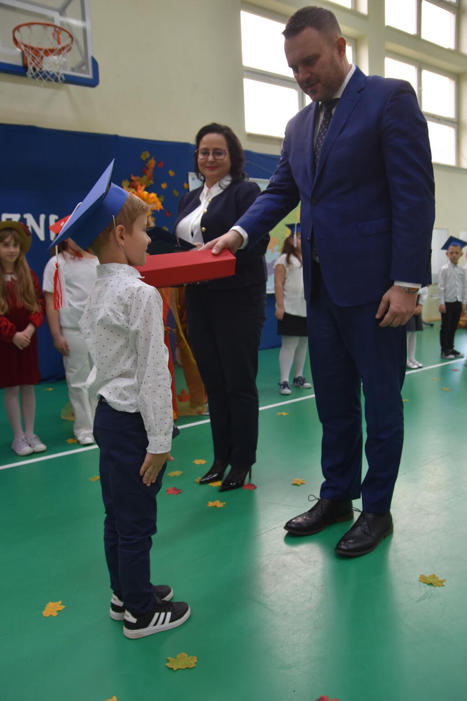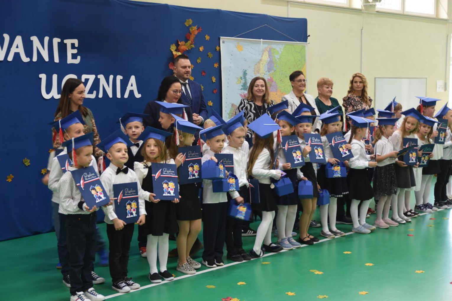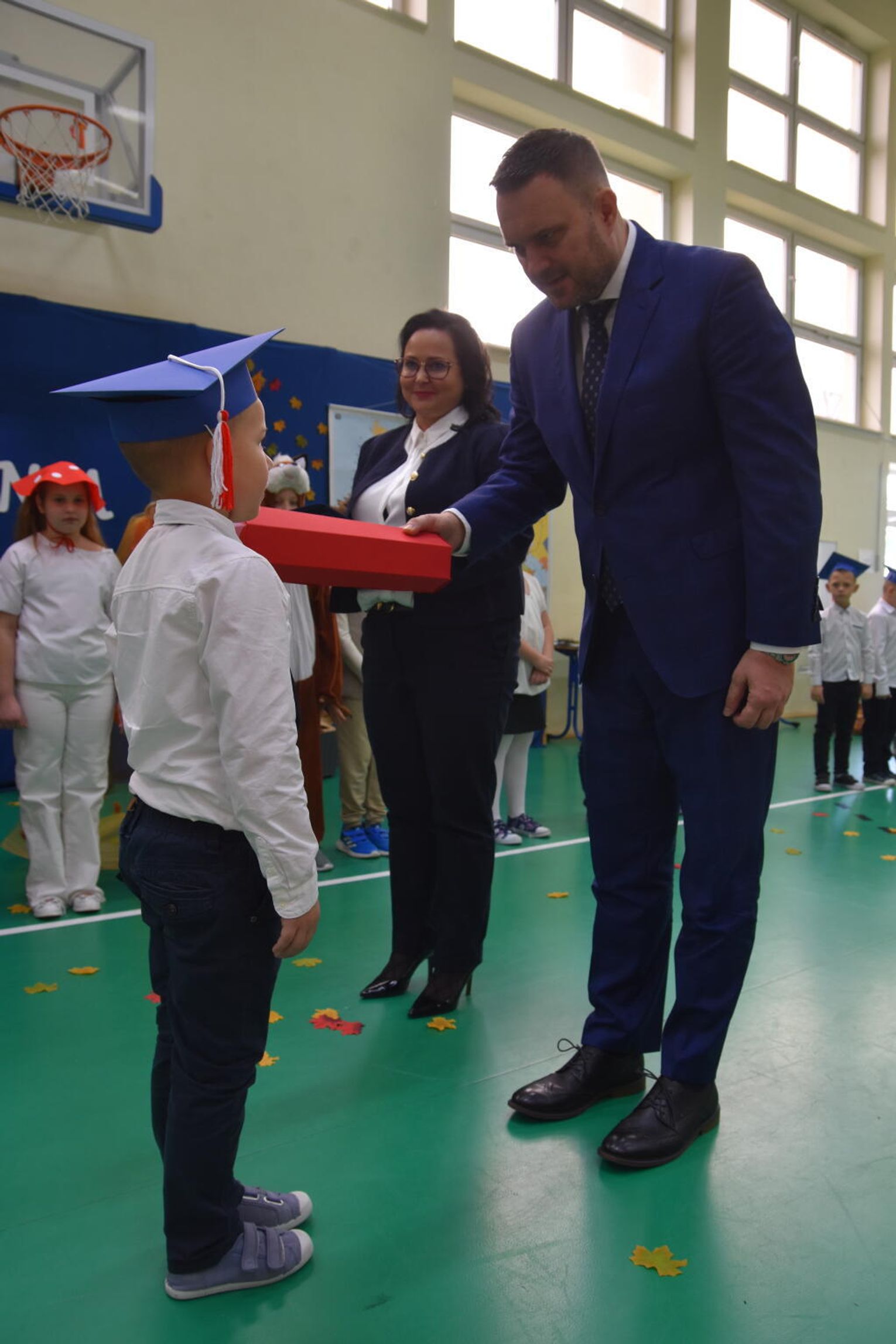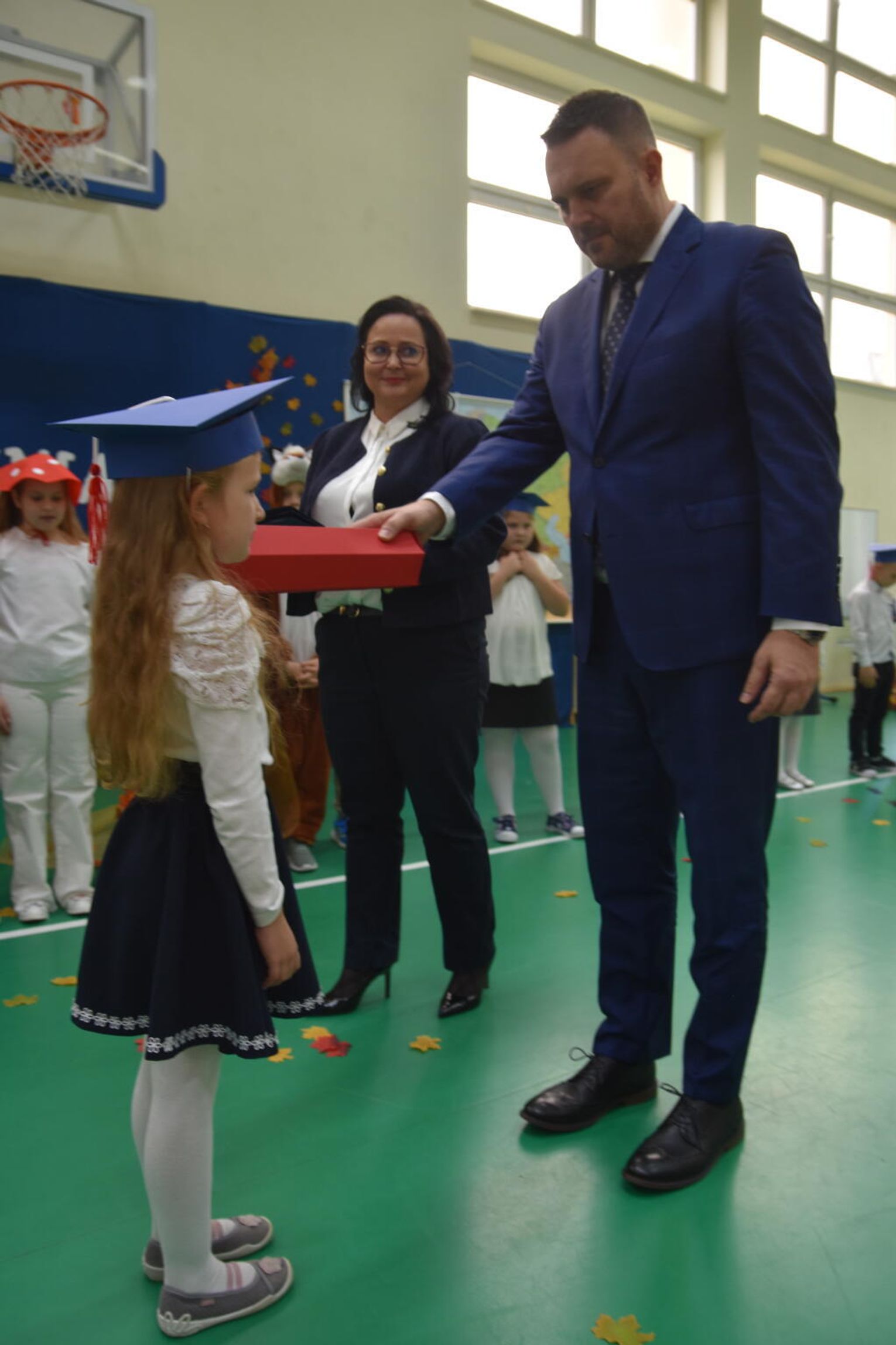 Na uroczystości obecna była również wójt gminy Biskupice - Renata Gawlik, która złożyła pierwszakom serdeczne gratulacje oraz życzyła im wielu sukcesów na nowej drodze edukacyjnej. W trakcie wydarzenia podziękowano także wychowawczyniom klas pierwszych – Lidii Satole oraz Sylwii Biros – za ich zaangażowanie w przygotowanie dzieci do tego ważnego dnia.