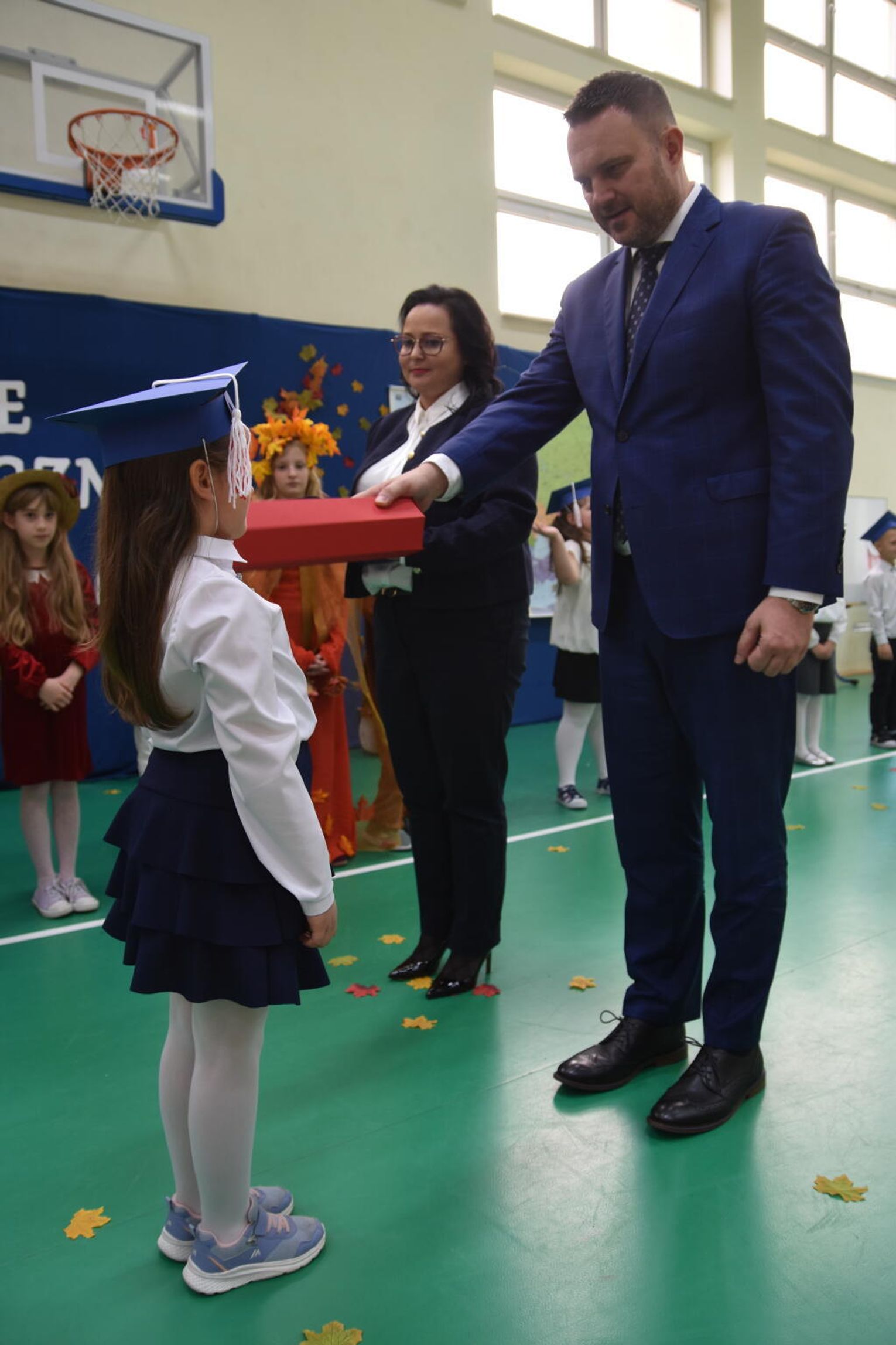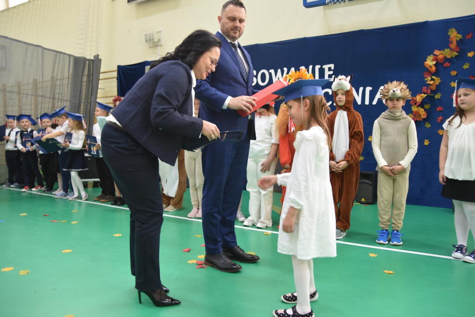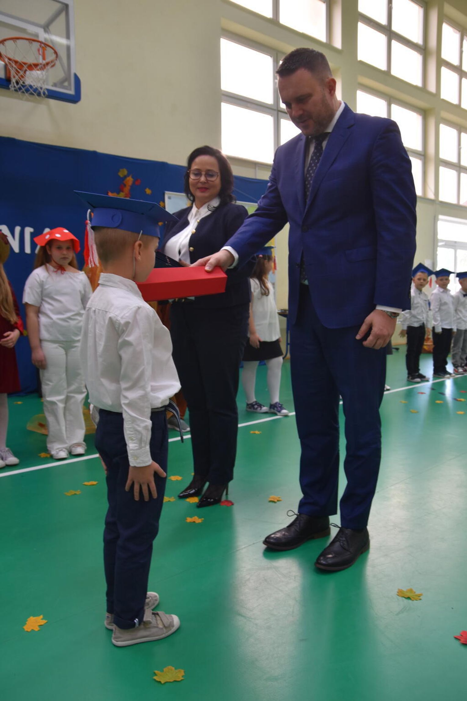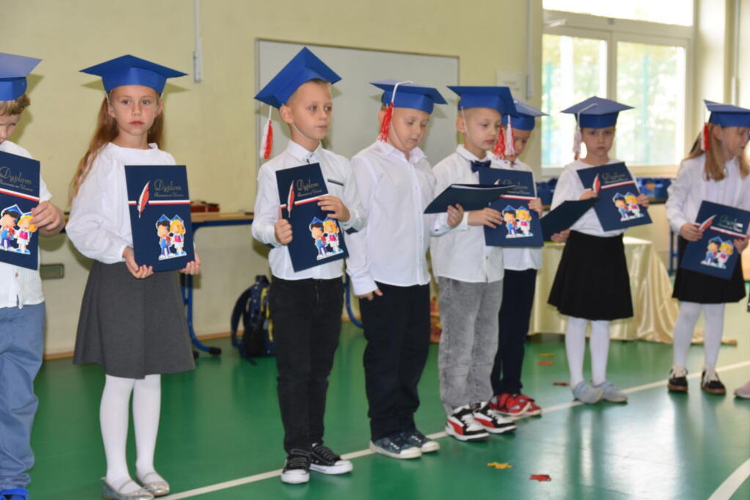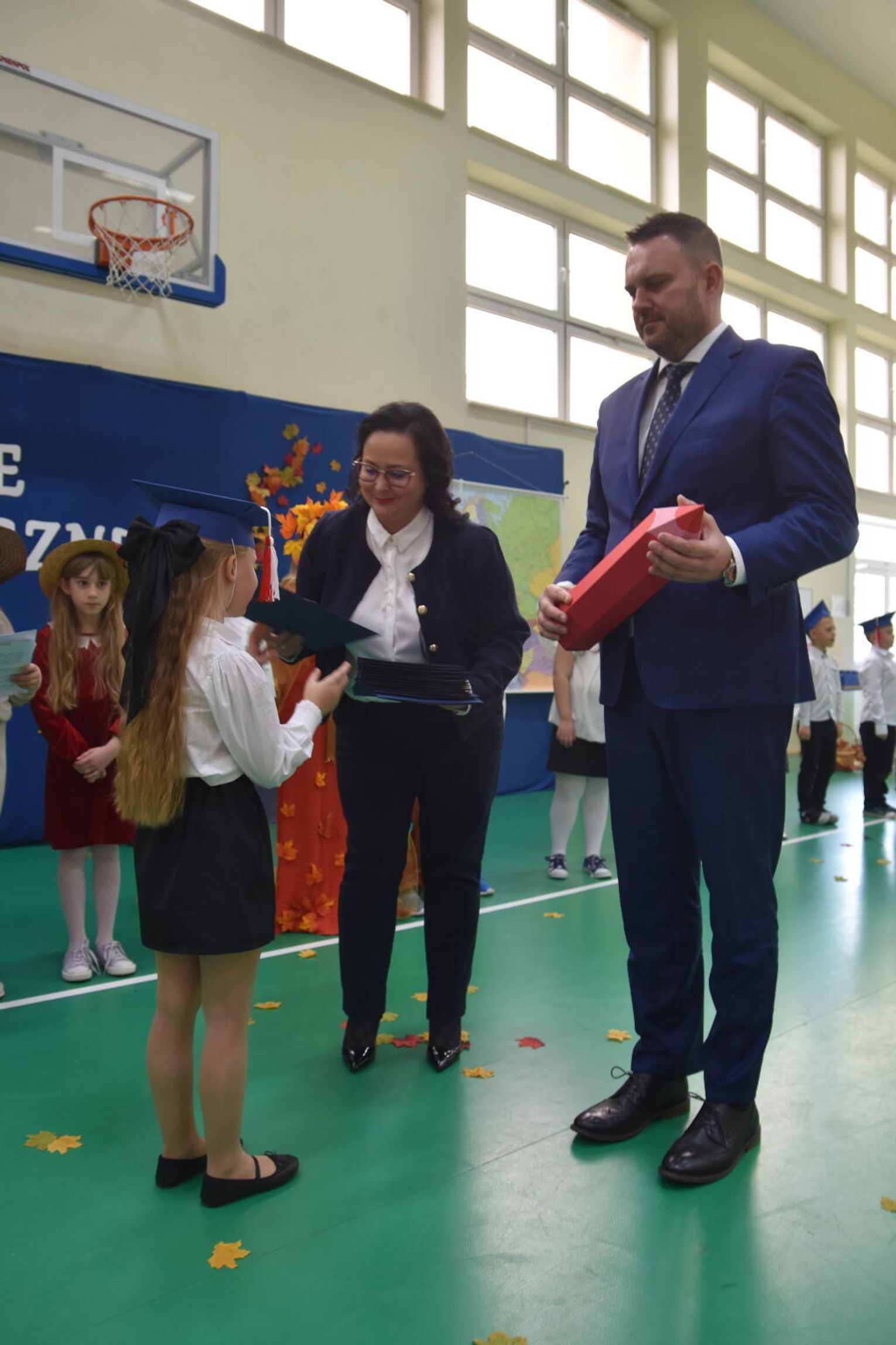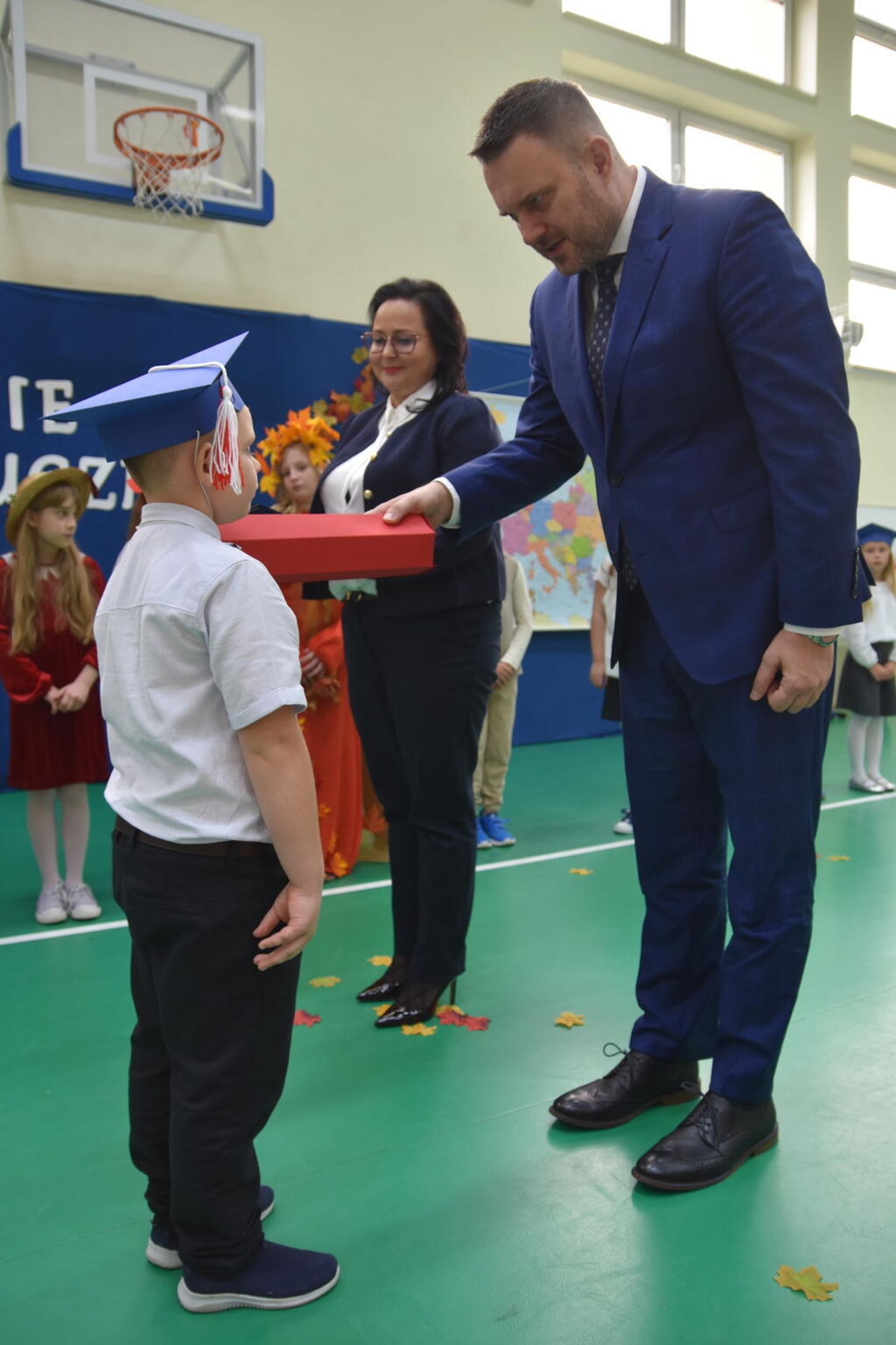 Na uroczystości obecna była również wójt gminy Biskupice - Renata Gawlik, która złożyła pierwszakom serdeczne gratulacje oraz życzyła im wielu sukcesów na nowej drodze edukacyjnej. W trakcie wydarzenia podziękowano także wychowawczyniom klas pierwszych – Lidii Satole oraz Sylwii Biros – za ich zaangażowanie w przygotowanie dzieci do tego ważnego dnia.