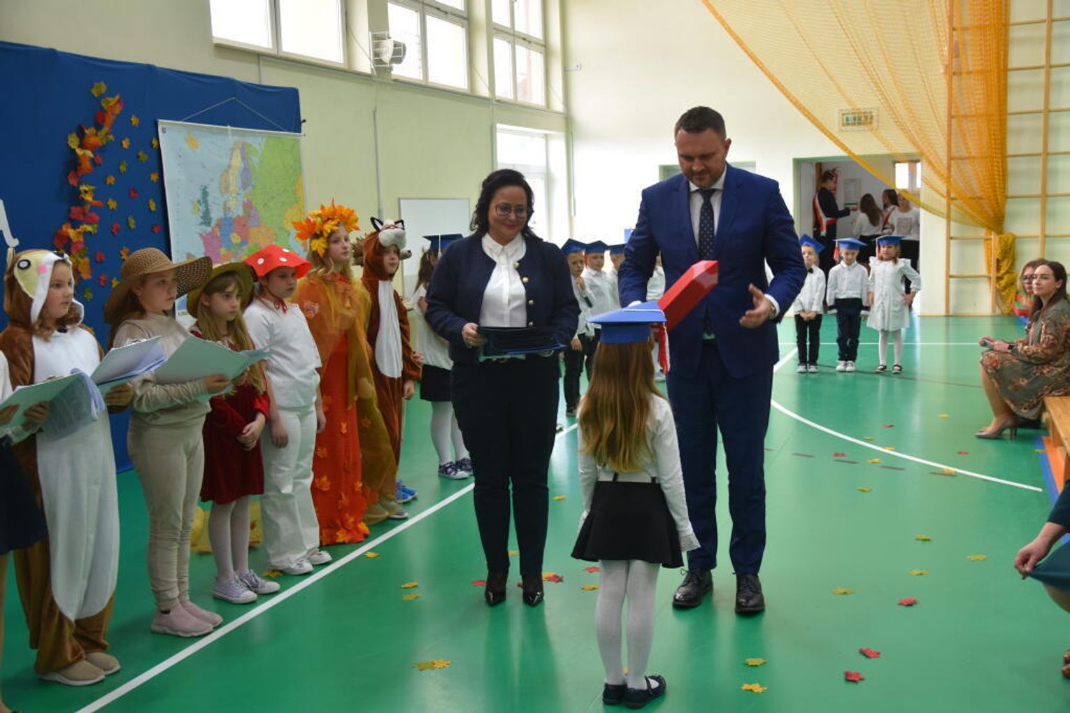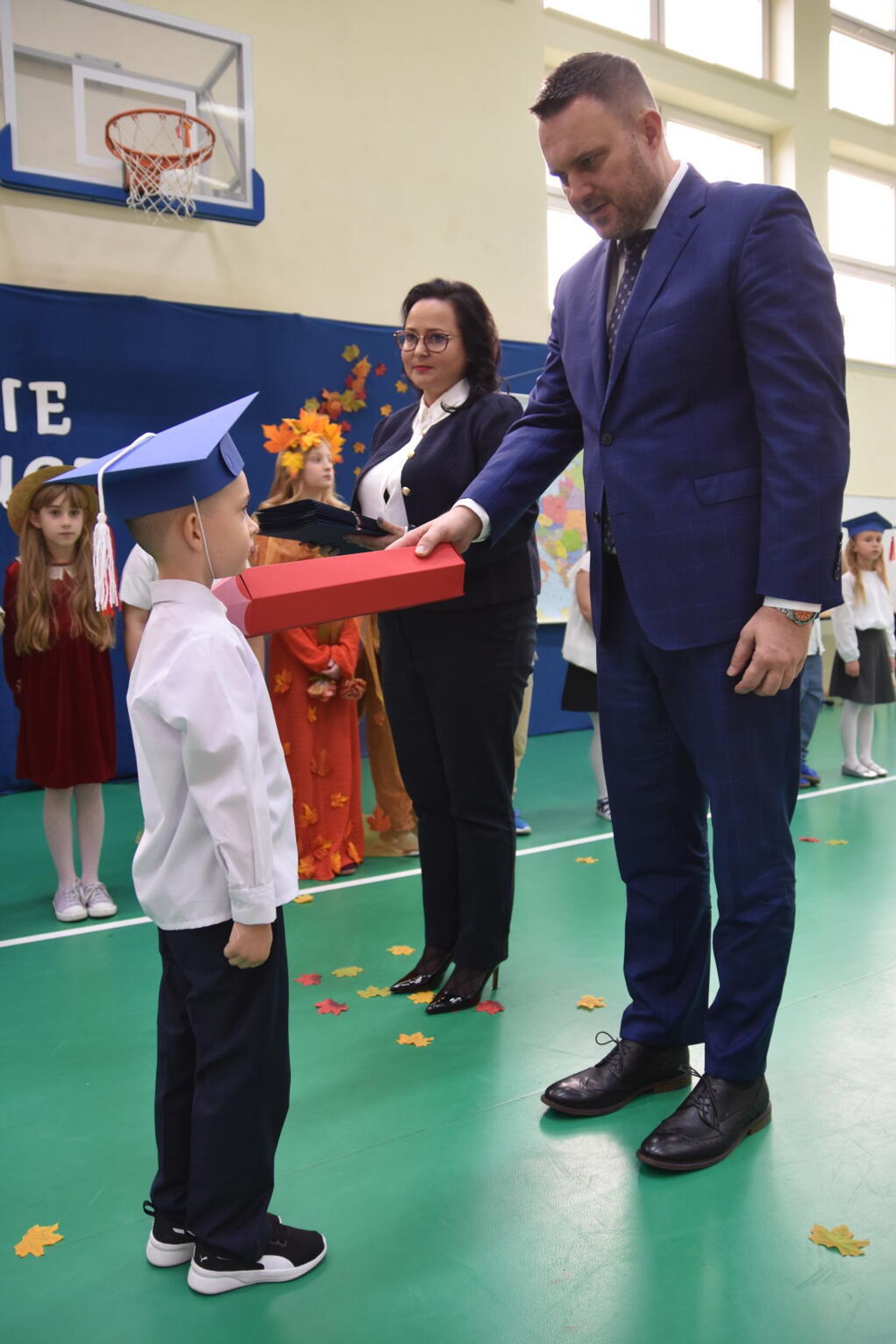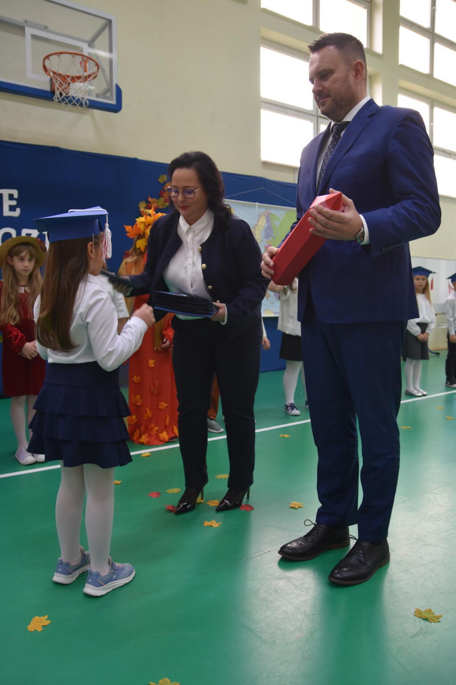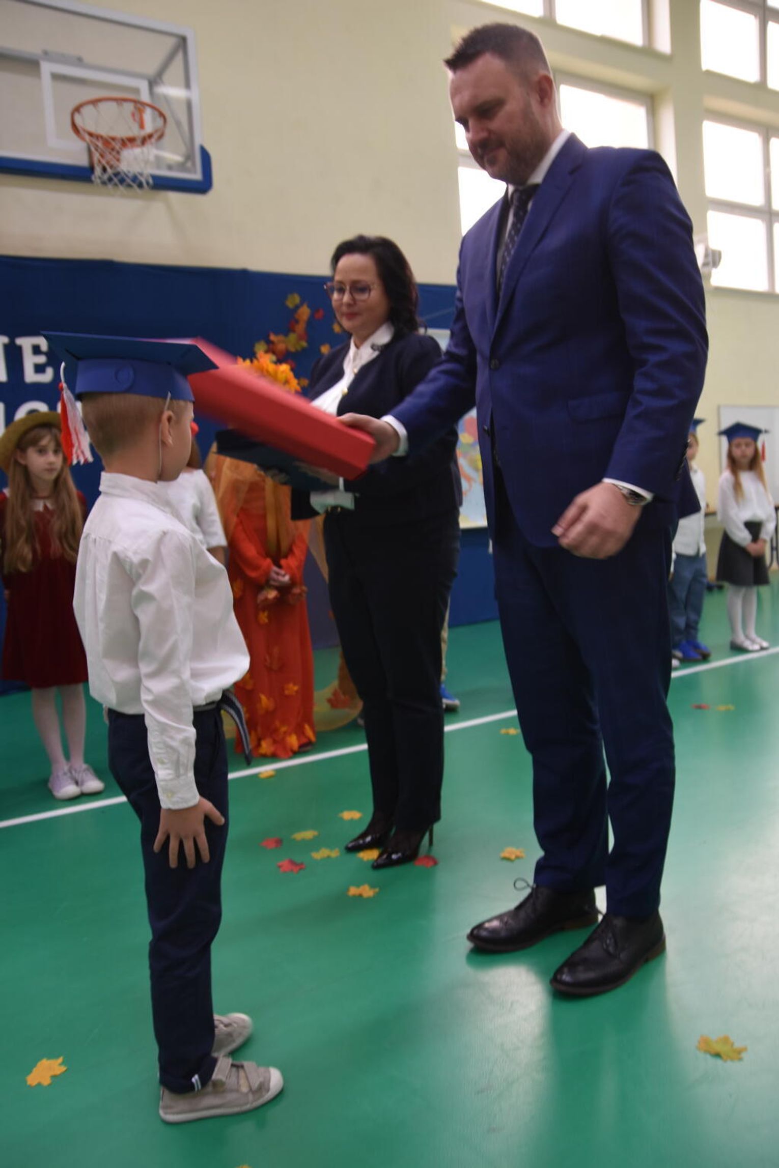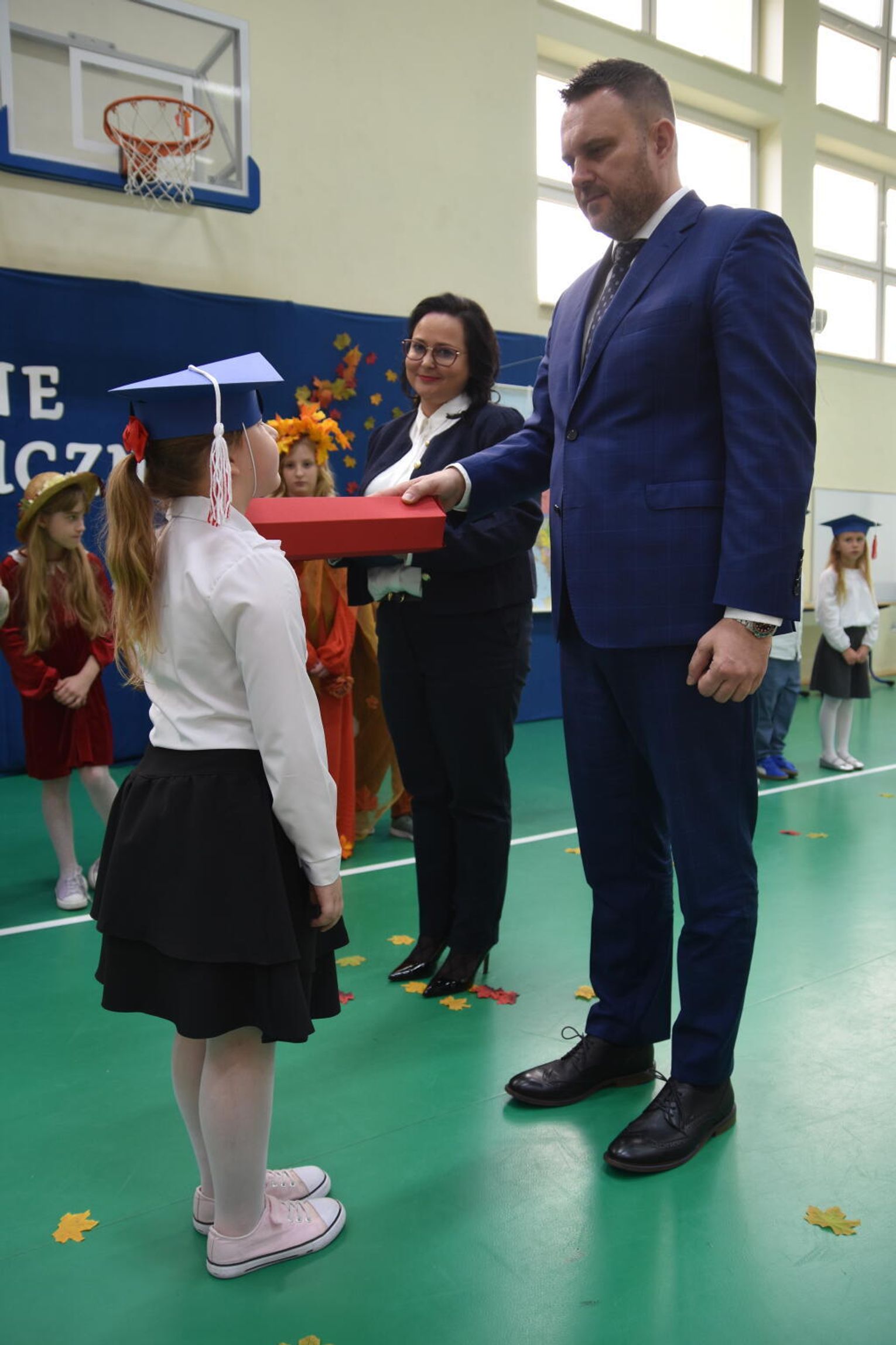 Na uroczystości obecna była również wójt gminy Biskupice - Renata Gawlik, która złożyła pierwszakom serdeczne gratulacje oraz życzyła im wielu sukcesów na nowej drodze edukacyjnej. W trakcie wydarzenia podziękowano także wychowawczyniom klas pierwszych – Lidii Satole oraz Sylwii Biros – za ich zaangażowanie w przygotowanie dzieci do tego ważnego dnia.