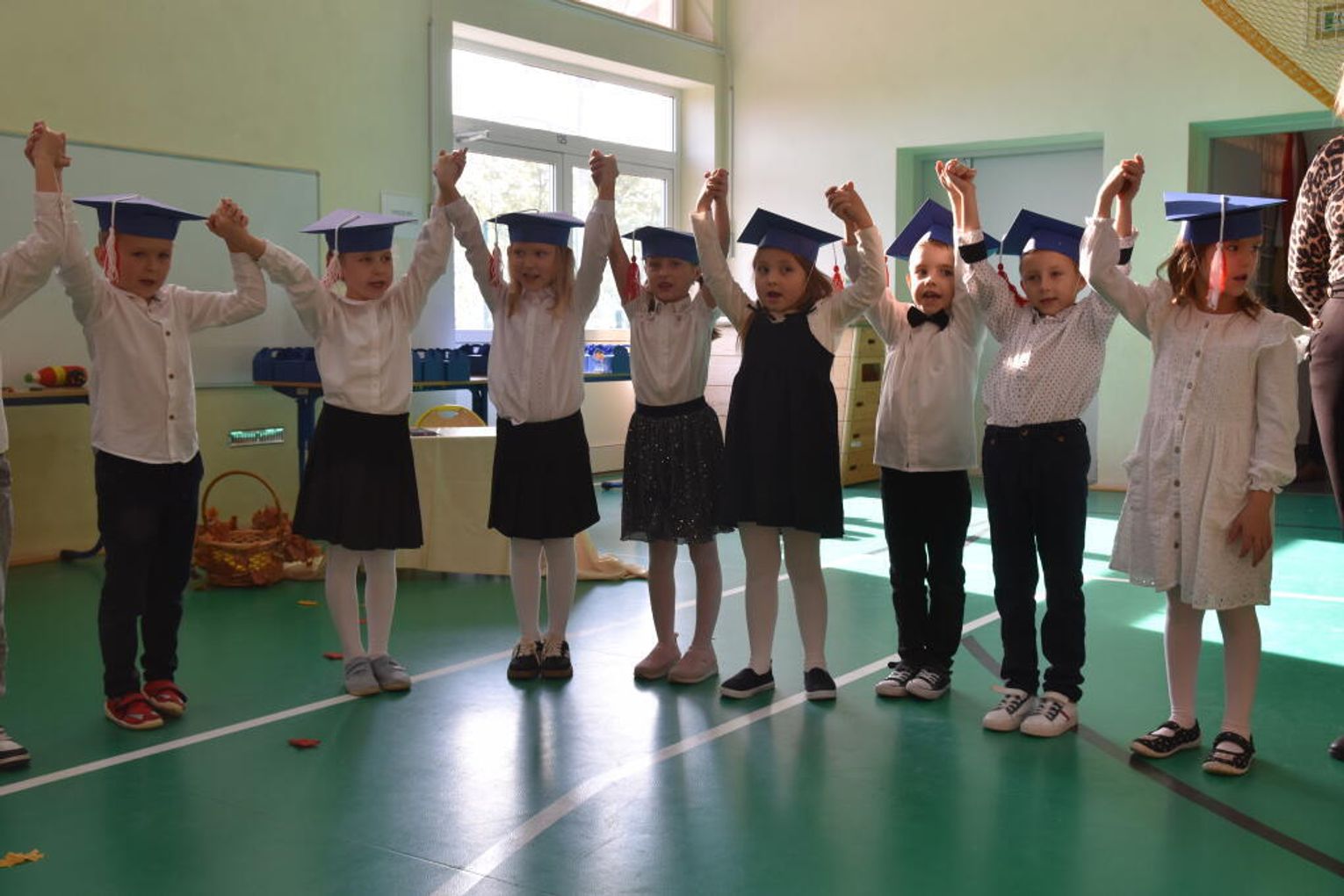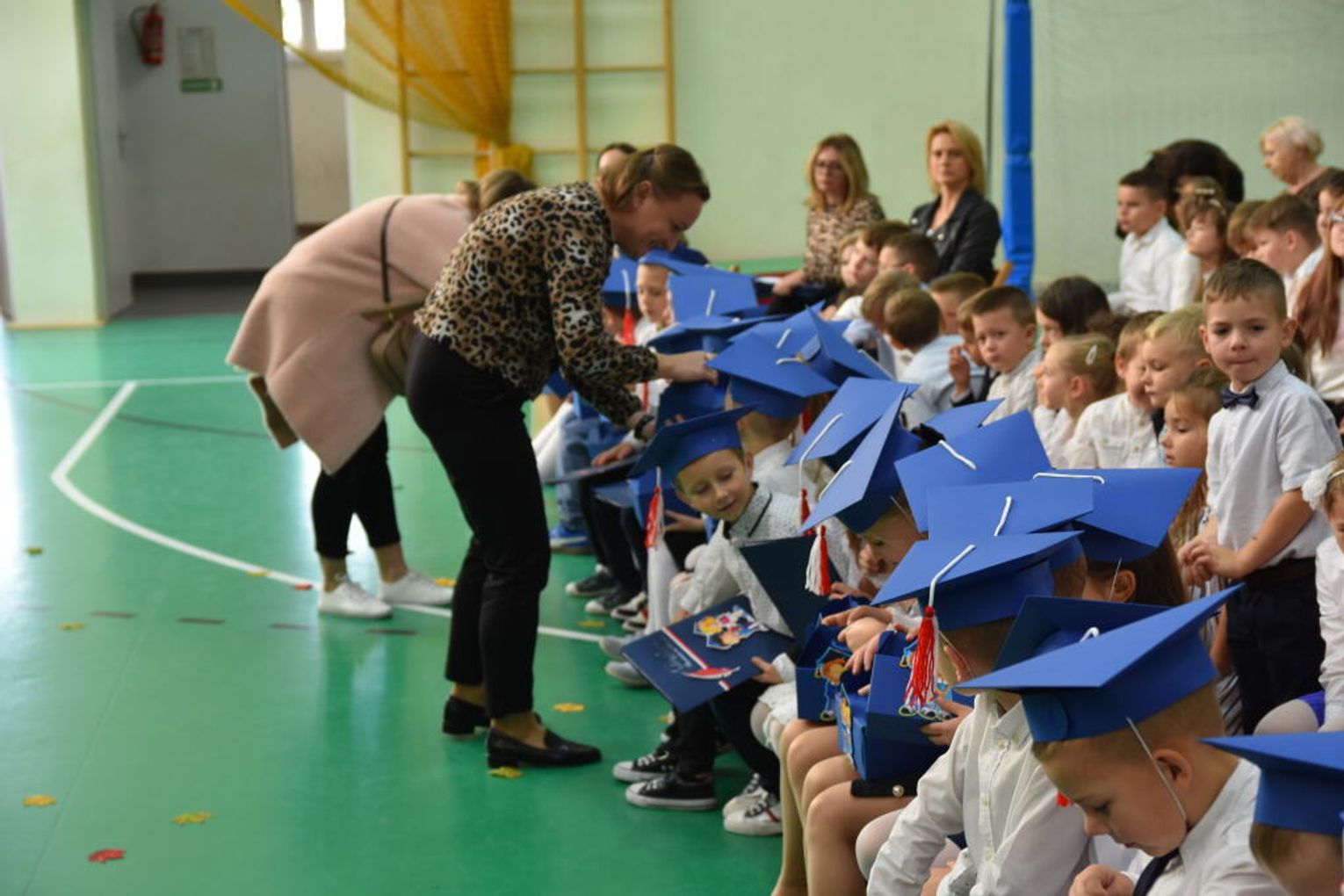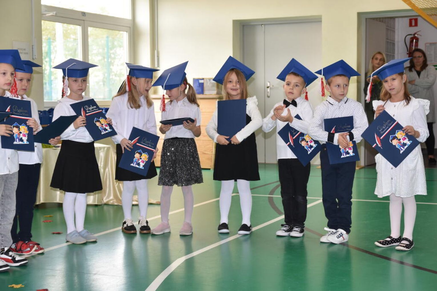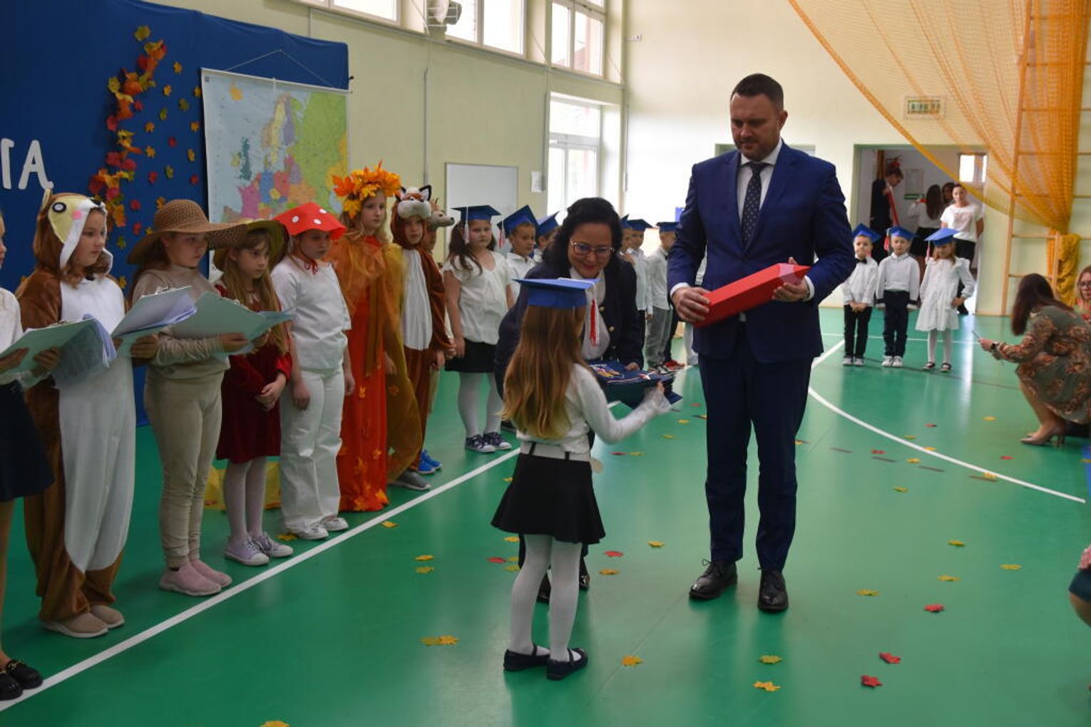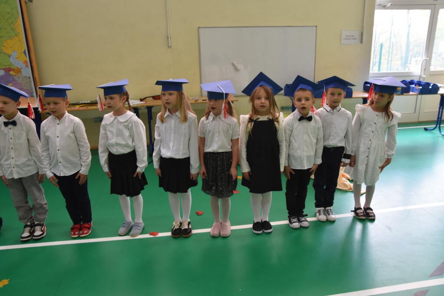 Na uroczystości obecna była również wójt gminy Biskupice - Renata Gawlik, która złożyła pierwszakom serdeczne gratulacje oraz życzyła im wielu sukcesów na nowej drodze edukacyjnej. W trakcie wydarzenia podziękowano także wychowawczyniom klas pierwszych – Lidii Satole oraz Sylwii Biros – za ich zaangażowanie w przygotowanie dzieci do tego ważnego dnia.