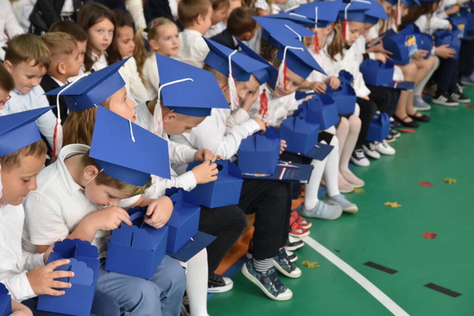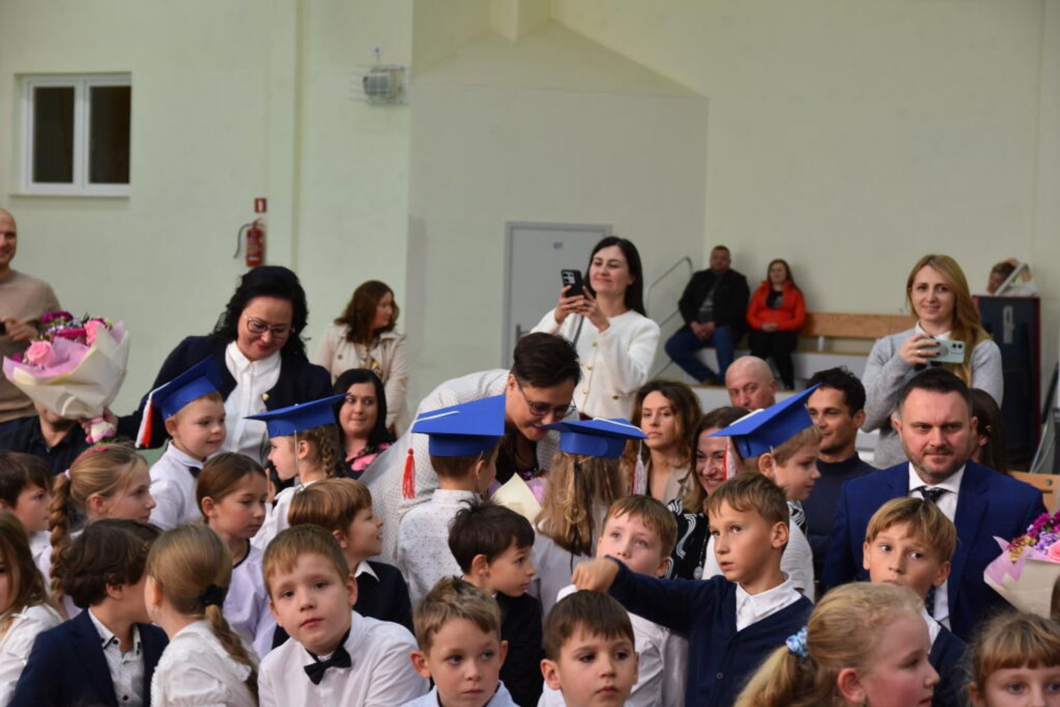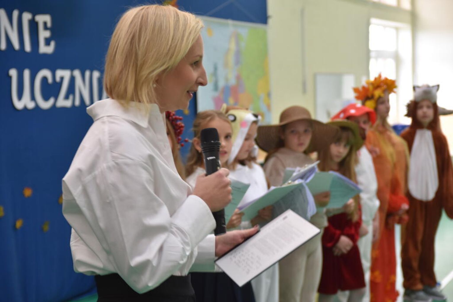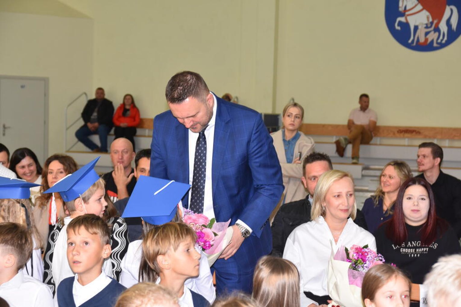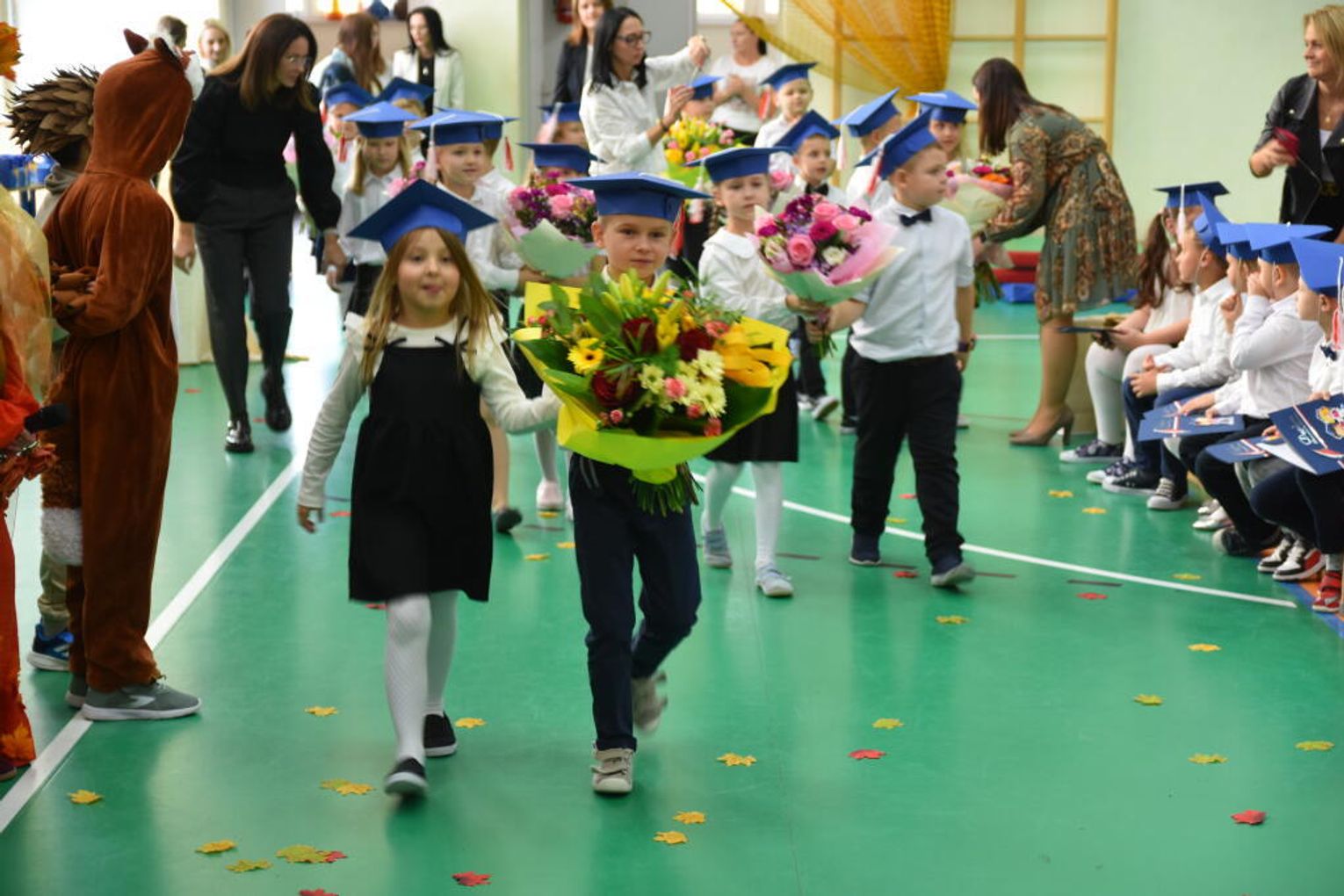 Na uroczystości obecna była również wójt gminy Biskupice - Renata Gawlik, która złożyła pierwszakom serdeczne gratulacje oraz życzyła im wielu sukcesów na nowej drodze edukacyjnej. W trakcie wydarzenia podziękowano także wychowawczyniom klas pierwszych – Lidii Satole oraz Sylwii Biros – za ich zaangażowanie w przygotowanie dzieci do tego ważnego dnia.