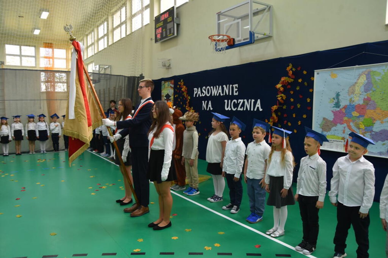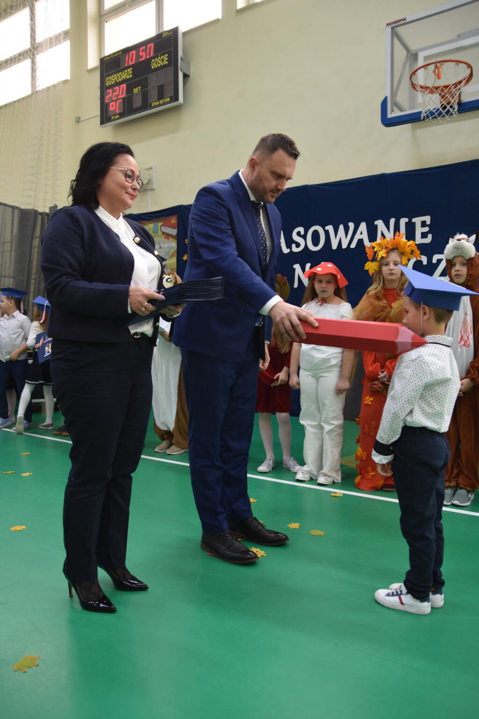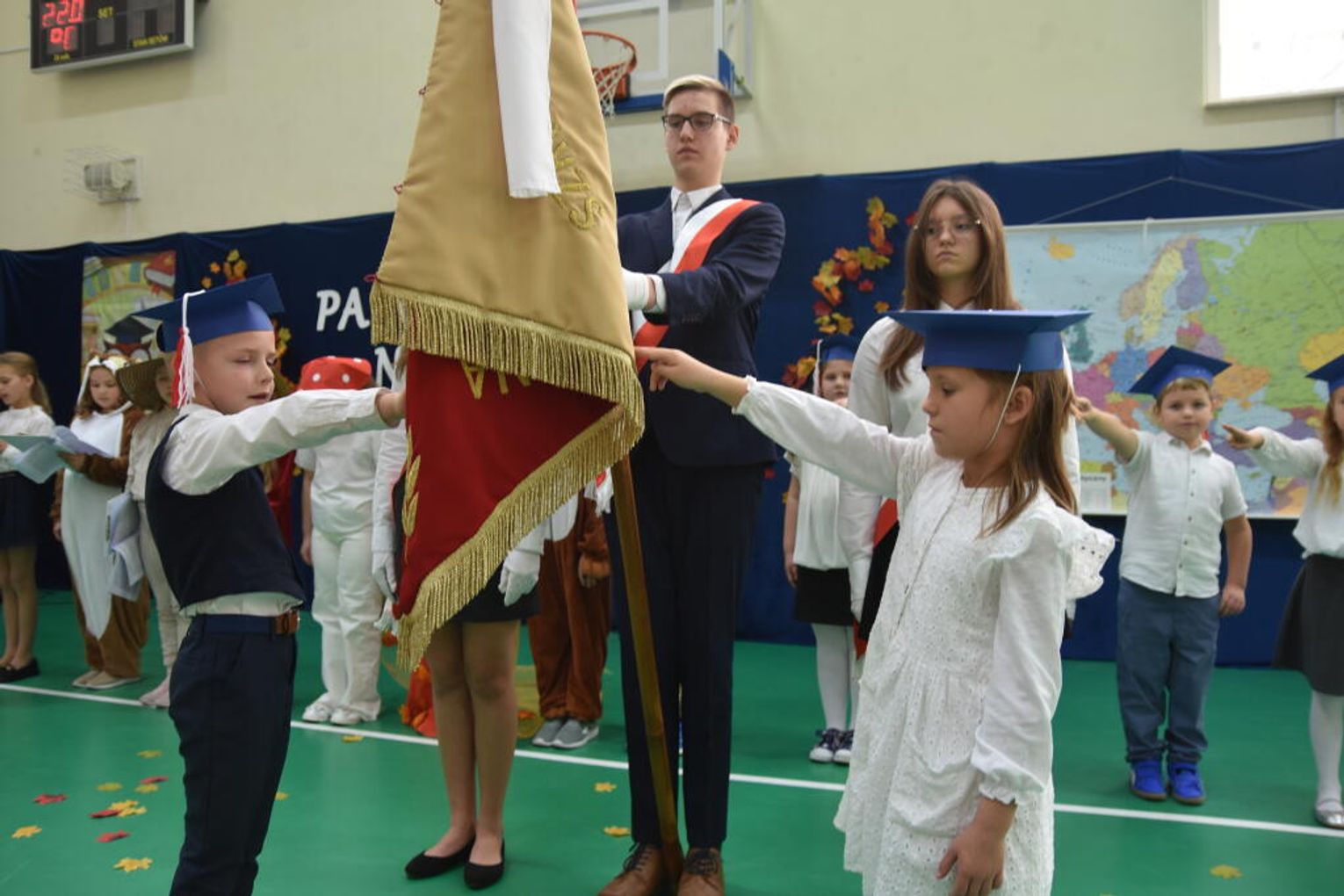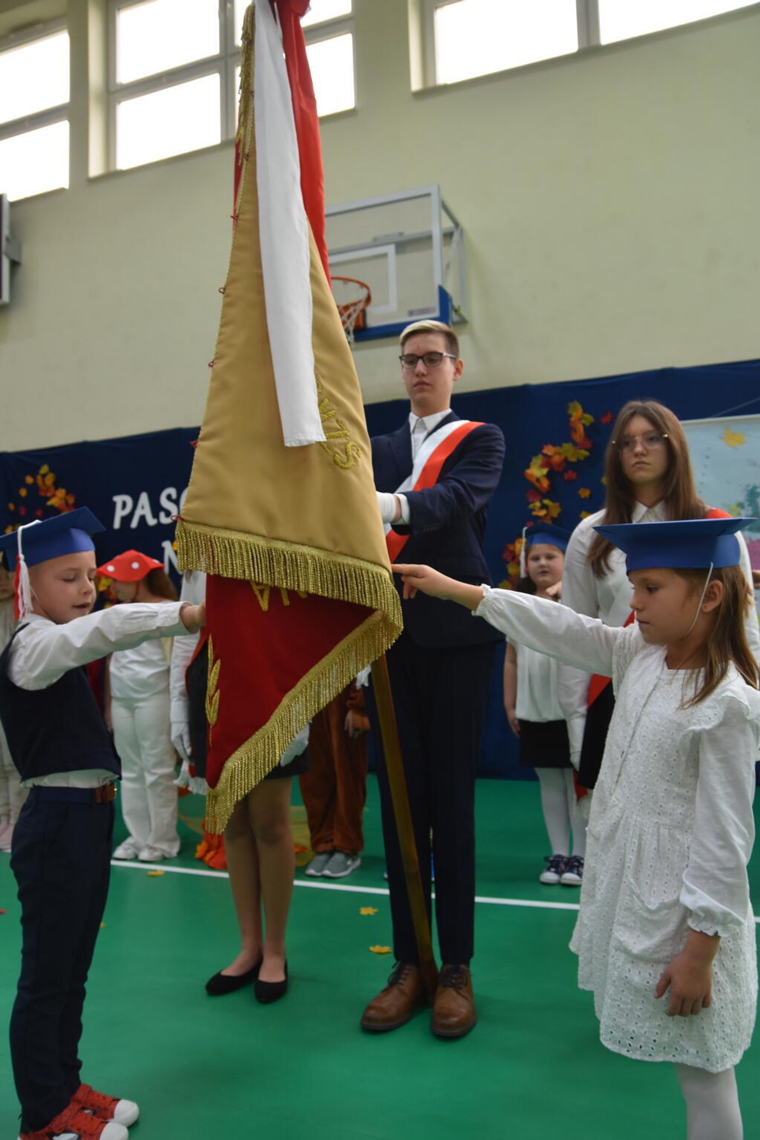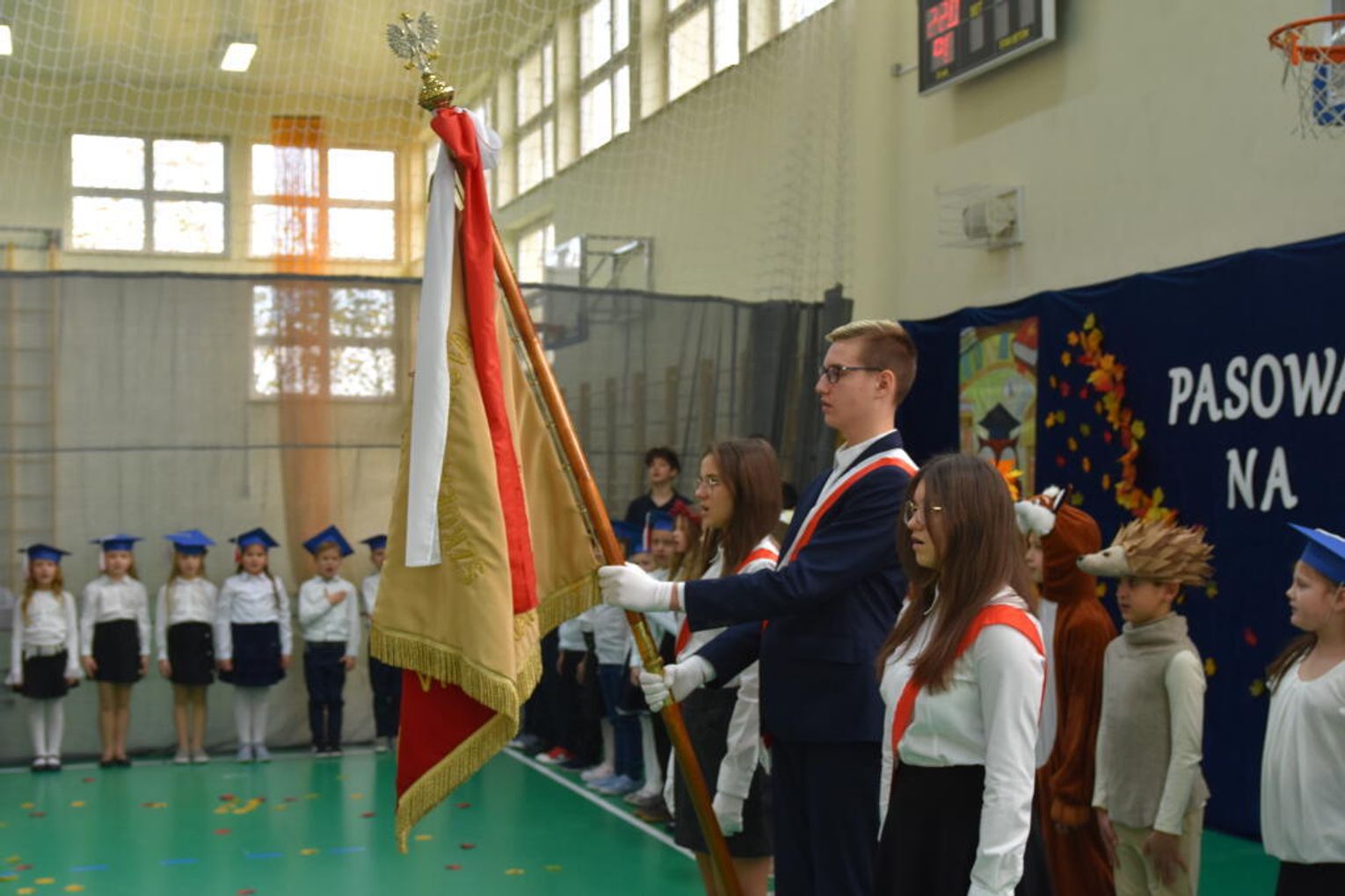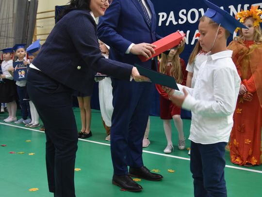 Kulminacyjnym momentem było uroczyste ślubowanie na sztandar szkoły. Pierwszoklasiści z powagą wypowiedzieli słowa przysięgi, obiecując być pilnymi uczniami i dobrymi kolegami. Następnie dyrektor szkoły - Marcin Maniek, przy asyście wicedyrektor - Katarzyny Szlachty, dokonał symbolicznego pasowania na ucznia. Był to niezwykle wzruszający moment, który na długo pozostanie w pamięci dzieci oraz ich bliskich.