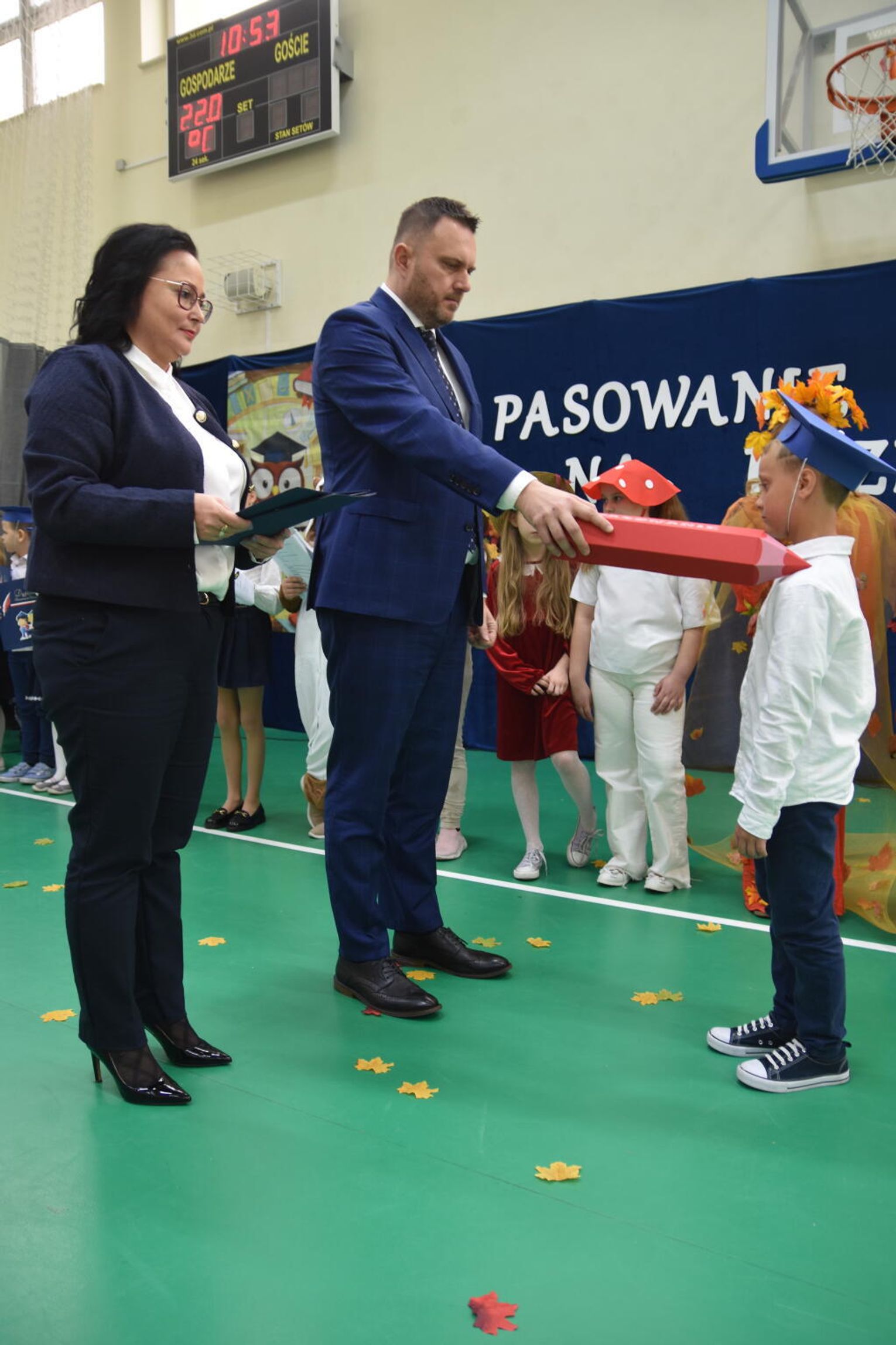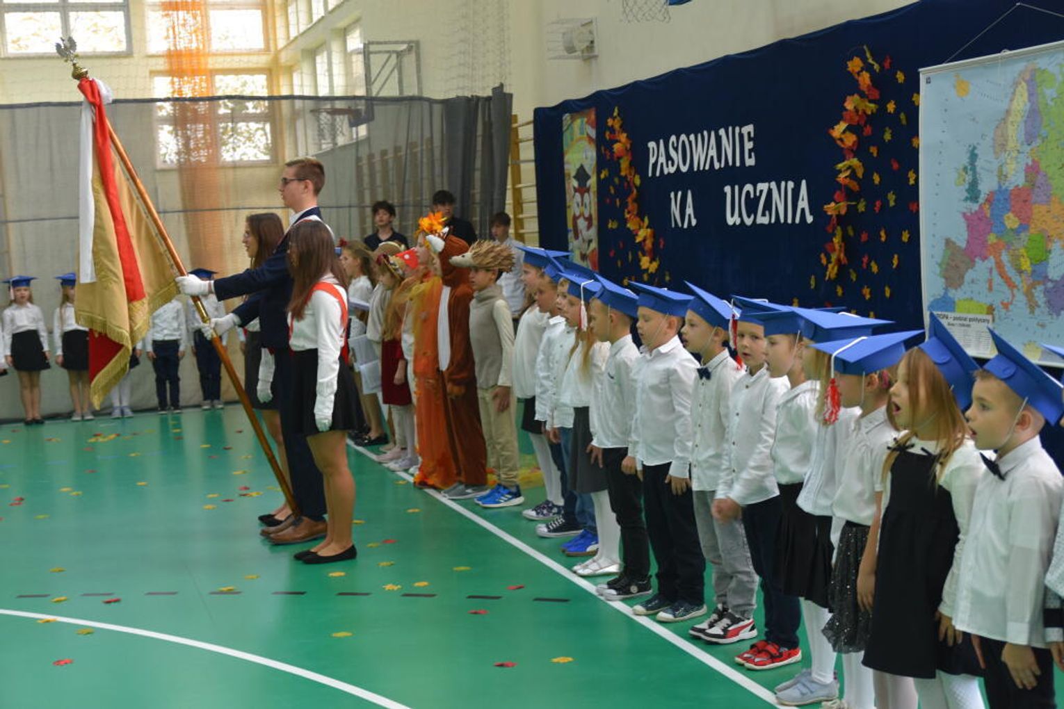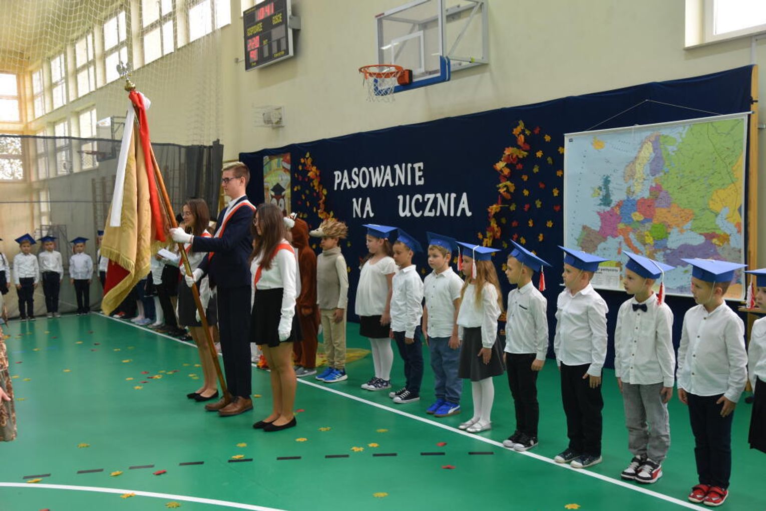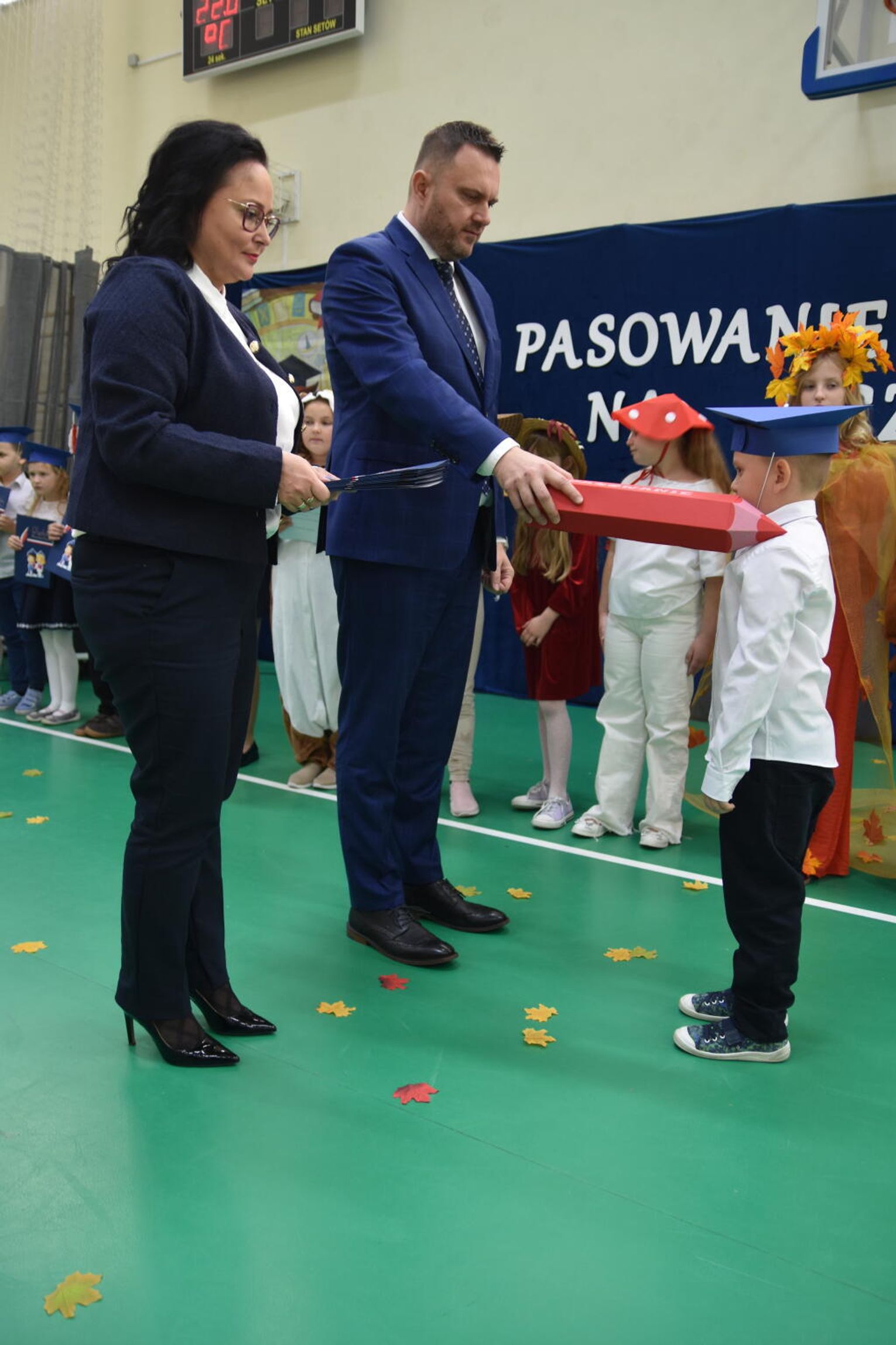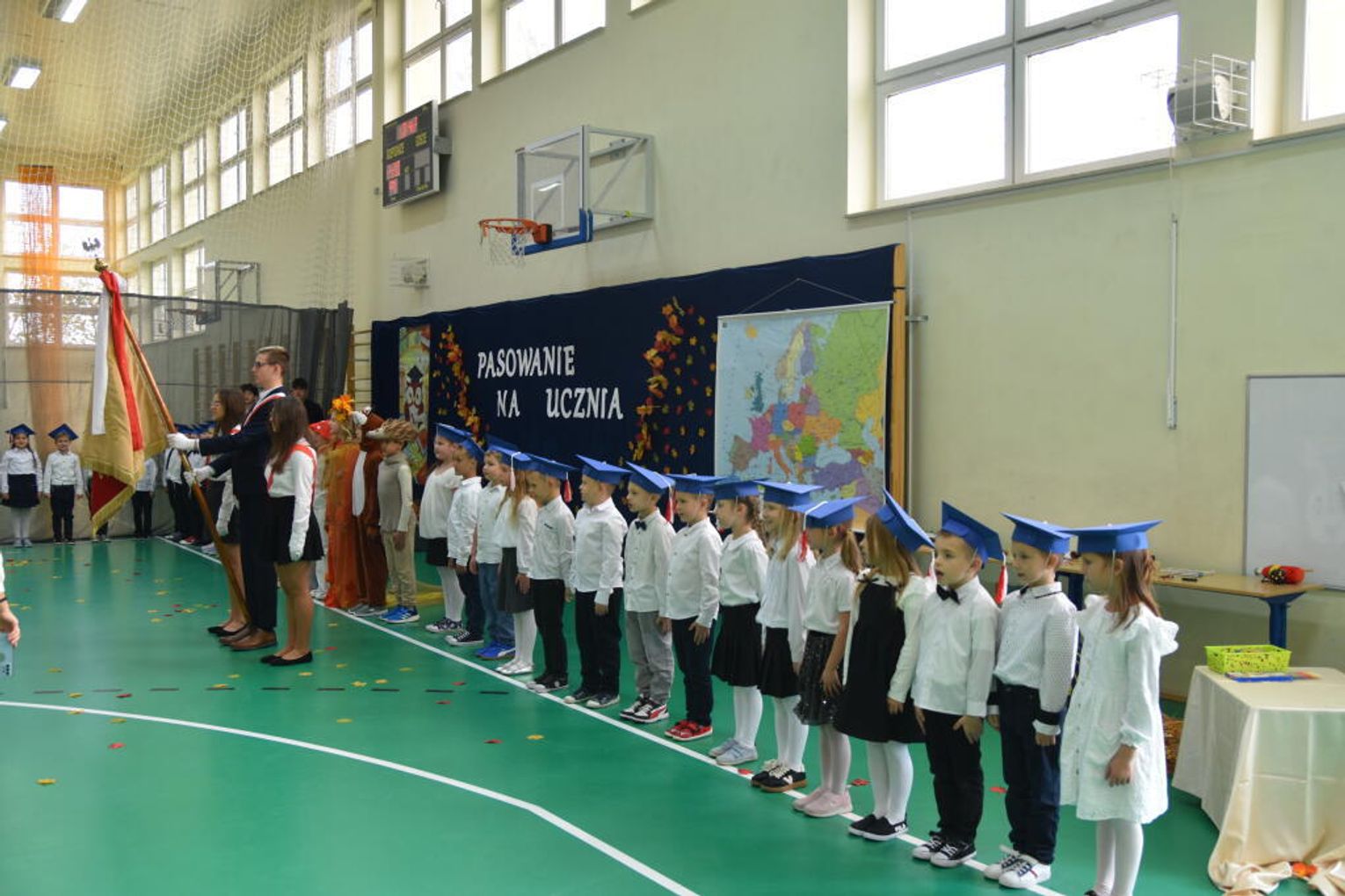 Kulminacyjnym momentem było uroczyste ślubowanie na sztandar szkoły. Pierwszoklasiści z powagą wypowiedzieli słowa przysięgi, obiecując być pilnymi uczniami i dobrymi kolegami. Następnie dyrektor szkoły - Marcin Maniek, przy asyście wicedyrektor - Katarzyny Szlachty, dokonał symbolicznego pasowania na ucznia. Był to niezwykle wzruszający moment, który na długo pozostanie w pamięci dzieci oraz ich bliskich.