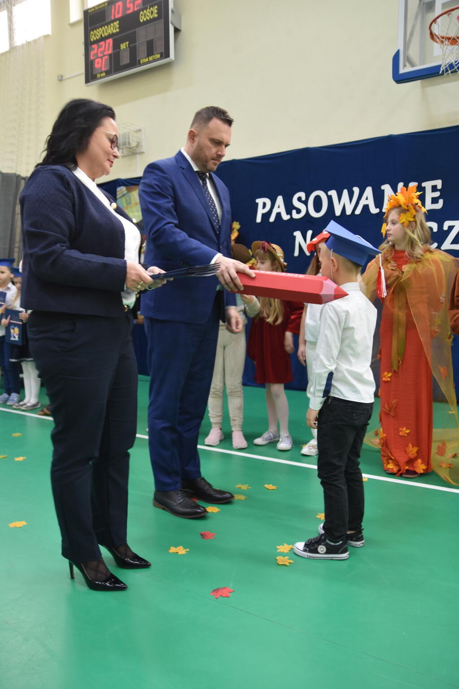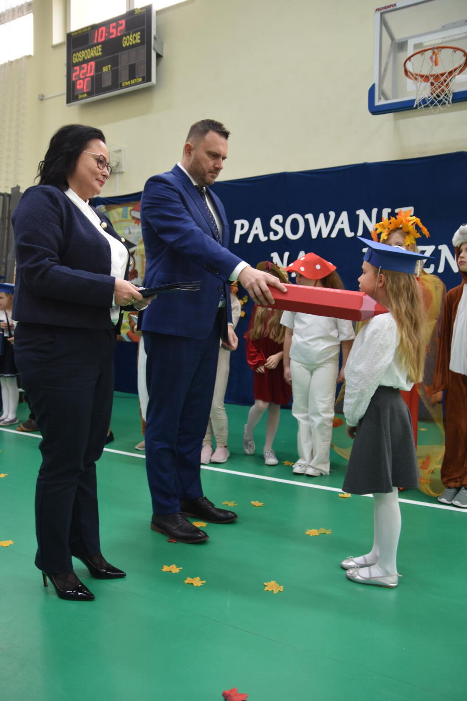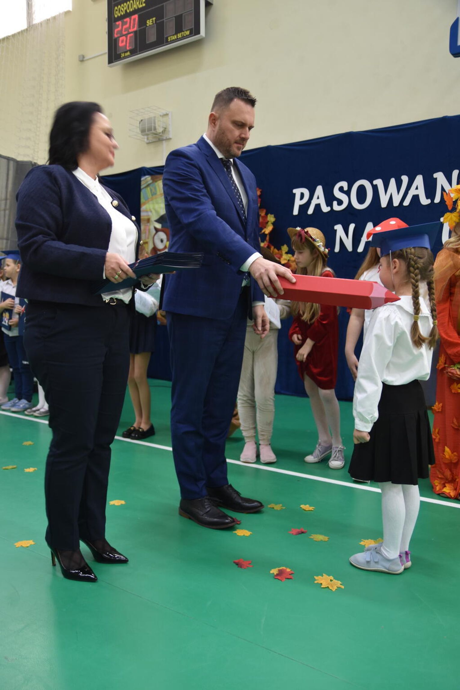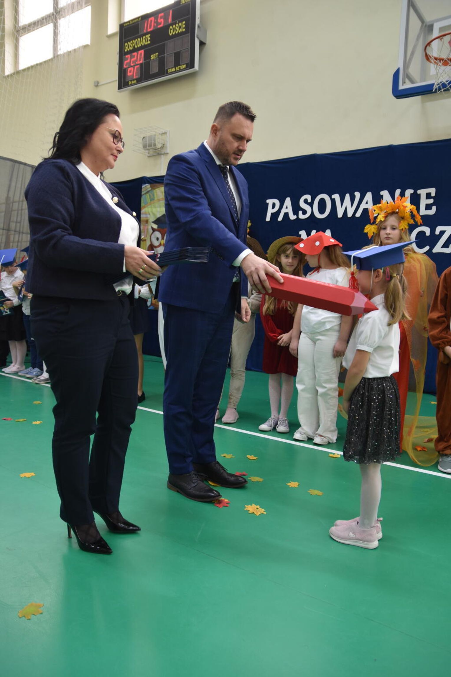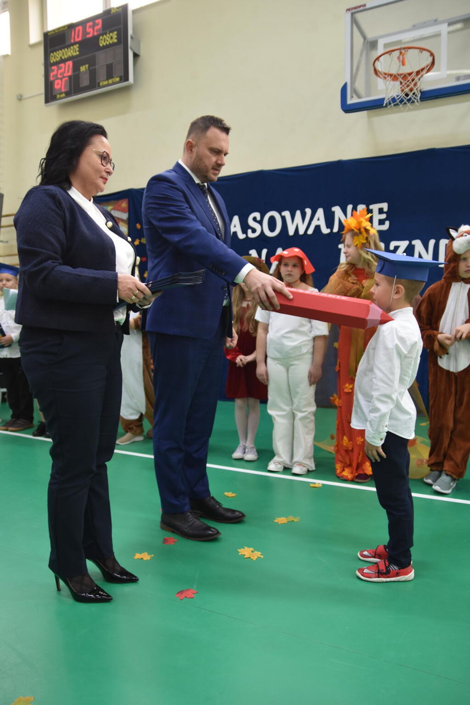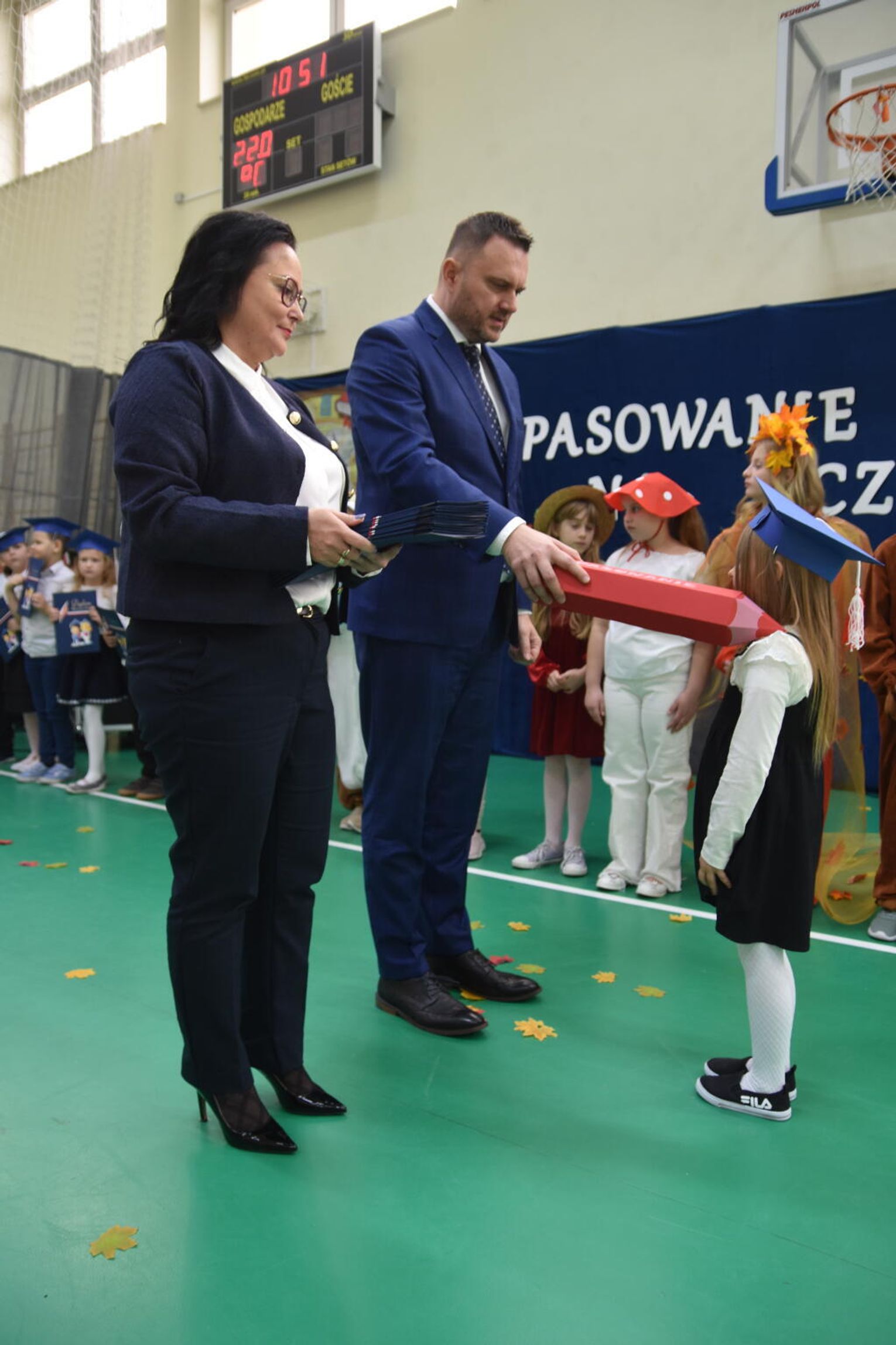 Kulminacyjnym momentem było uroczyste ślubowanie na sztandar szkoły. Pierwszoklasiści z powagą wypowiedzieli słowa przysięgi, obiecując być pilnymi uczniami i dobrymi kolegami. Następnie dyrektor szkoły - Marcin Maniek, przy asyście wicedyrektor - Katarzyny Szlachty, dokonał symbolicznego pasowania na ucznia. Był to niezwykle wzruszający moment, który na długo pozostanie w pamięci dzieci oraz ich bliskich.