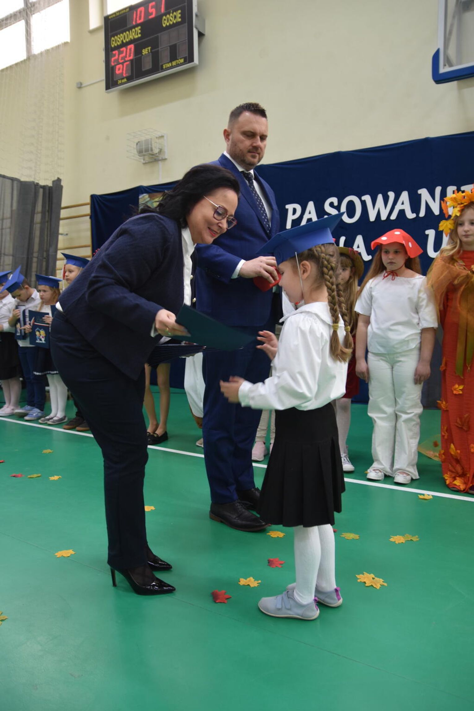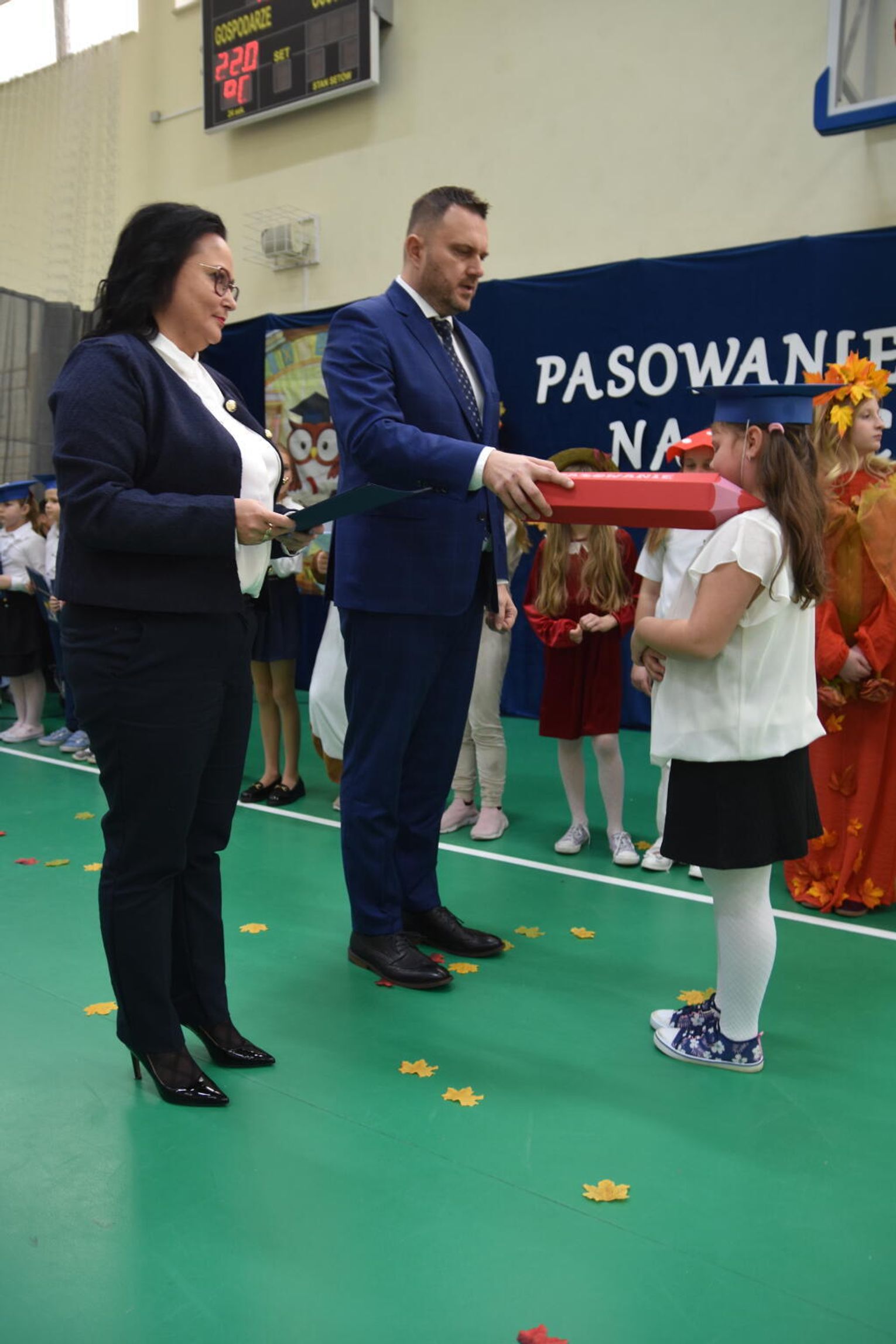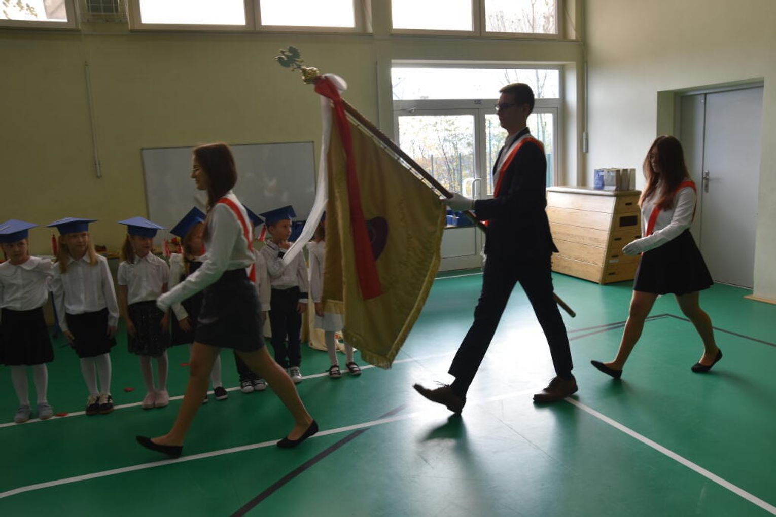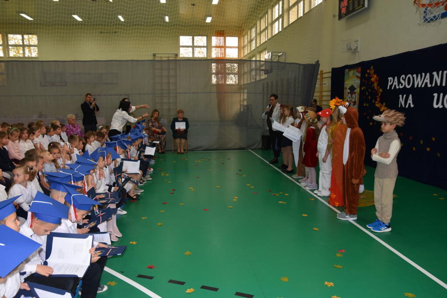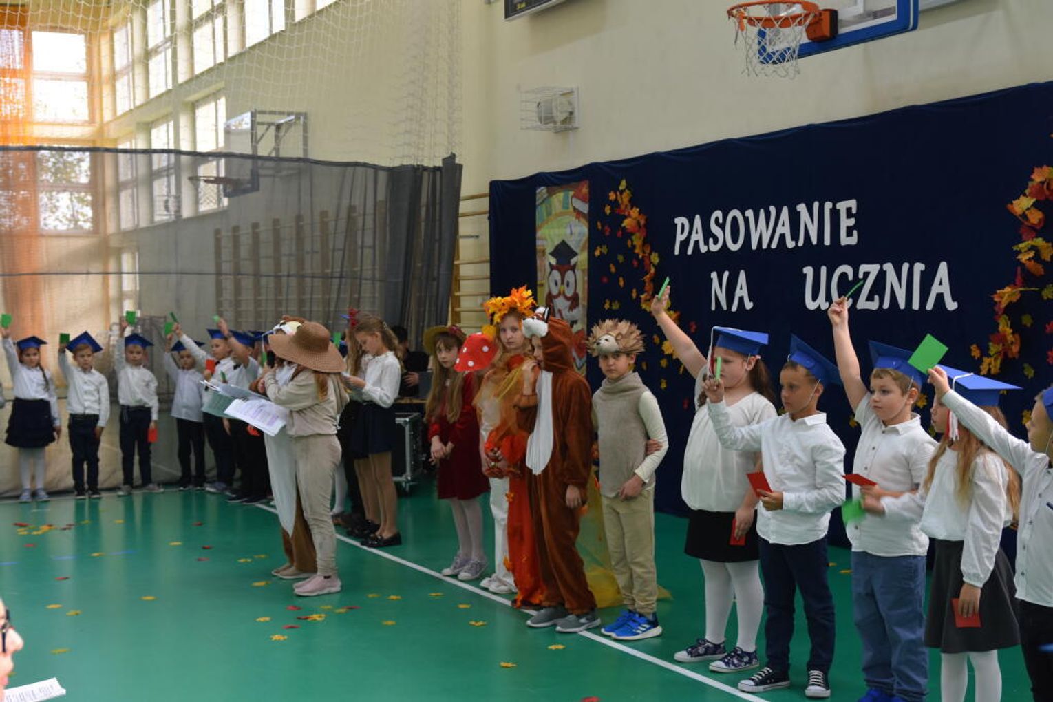 Kulminacyjnym momentem było uroczyste ślubowanie na sztandar szkoły. Pierwszoklasiści z powagą wypowiedzieli słowa przysięgi, obiecując być pilnymi uczniami i dobrymi kolegami. Następnie dyrektor szkoły - Marcin Maniek, przy asyście wicedyrektor - Katarzyny Szlachty, dokonał symbolicznego pasowania na ucznia. Był to niezwykle wzruszający moment, który na długo pozostanie w pamięci dzieci oraz ich bliskich.