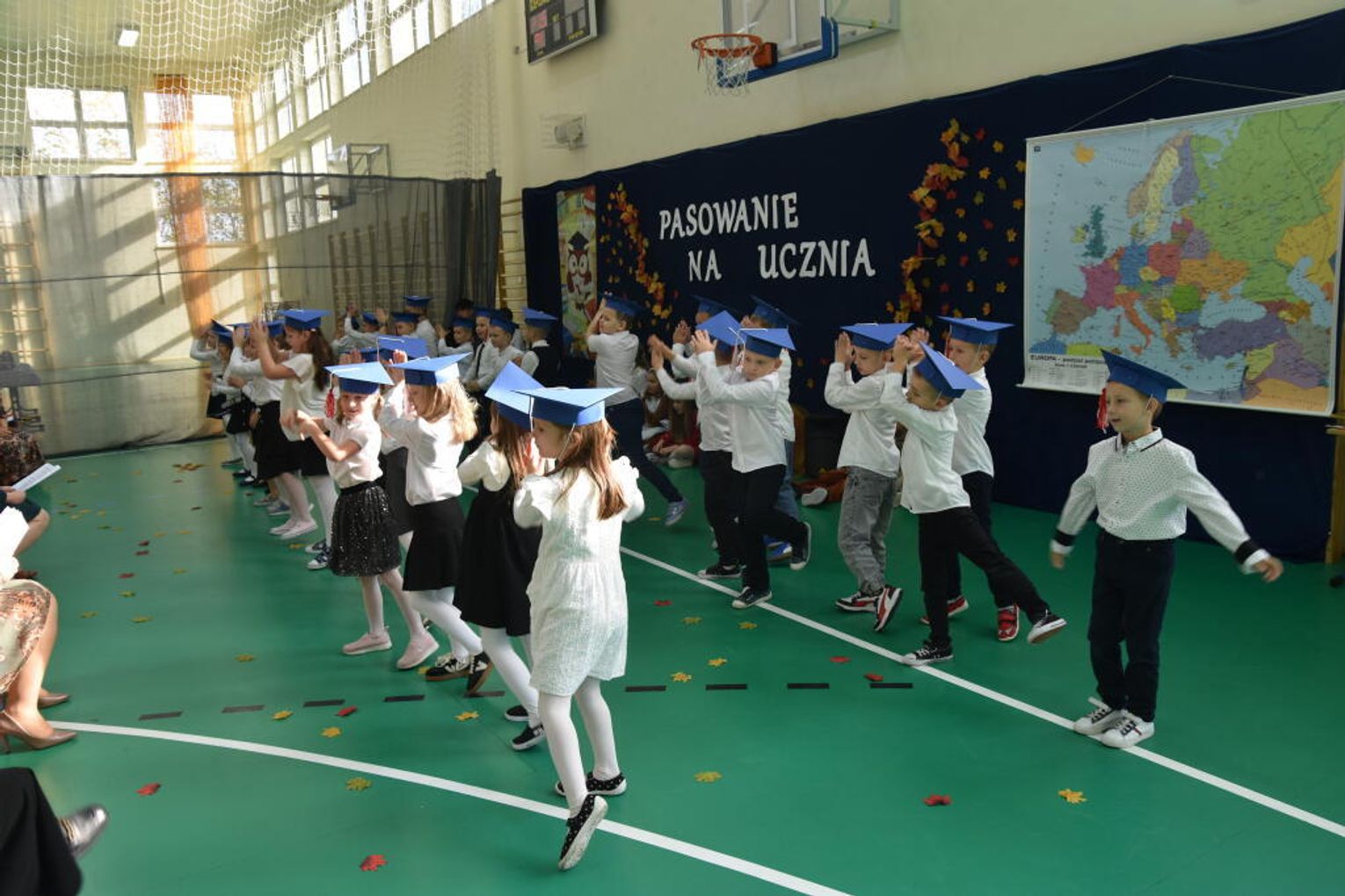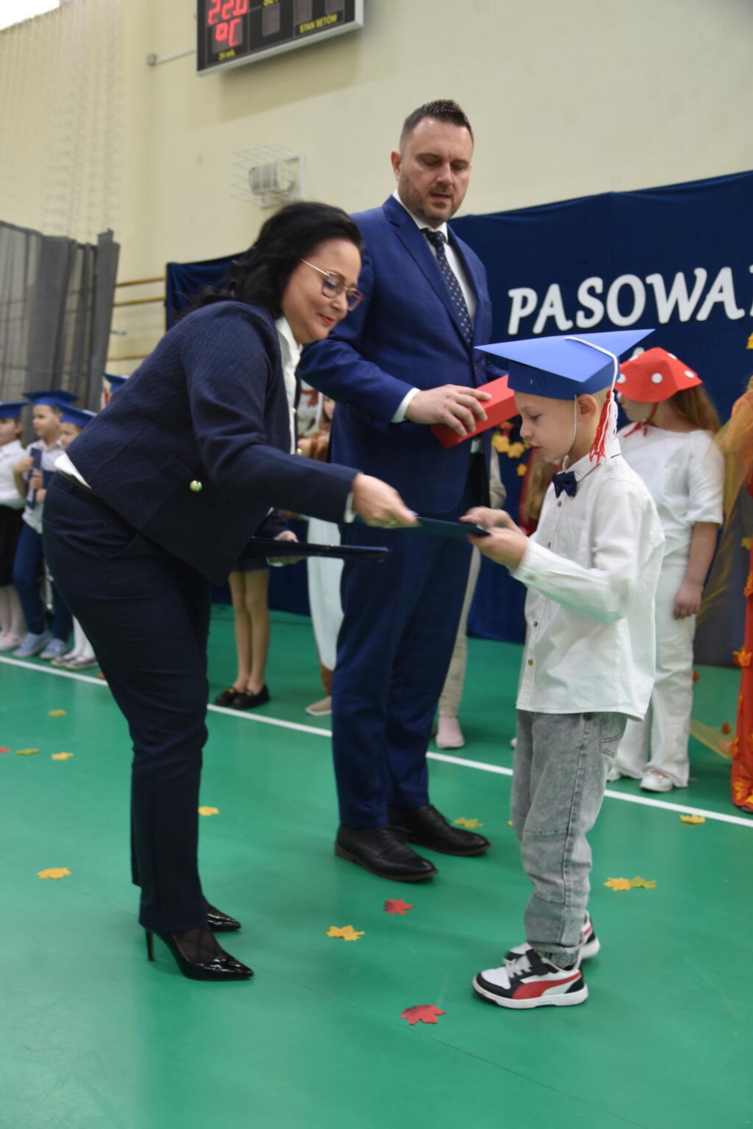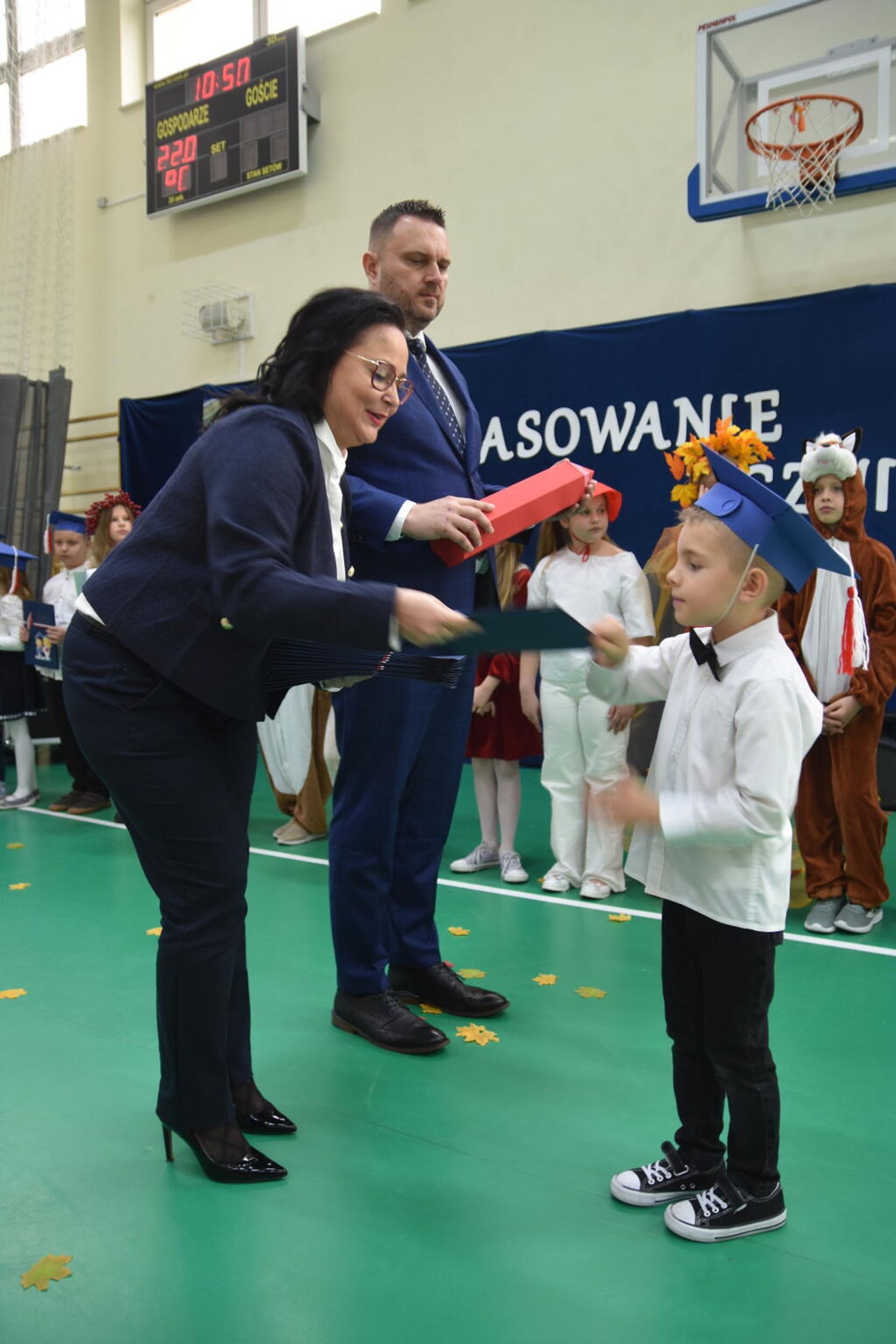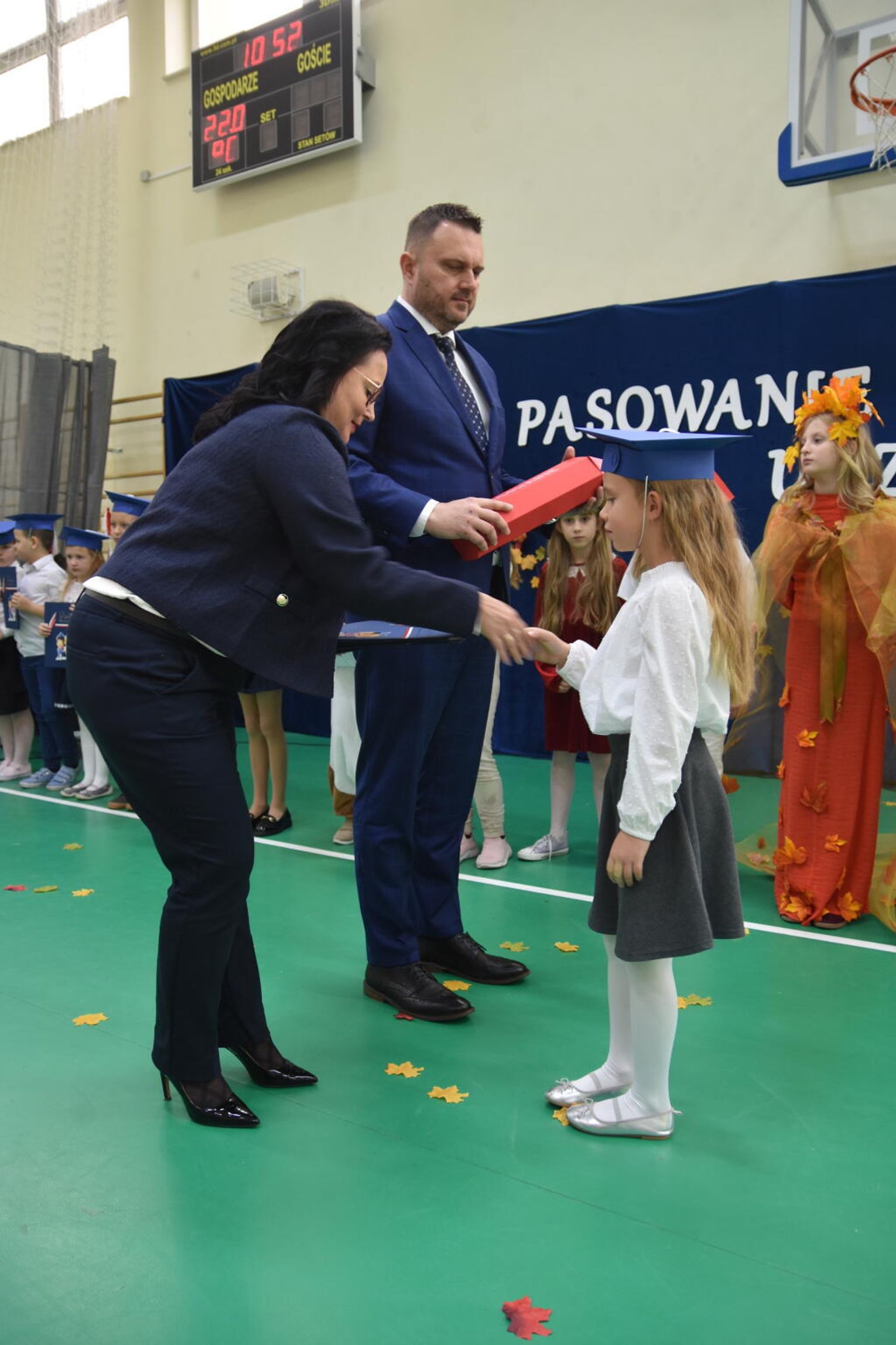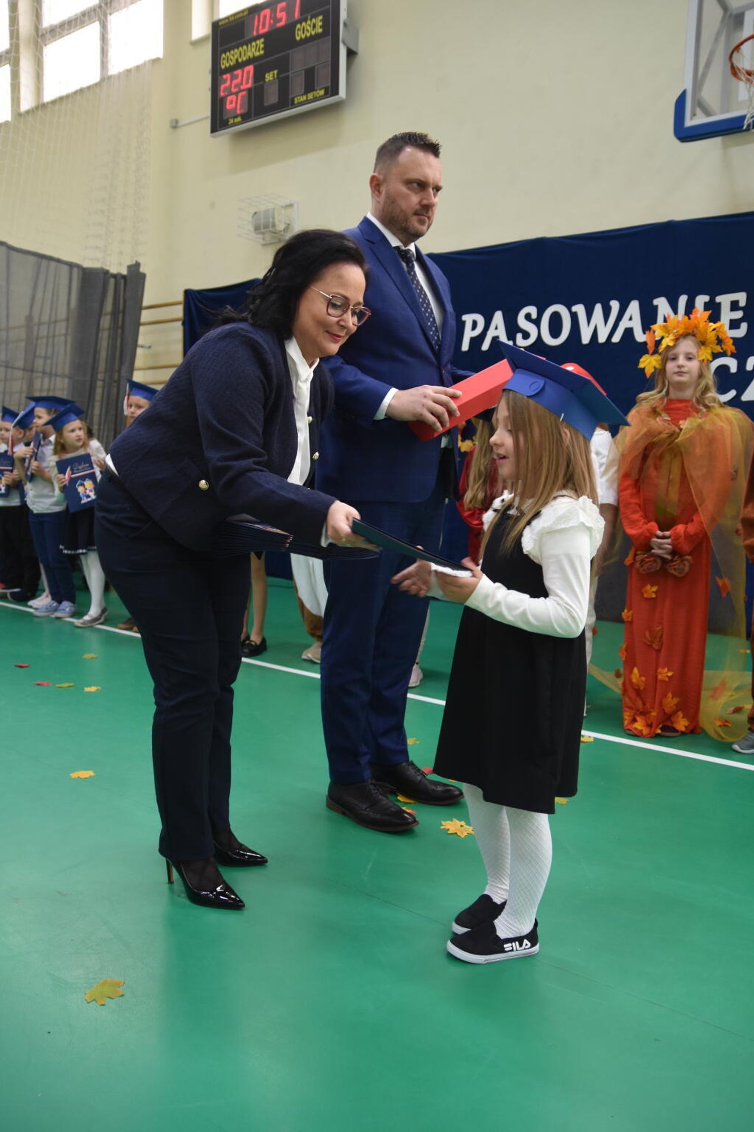 Kulminacyjnym momentem było uroczyste ślubowanie na sztandar szkoły. Pierwszoklasiści z powagą wypowiedzieli słowa przysięgi, obiecując być pilnymi uczniami i dobrymi kolegami. Następnie dyrektor szkoły - Marcin Maniek, przy asyście wicedyrektor - Katarzyny Szlachty, dokonał symbolicznego pasowania na ucznia. Był to niezwykle wzruszający moment, który na długo pozostanie w pamięci dzieci oraz ich bliskich.