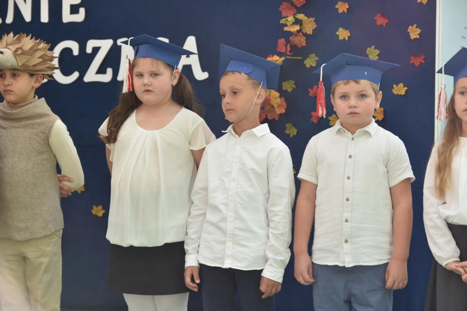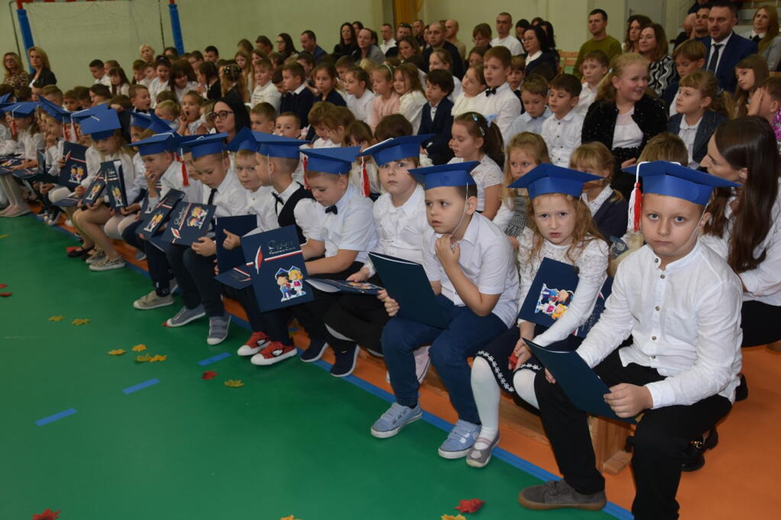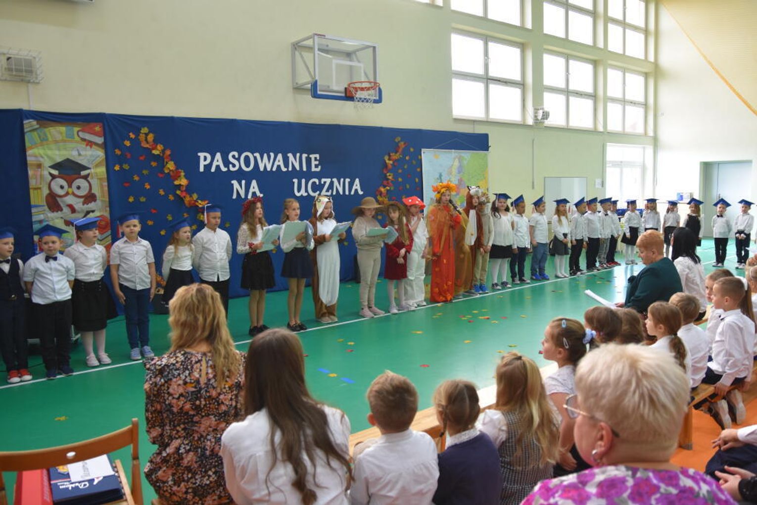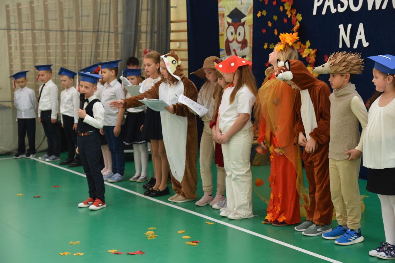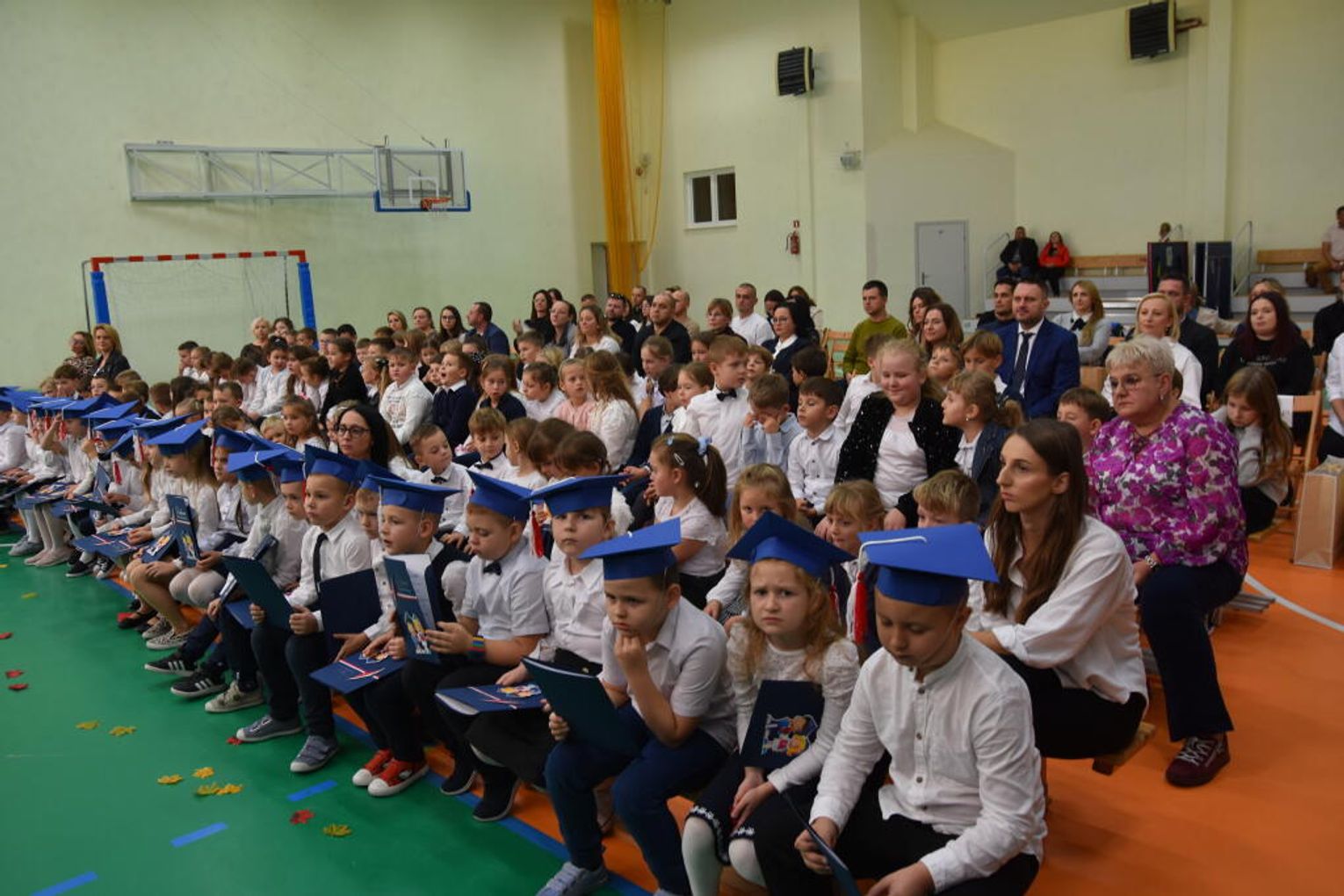 Uroczystość rozpoczęła się od występów przygotowanych przez najmłodszych uczniów. Pierwszaki zaprezentowały wesołe piosenki, starannie wyrecytowane wierszyki oraz pełne energii tańce. Ich zaangażowanie i talent wzbudziły aplauz wśród zgromadzonych gości, rodziców oraz starszych kolegów i koleżanek. W trakcie akademii dzieci odpowiadały na różne pytania, udowadniając, że już wiele się nauczyły i są gotowe do pełnienia roli prawdziwych uczniów.