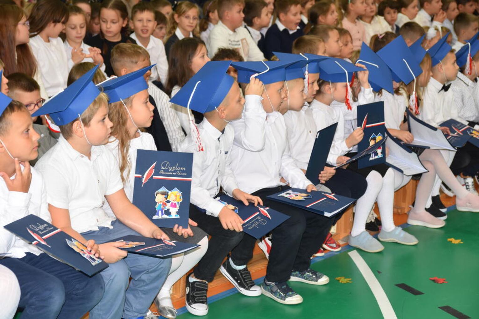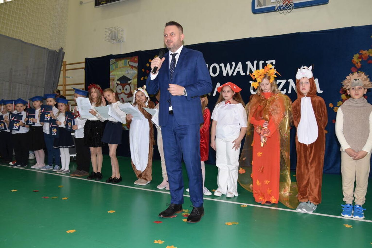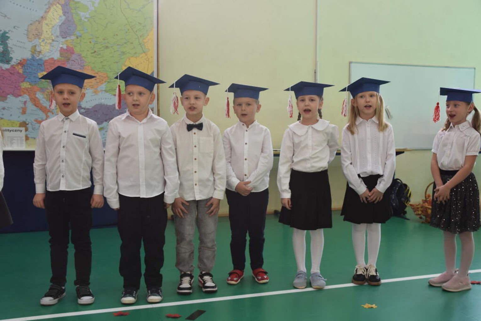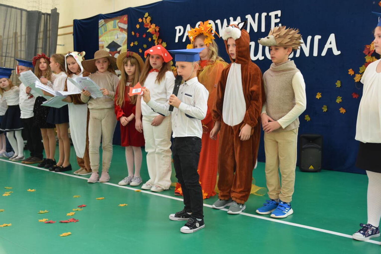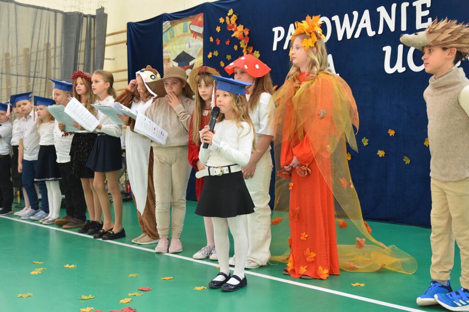 Uroczystość rozpoczęła się od występów przygotowanych przez najmłodszych uczniów. Pierwszaki zaprezentowały wesołe piosenki, starannie wyrecytowane wierszyki oraz pełne energii tańce. Ich zaangażowanie i talent wzbudziły aplauz wśród zgromadzonych gości, rodziców oraz starszych kolegów i koleżanek. W trakcie akademii dzieci odpowiadały na różne pytania, udowadniając, że już wiele się nauczyły i są gotowe do pełnienia roli prawdziwych uczniów.
