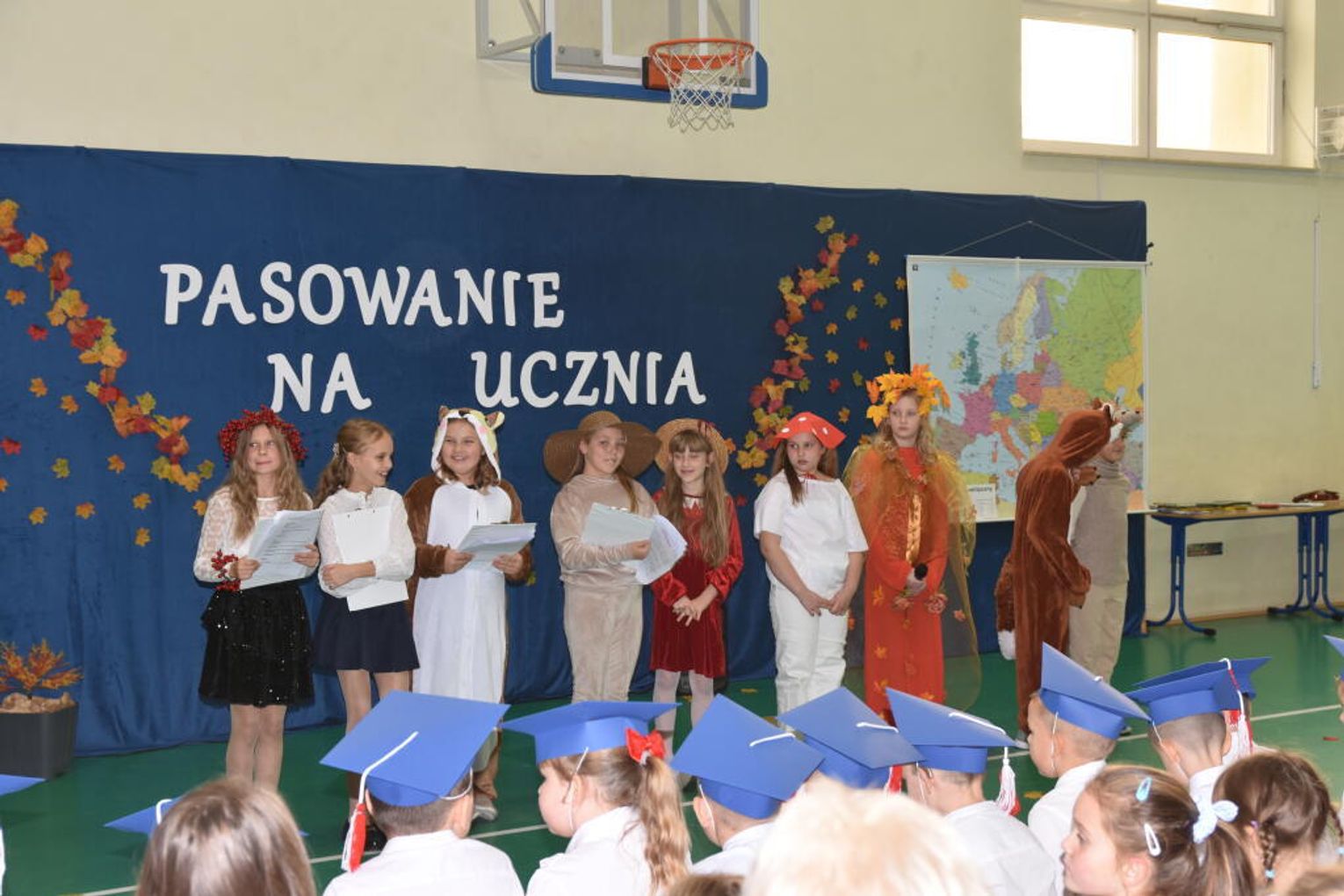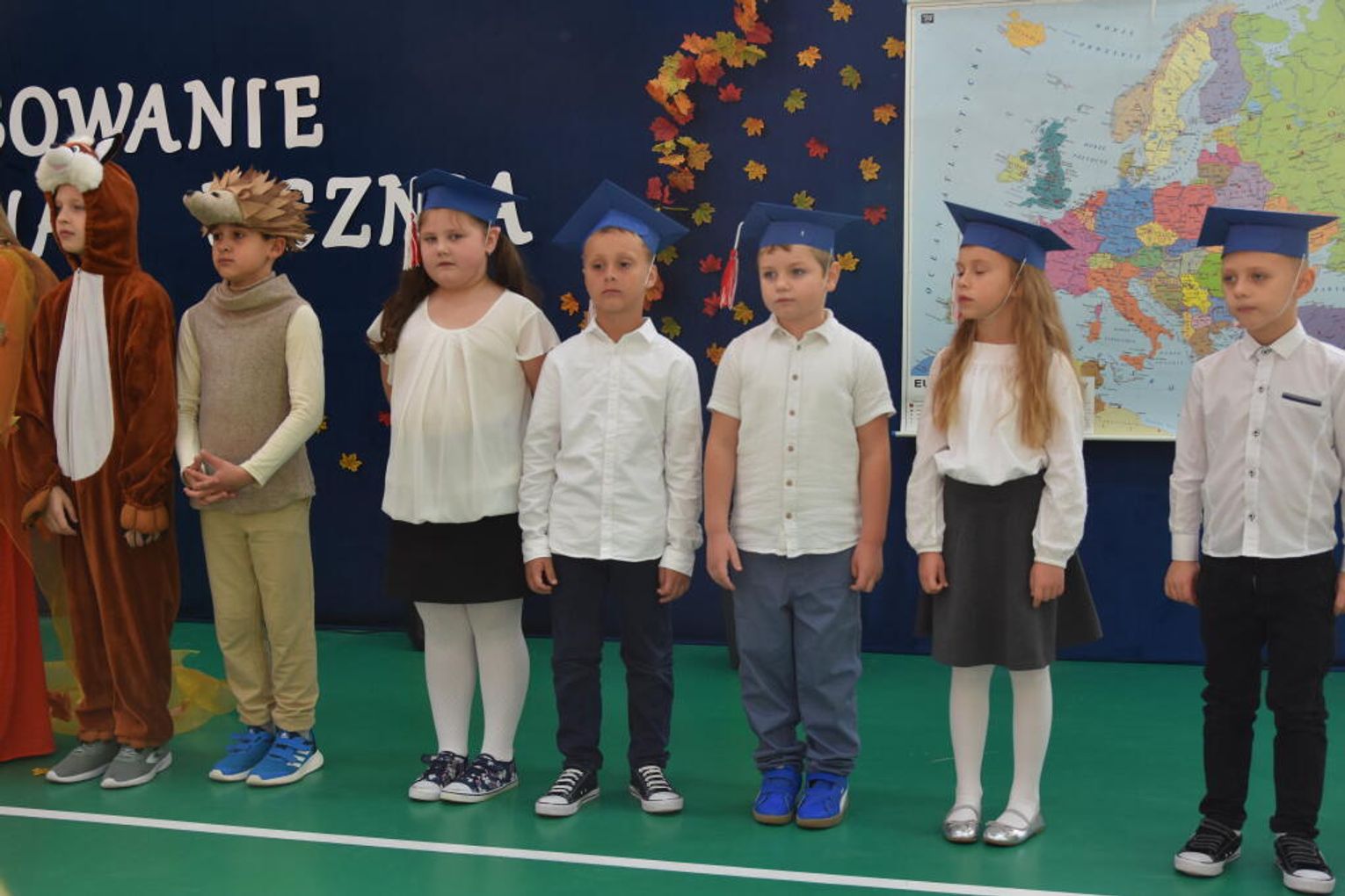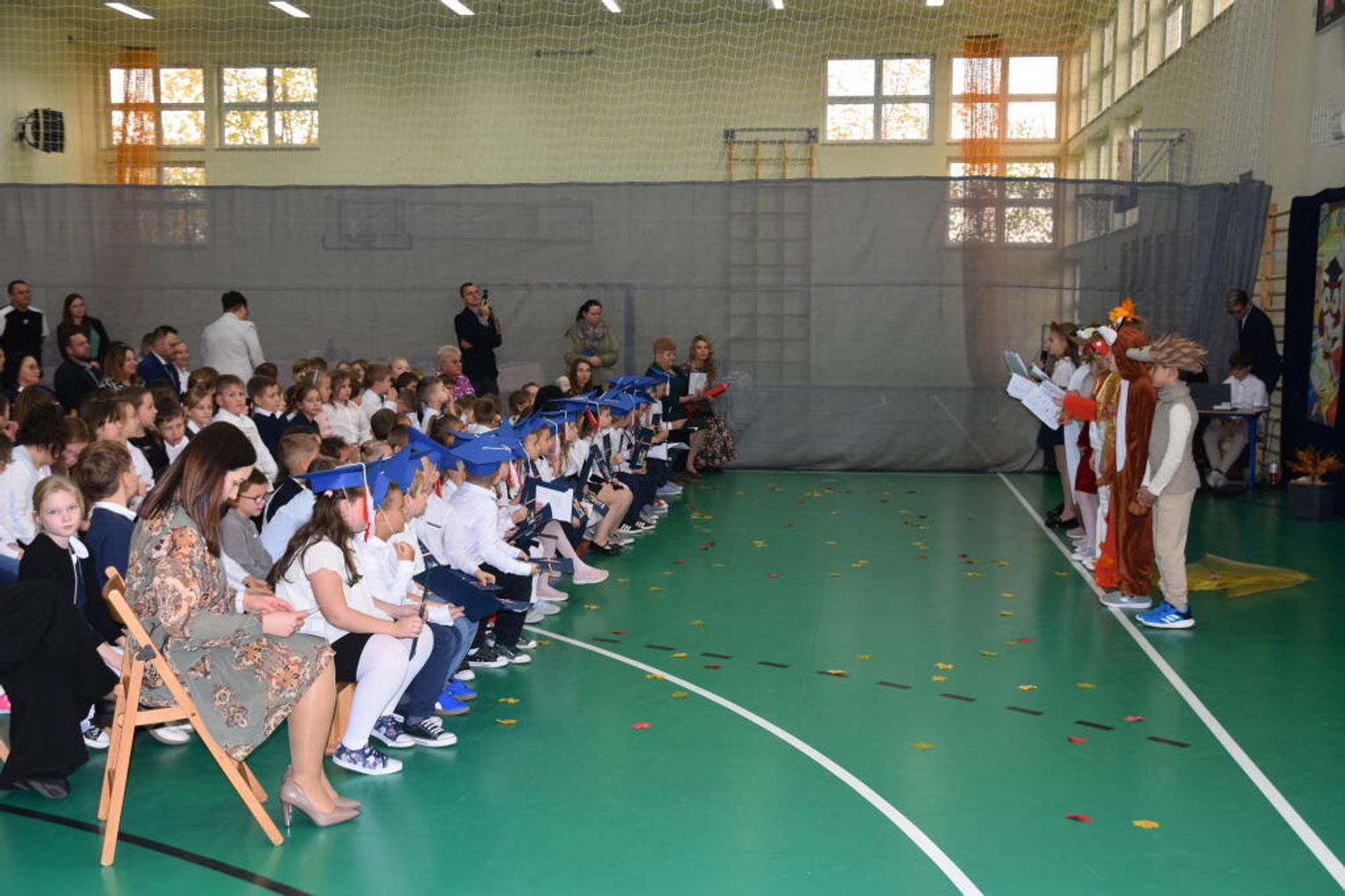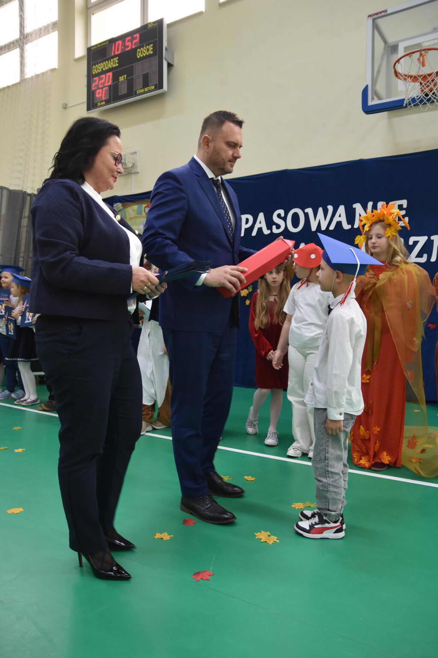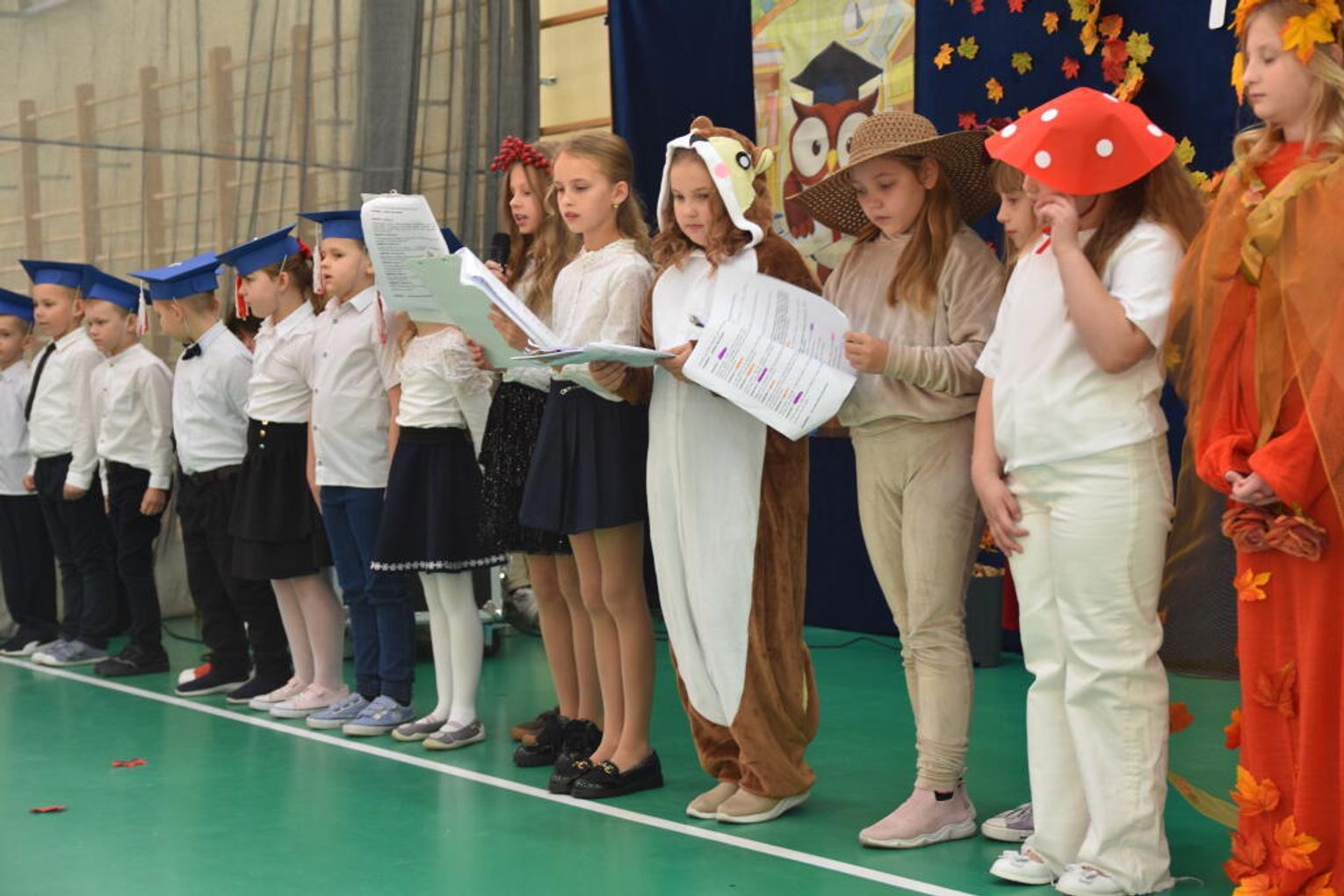 Uroczystość rozpoczęła się od występów przygotowanych przez najmłodszych uczniów. Pierwszaki zaprezentowały wesołe piosenki, starannie wyrecytowane wierszyki oraz pełne energii tańce. Ich zaangażowanie i talent wzbudziły aplauz wśród zgromadzonych gości, rodziców oraz starszych kolegów i koleżanek. W trakcie akademii dzieci odpowiadały na różne pytania, udowadniając, że już wiele się nauczyły i są gotowe do pełnienia roli prawdziwych uczniów.