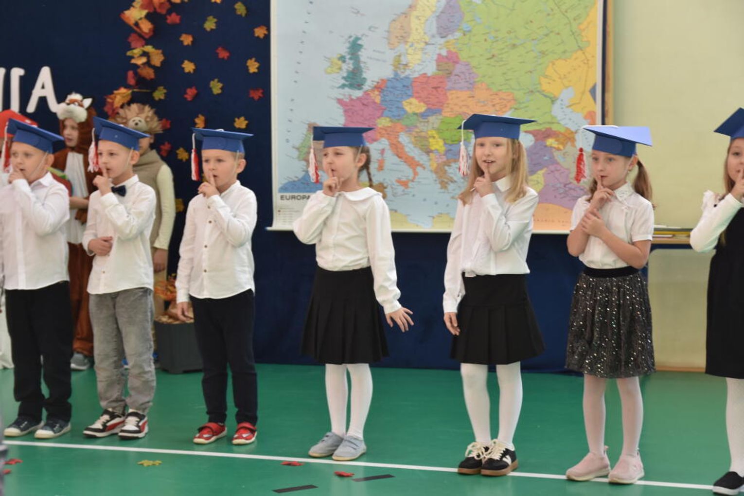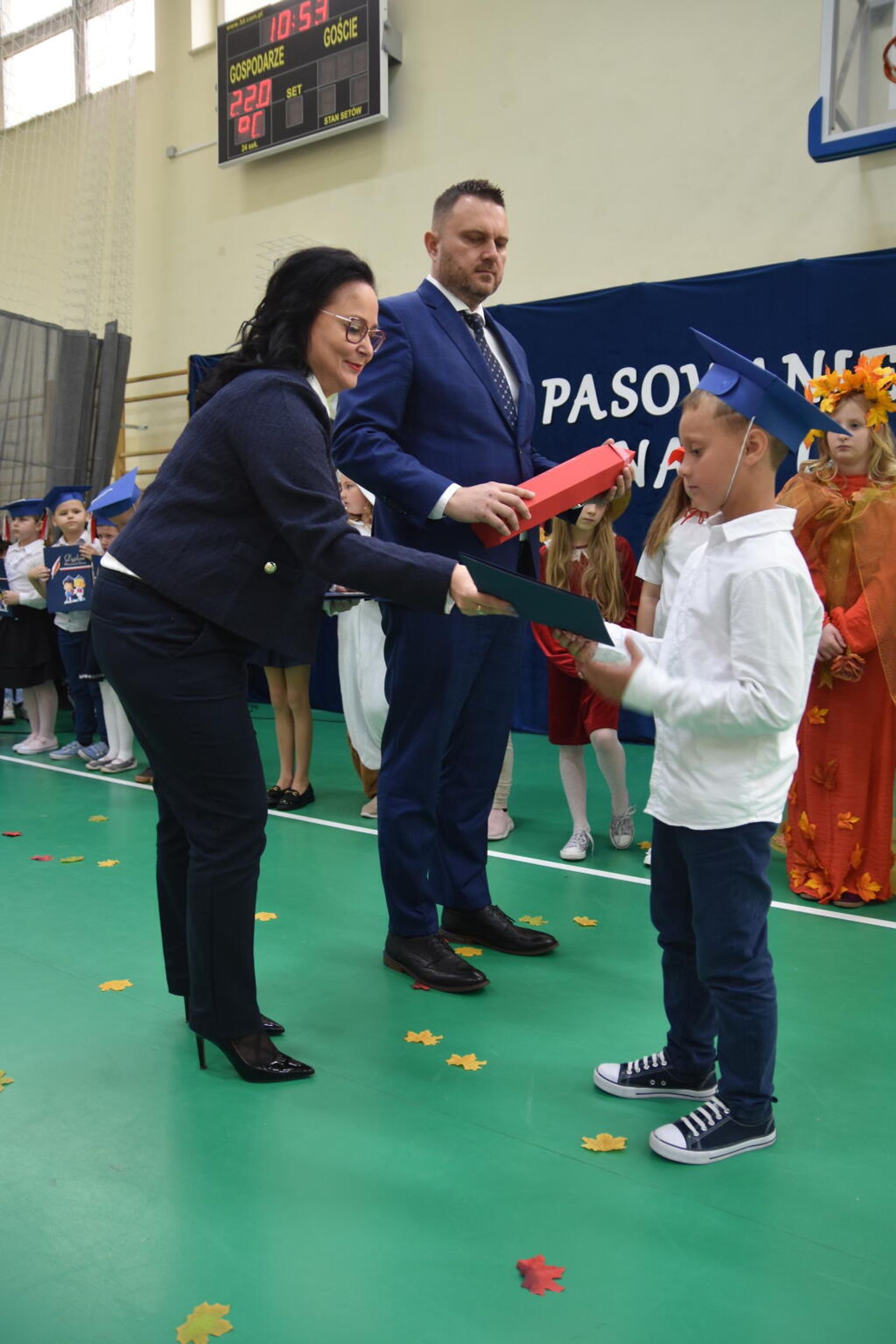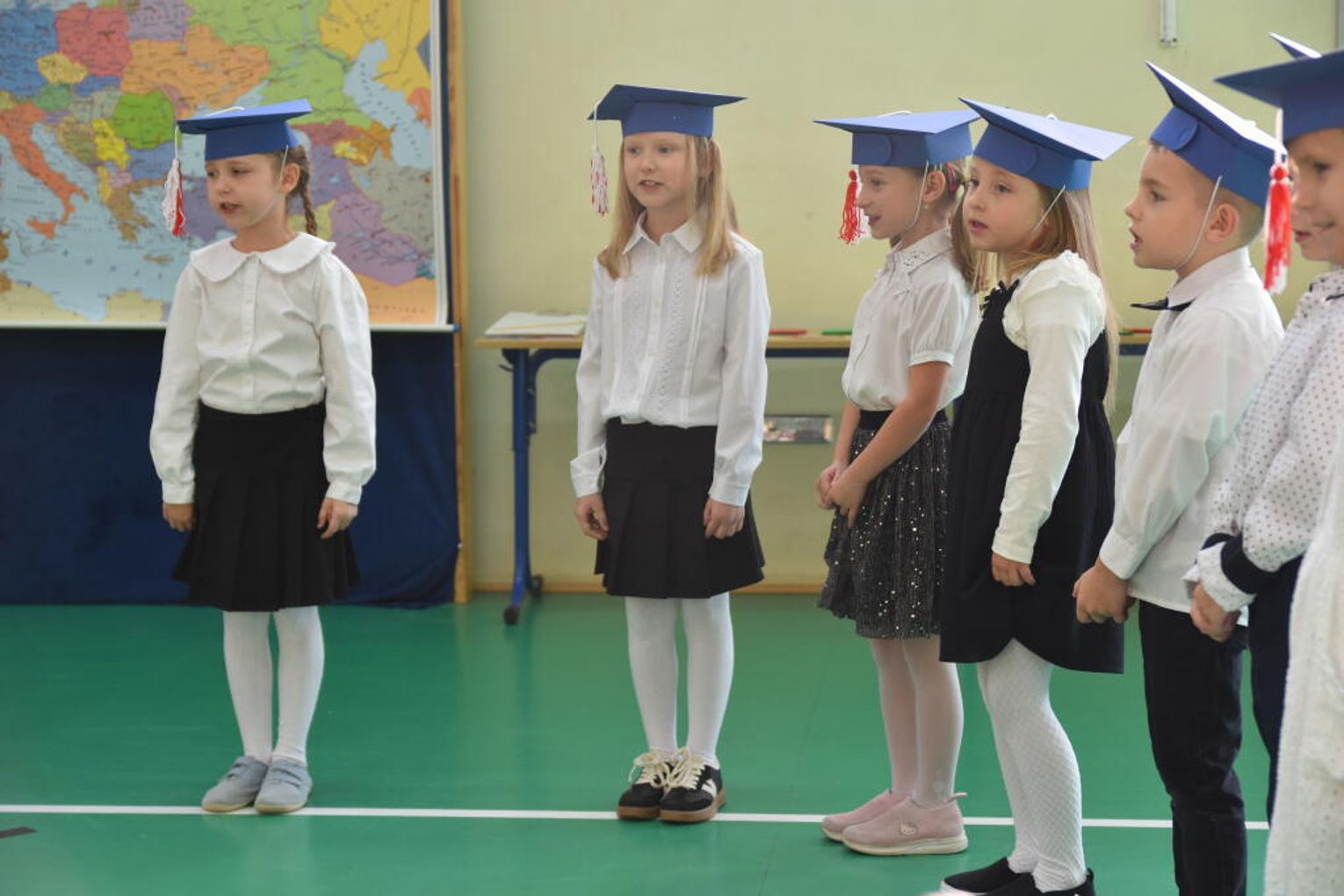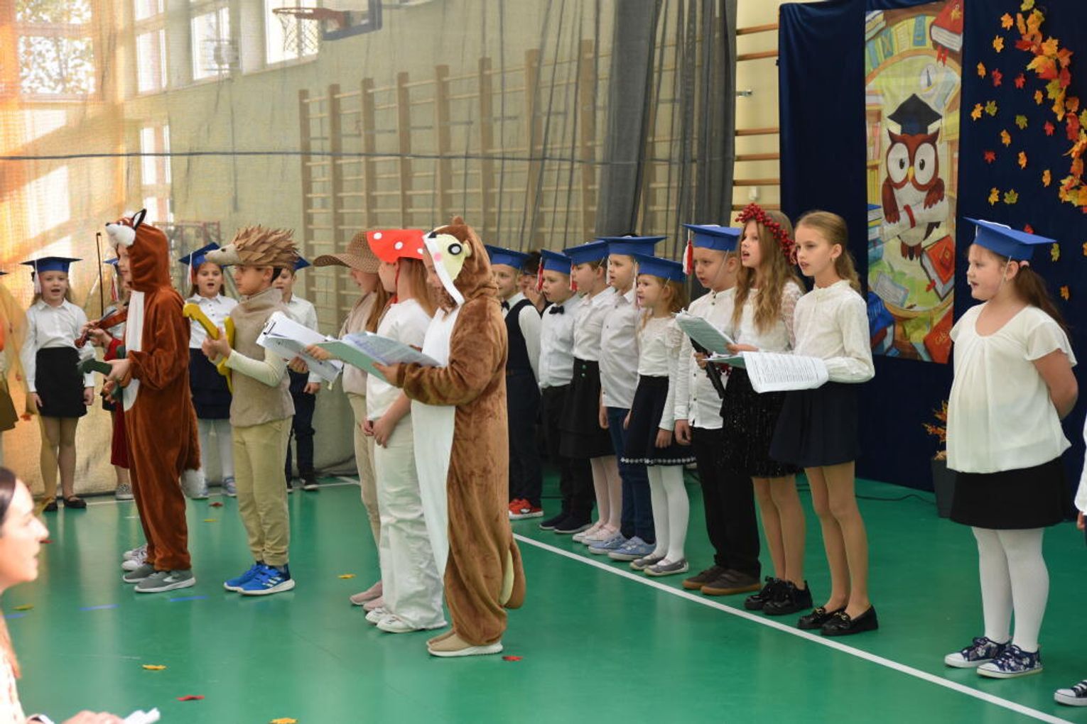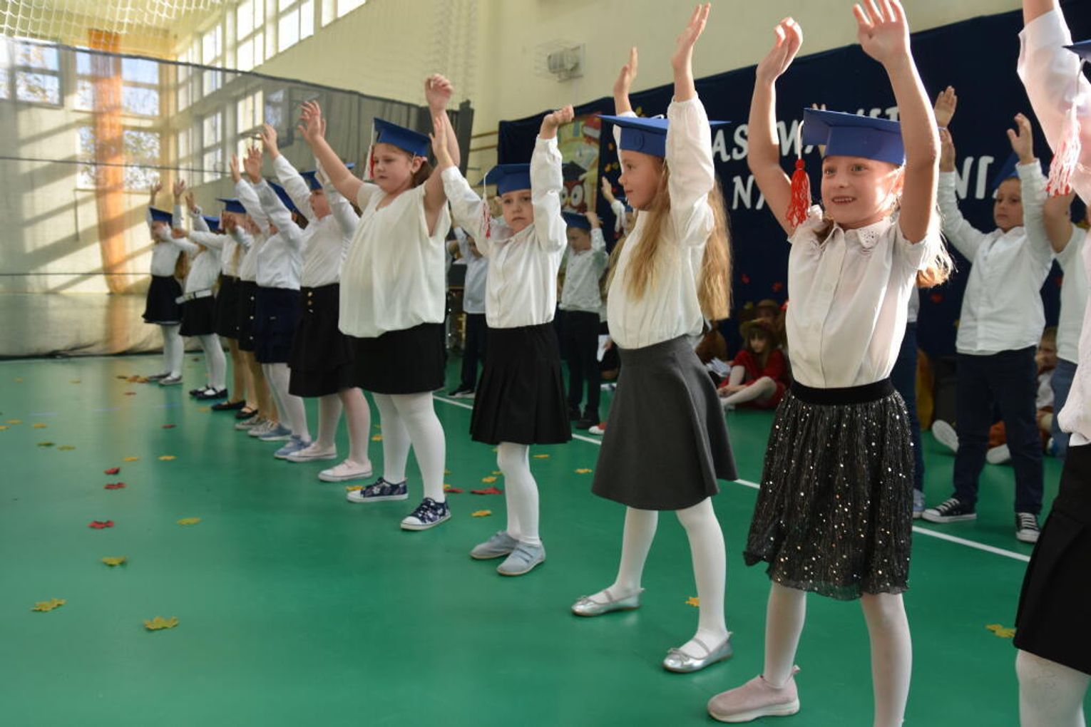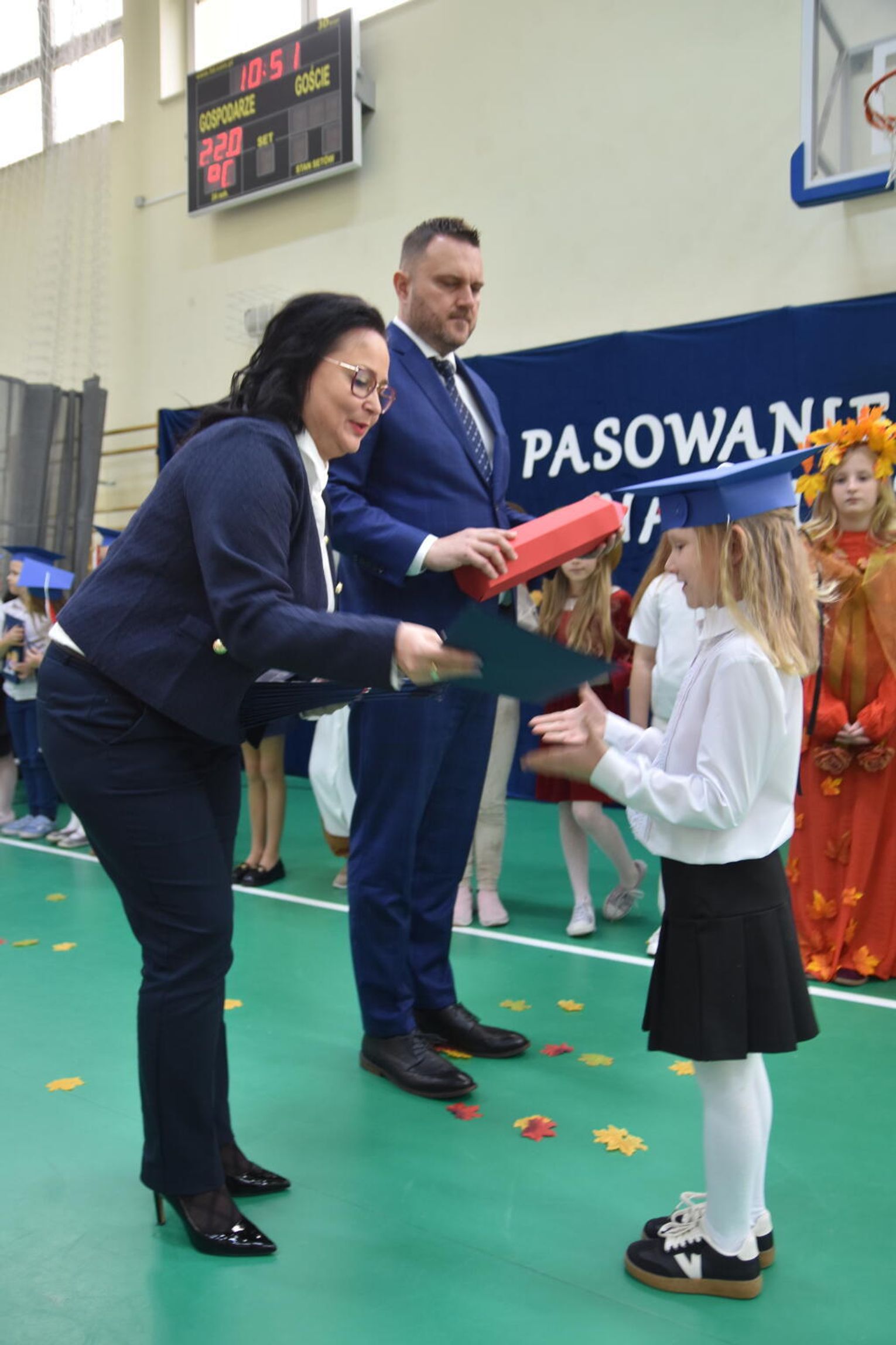 Uroczystość rozpoczęła się od występów przygotowanych przez najmłodszych uczniów. Pierwszaki zaprezentowały wesołe piosenki, starannie wyrecytowane wierszyki oraz pełne energii tańce. Ich zaangażowanie i talent wzbudziły aplauz wśród zgromadzonych gości, rodziców oraz starszych kolegów i koleżanek. W trakcie akademii dzieci odpowiadały na różne pytania, udowadniając, że już wiele się nauczyły i są gotowe do pełnienia roli prawdziwych uczniów.