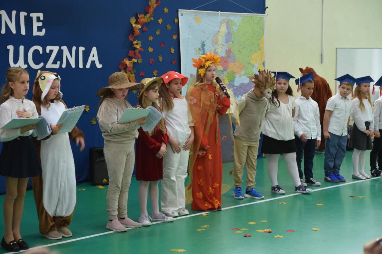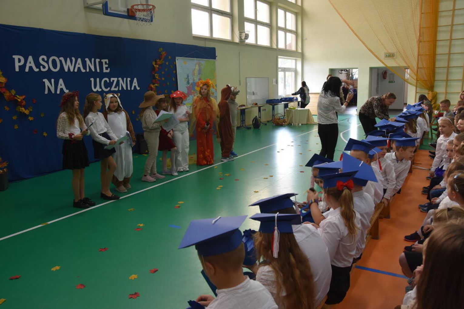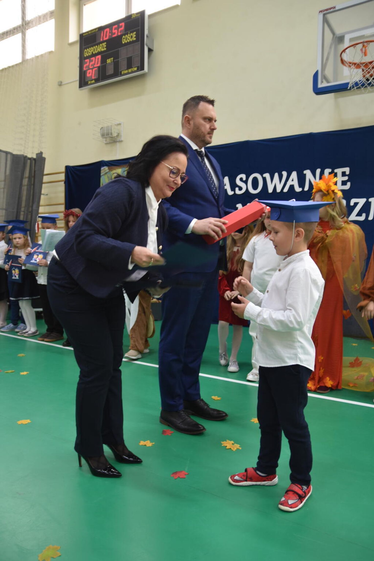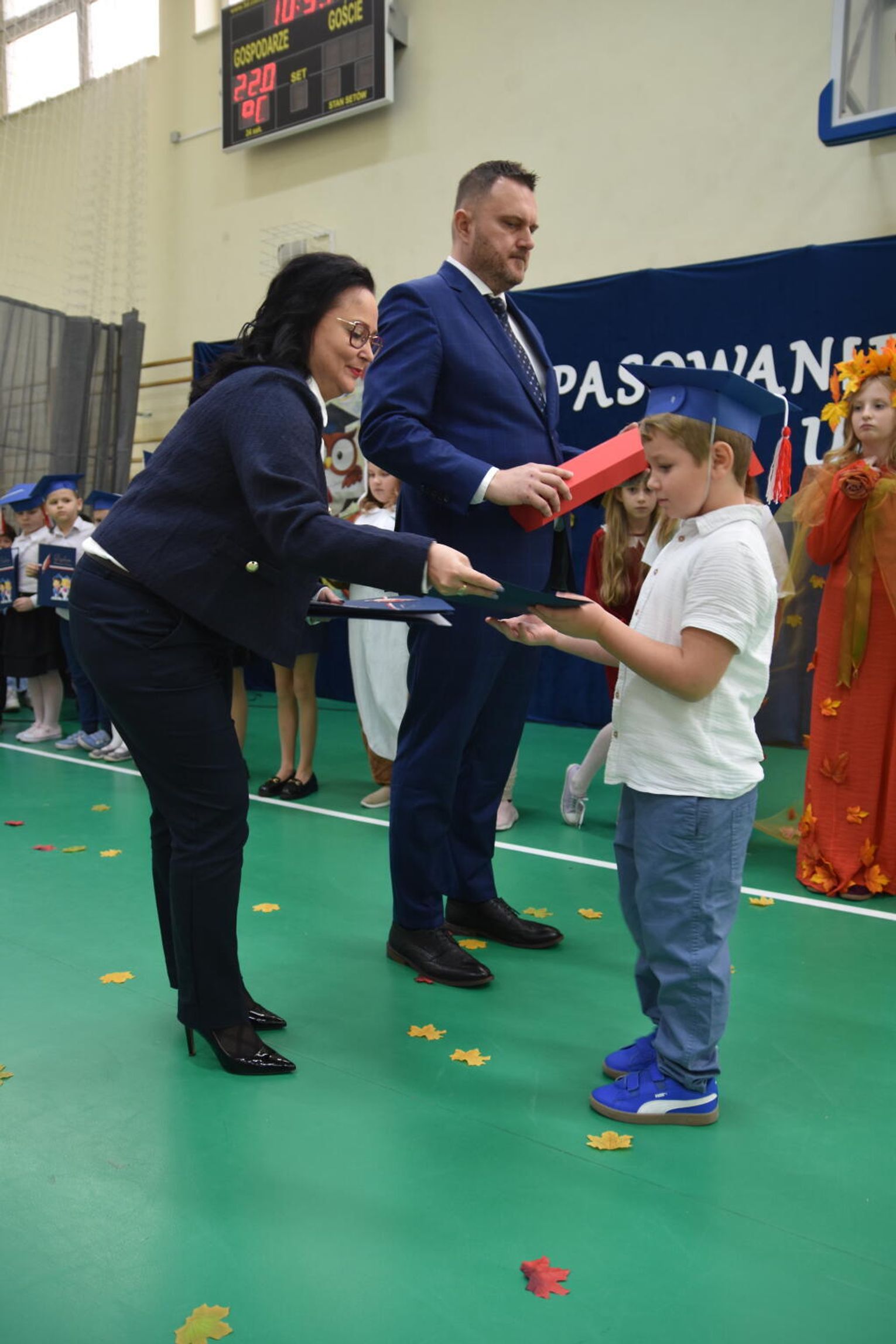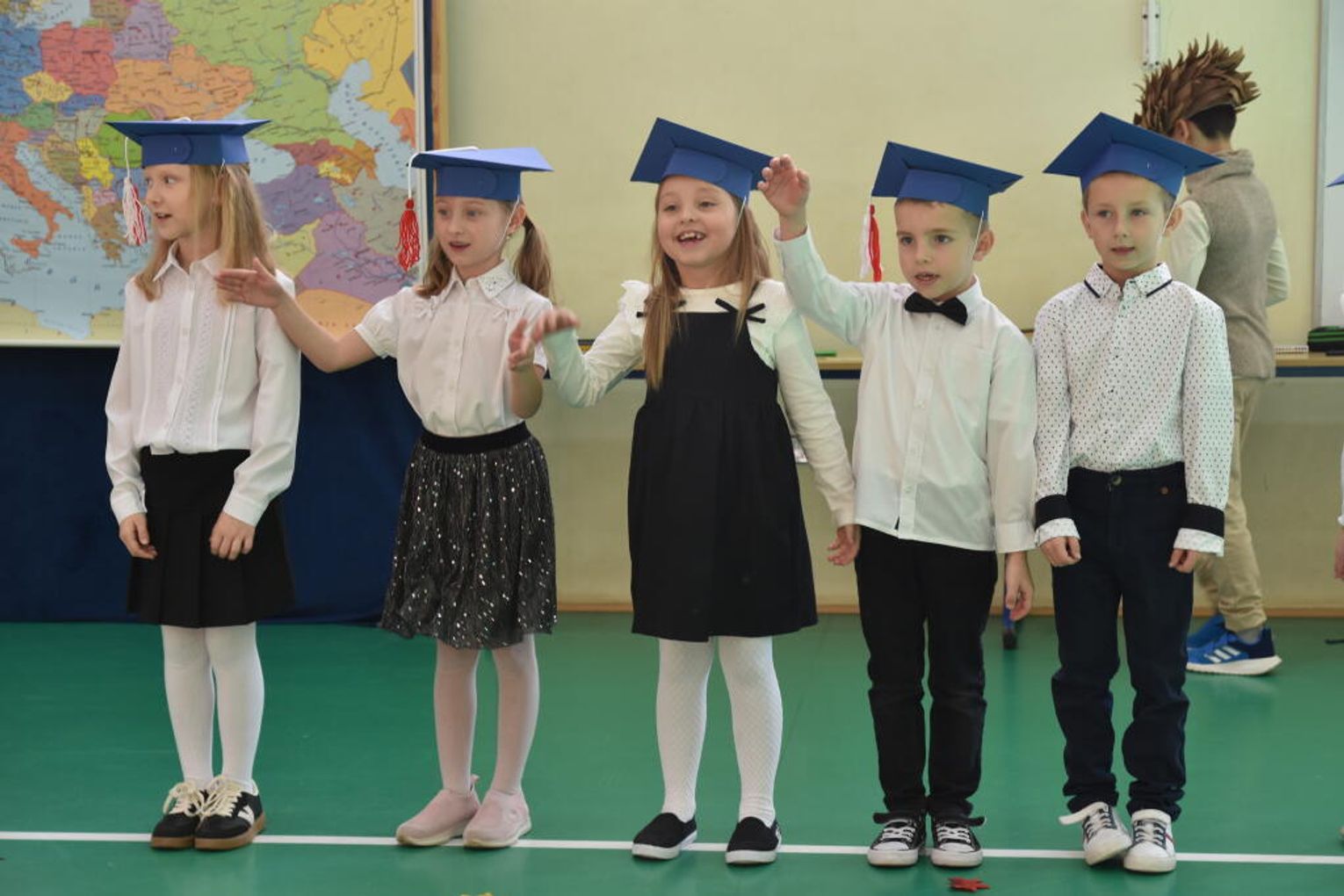 Uroczystość rozpoczęła się od występów przygotowanych przez najmłodszych uczniów. Pierwszaki zaprezentowały wesołe piosenki, starannie wyrecytowane wierszyki oraz pełne energii tańce. Ich zaangażowanie i talent wzbudziły aplauz wśród zgromadzonych gości, rodziców oraz starszych kolegów i koleżanek. W trakcie akademii dzieci odpowiadały na różne pytania, udowadniając, że już wiele się nauczyły i są gotowe do pełnienia roli prawdziwych uczniów.