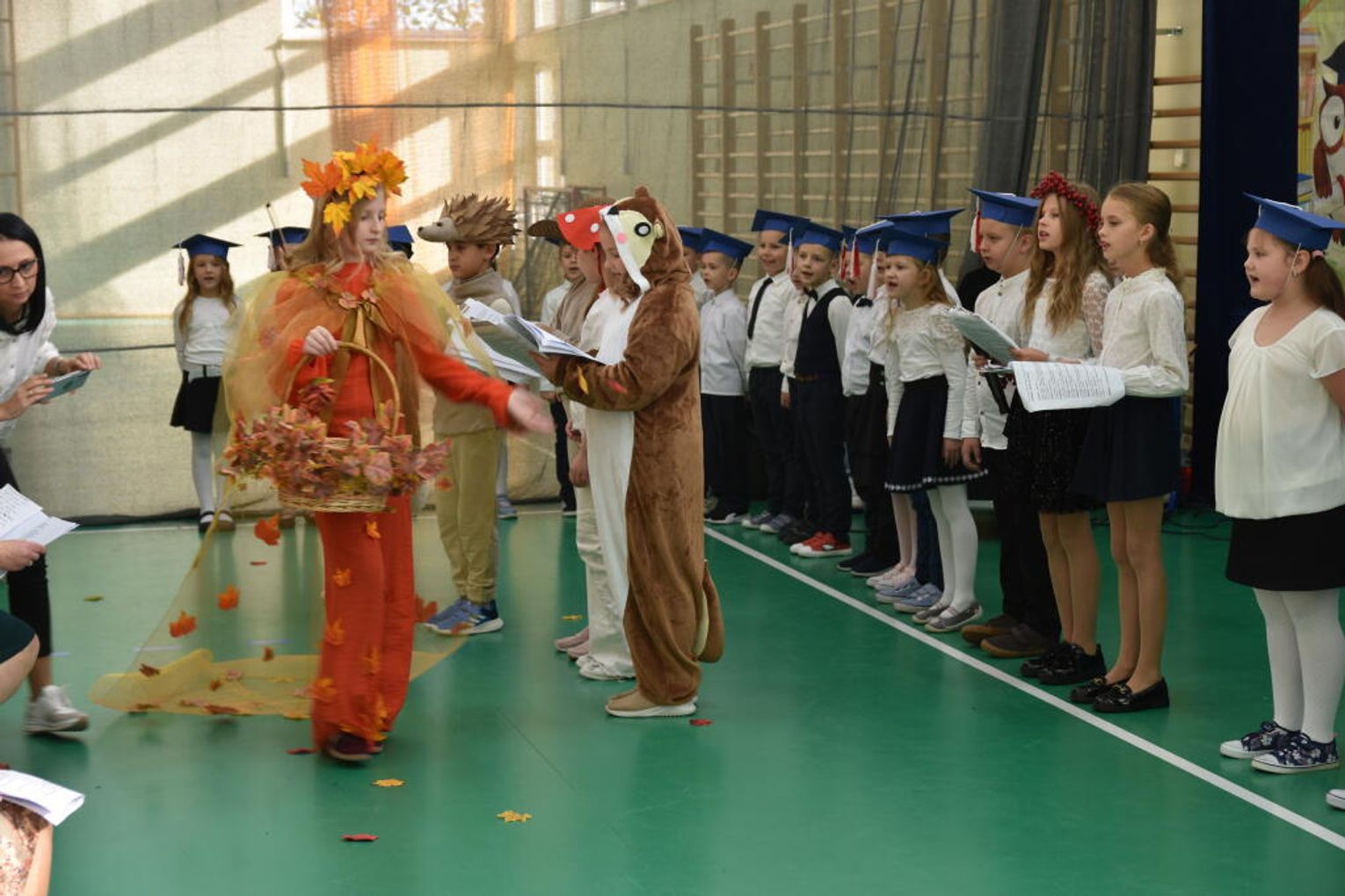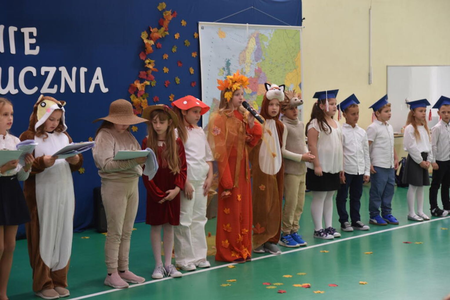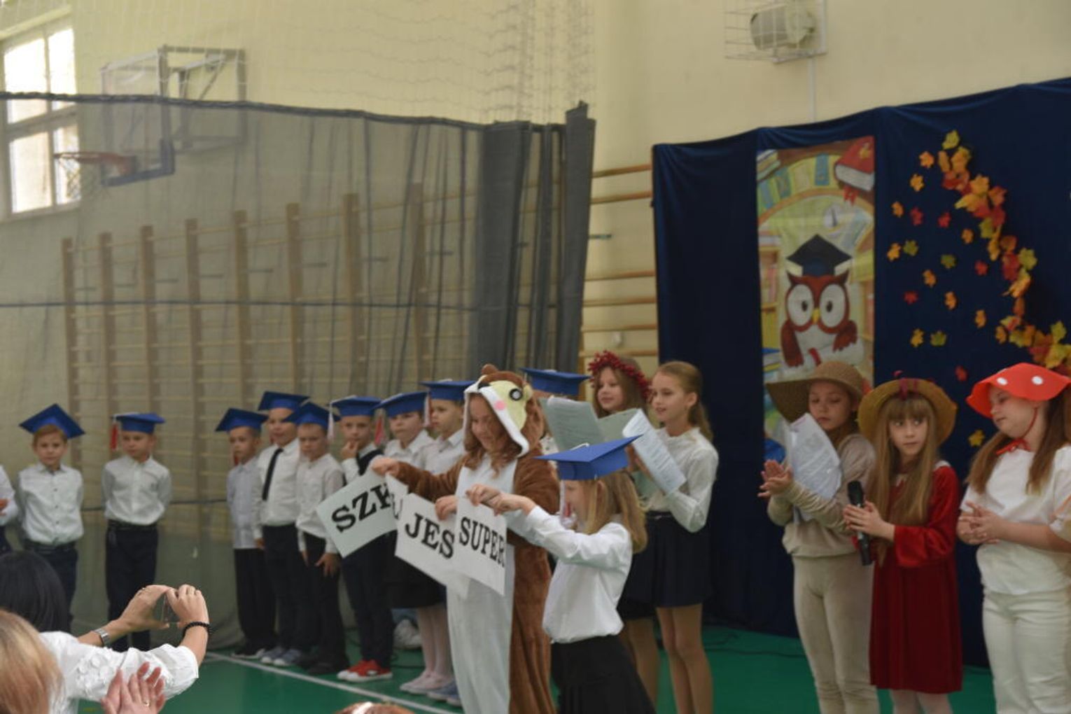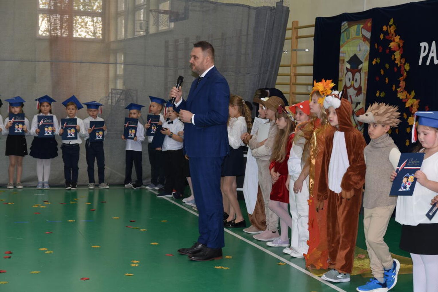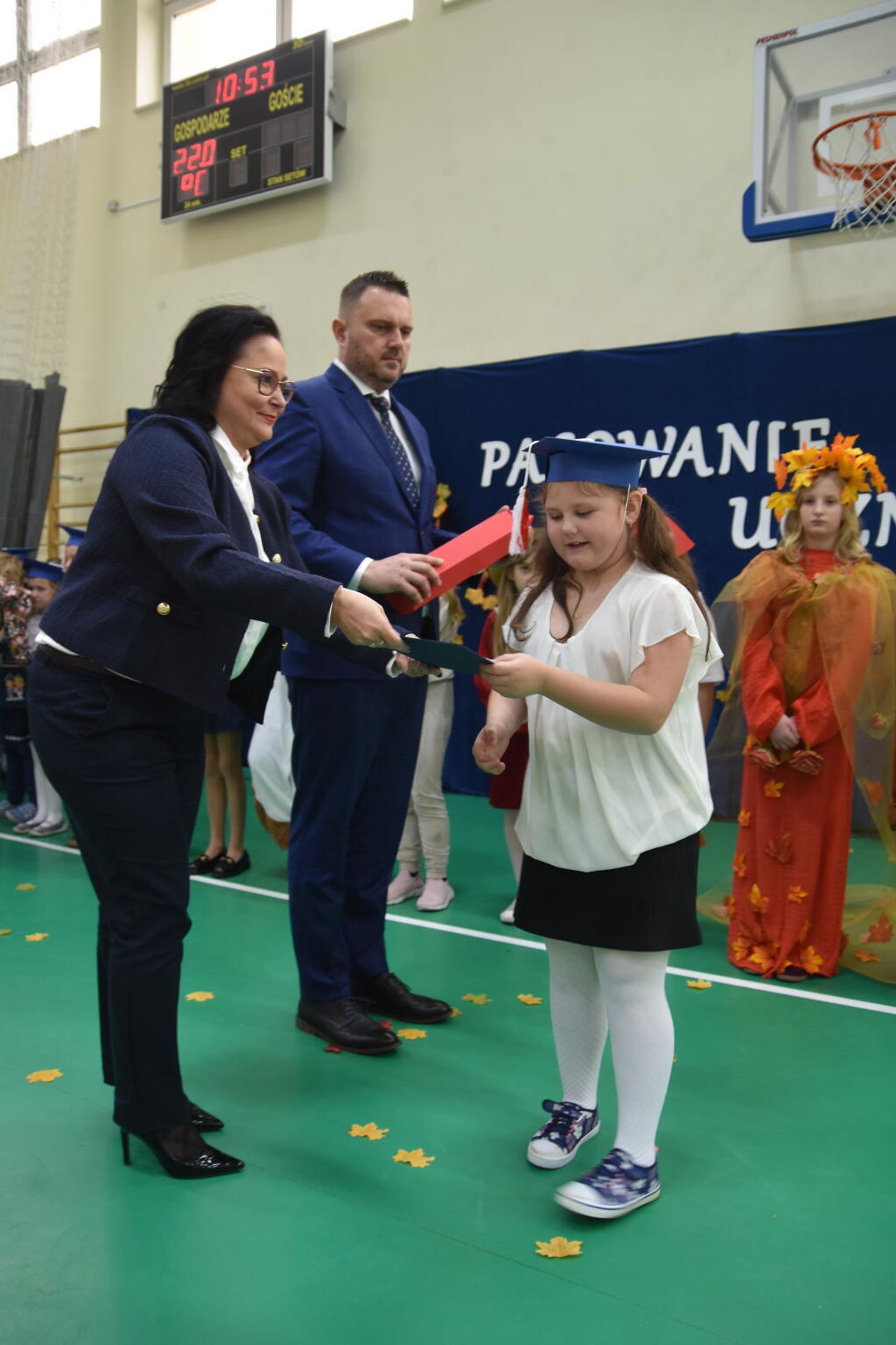 Uroczystość rozpoczęła się od występów przygotowanych przez najmłodszych uczniów. Pierwszaki zaprezentowały wesołe piosenki, starannie wyrecytowane wierszyki oraz pełne energii tańce. Ich zaangażowanie i talent wzbudziły aplauz wśród zgromadzonych gości, rodziców oraz starszych kolegów i koleżanek. W trakcie akademii dzieci odpowiadały na różne pytania, udowadniając, że już wiele się nauczyły i są gotowe do pełnienia roli prawdziwych uczniów.