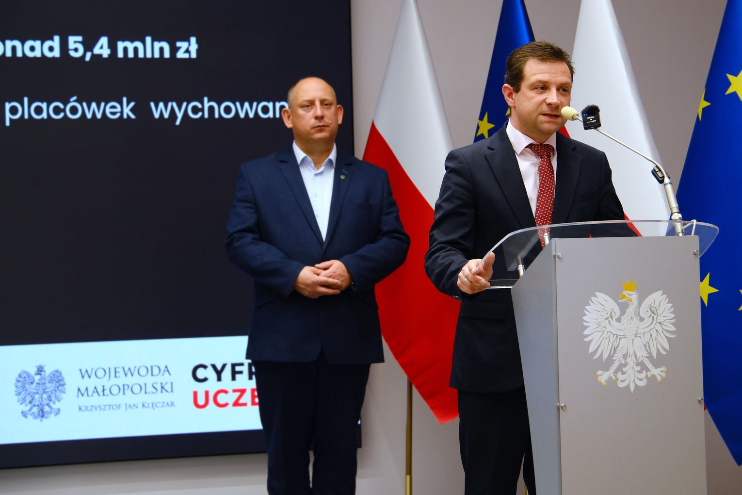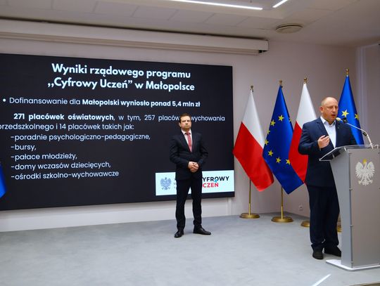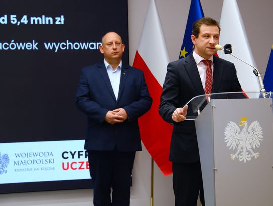 - Inwestowanie w kompetencje cyfrowe młodego pokolenia to nie tylko odpowiedź na wyzwania współczesności, ale także możliwość wyrównywania szans edukacyjnych w całym regionie. Program „Cyfrowy Uczeń” to krok w stronę nowoczesnej, dostępnej dla wszystkich edukacji. Dofinansowanych zostanie 271 placówek na kwotę ponad 5,4 mln zł. Z tych pieniędzy zakupione zostaną m.in. laptopy, cyfrowe materiały edukacyjne i ćwiczeniowe, oprogramowania czy tablety. W ten sposób rząd włącza się w rozwój młodego pokolenia poprzez wdrażanie nowoczesnych technologii już na poziomie wychowania przedszkolnego - mówi wojewoda małopolski Krzysztof Jan Klęczar.