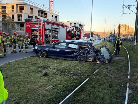 Na ulicy Pachońskiego w Krakowie doszło do poważnego wypadku, w którym samochód osobowy zderzył się z tramwajem. Na miejscu zdarzenia pracowały wszystkie służby ratownicze, w tym straż pożarna, pogotowie ratunkowe i policja. Ruch tramwajowy został całkowicie wstrzymany, co powodowało utrudnienia komunikacyjne w tej części miasta.
