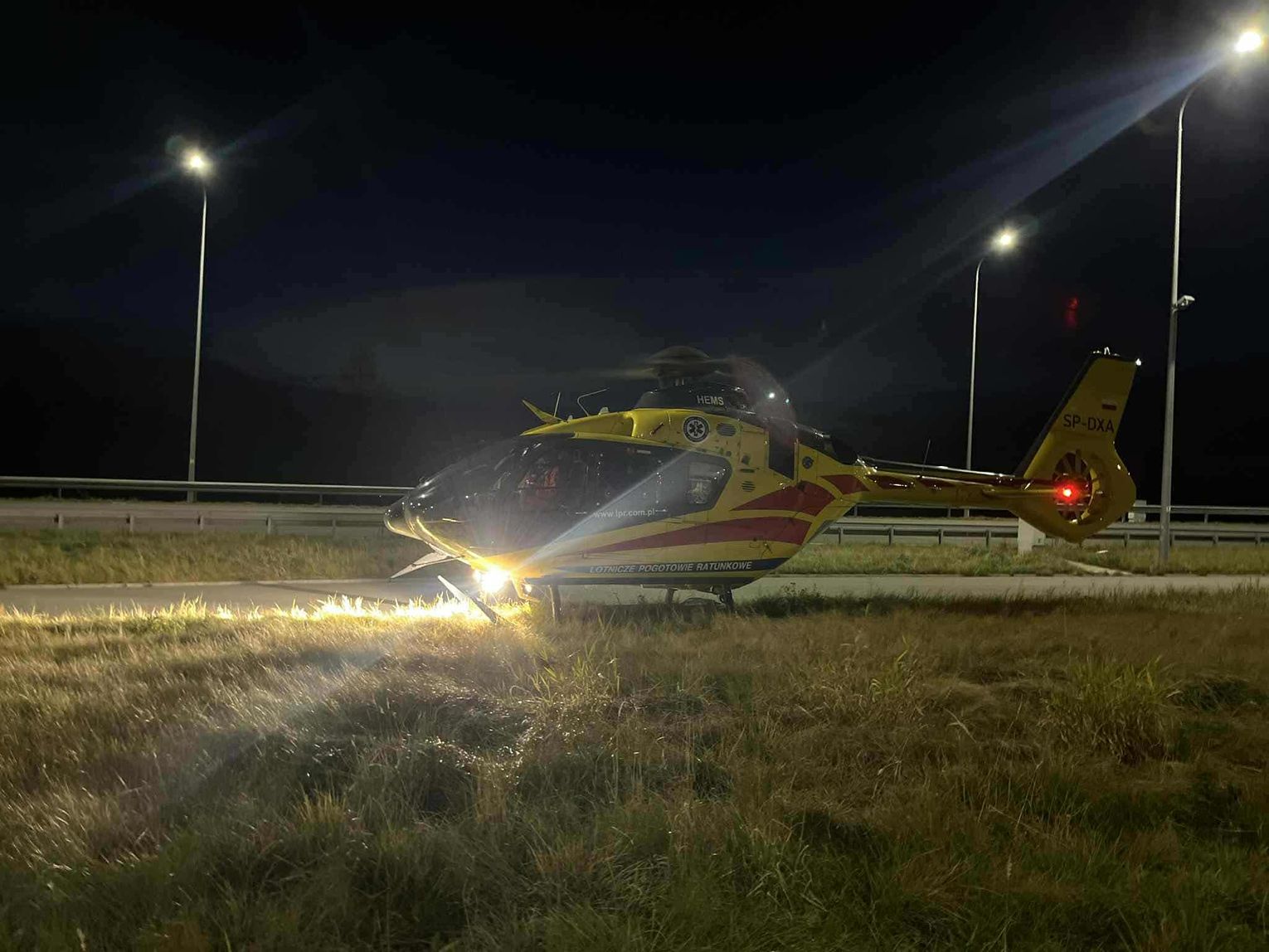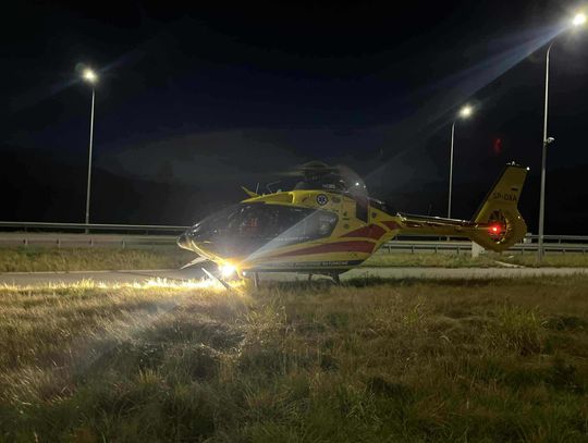 Do poważnego wypadku doszło w środowy wieczór 19 listopada w Pieniążkowicach. Mężczyzna, który odniósł obrażenia po wybuchu akumulatora musiał pilnie trafić do szpitala. Śmigłowiec LPR lądował przy tunelu na Zakopiance, a następnie został przetransportowany do szpitala.