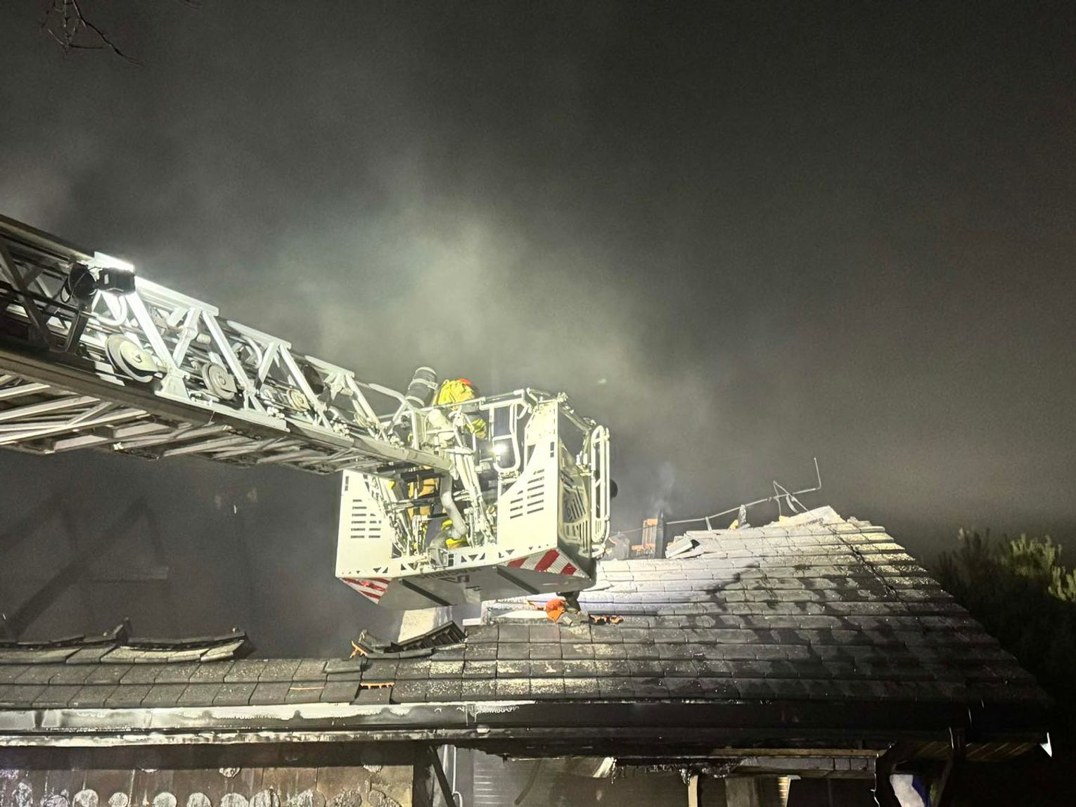 Akcja obejmowała gaszenie pożaru oraz prace rozbiórkowe i trwała blisko 5 godzin.