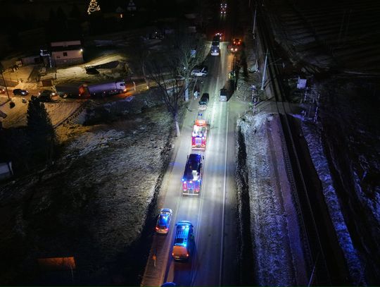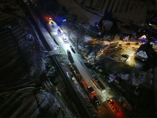Dwie osoby zostały przetransportowane do szpitala; ich życiu nie zagraża niebezpieczeństwo. Droga jest całkowicie zablokowana. Na miejscu trwają czynności służb — prosimy o omijanie tego odcinka i stosowanie się do poleceń policjantów.