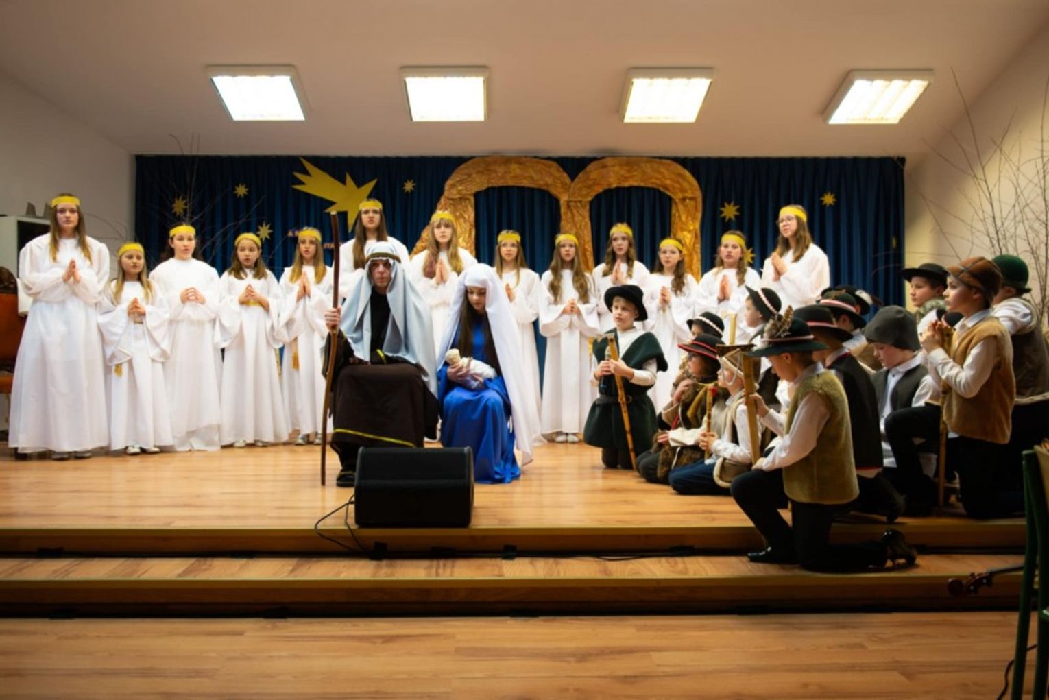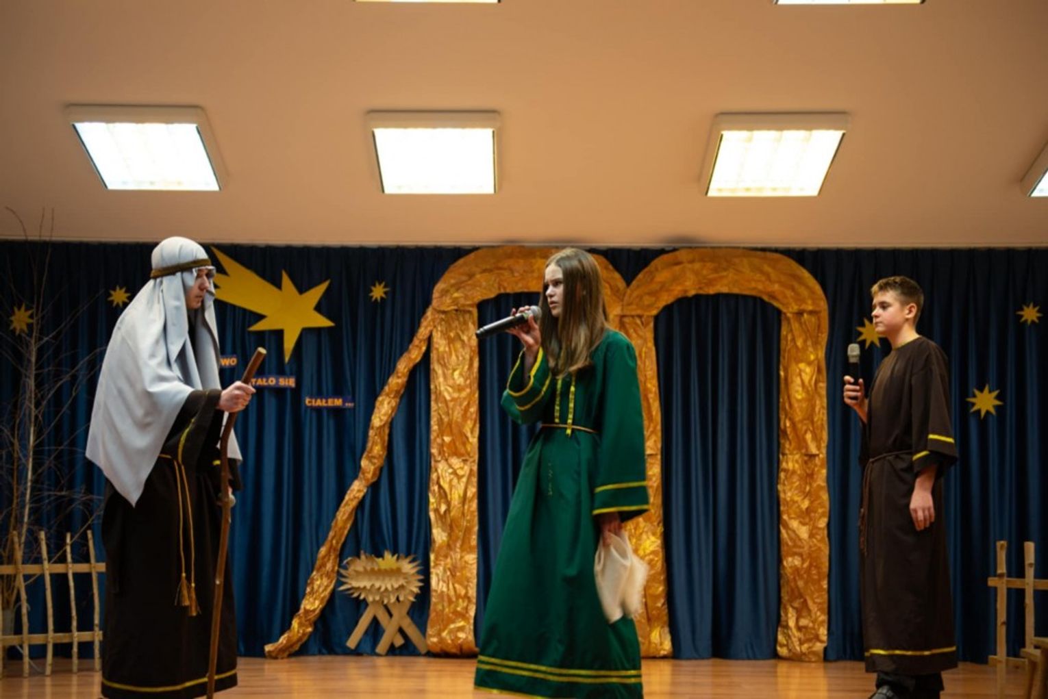 Zespół przygotowujący przedstawienie tworzyli uczniowie od klas najmłodszych do najstarszych, którzy z ochotą i zaangażowaniem pracowali nad przygotowaniem przedstawienia jasełkowego i pięknie odtworzyli role Świętej Rodziny, mieszkańców Betlejem, Trzech Króli, aniołów oraz pastuszków, pragnąc przybliżyć tajemnicę Bożego Narodzenia. Płynące prosto z serca teksty, pełne dziecięcej wrażliwości, składały hołd małemu Jezusowi, prosząc o miłość, dobro i pokój na świecie. Zawarte w jasełkach treści religijne, przeplatane kolędami i pastorałkami, stworzyły niepowtarzalny nastrój oraz radość z narodzin Jezusa.