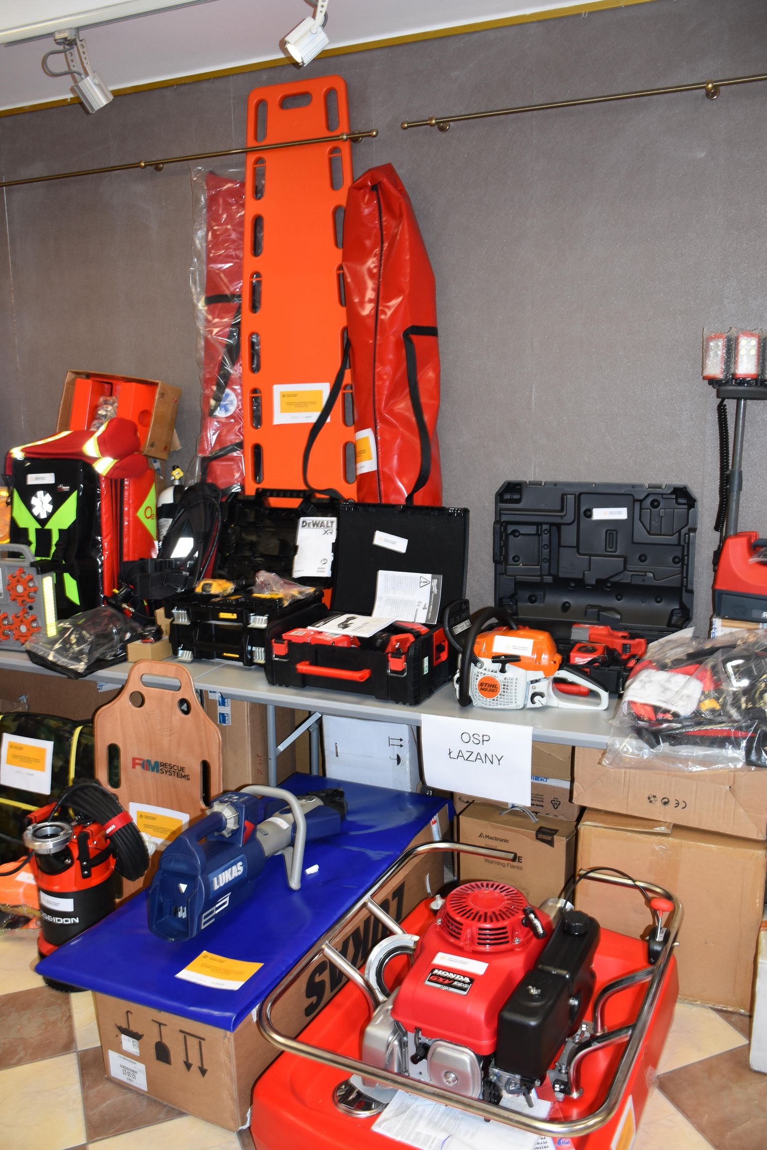 Dotacja pozwoliła na zakup m.in. łodzi płaskodennej, samochodu dostawczego z wywrotką, przyczepki do przewozu sprzętu, agregatu prądotwórczego, umundurowania, motopompy, ratowniczego zestawu hydraulicznego o napędzie elektrycznym oraz urządzenia samojezdnego do usuwania i likwidacji zagrożeń na drogach.