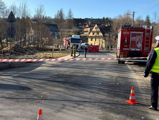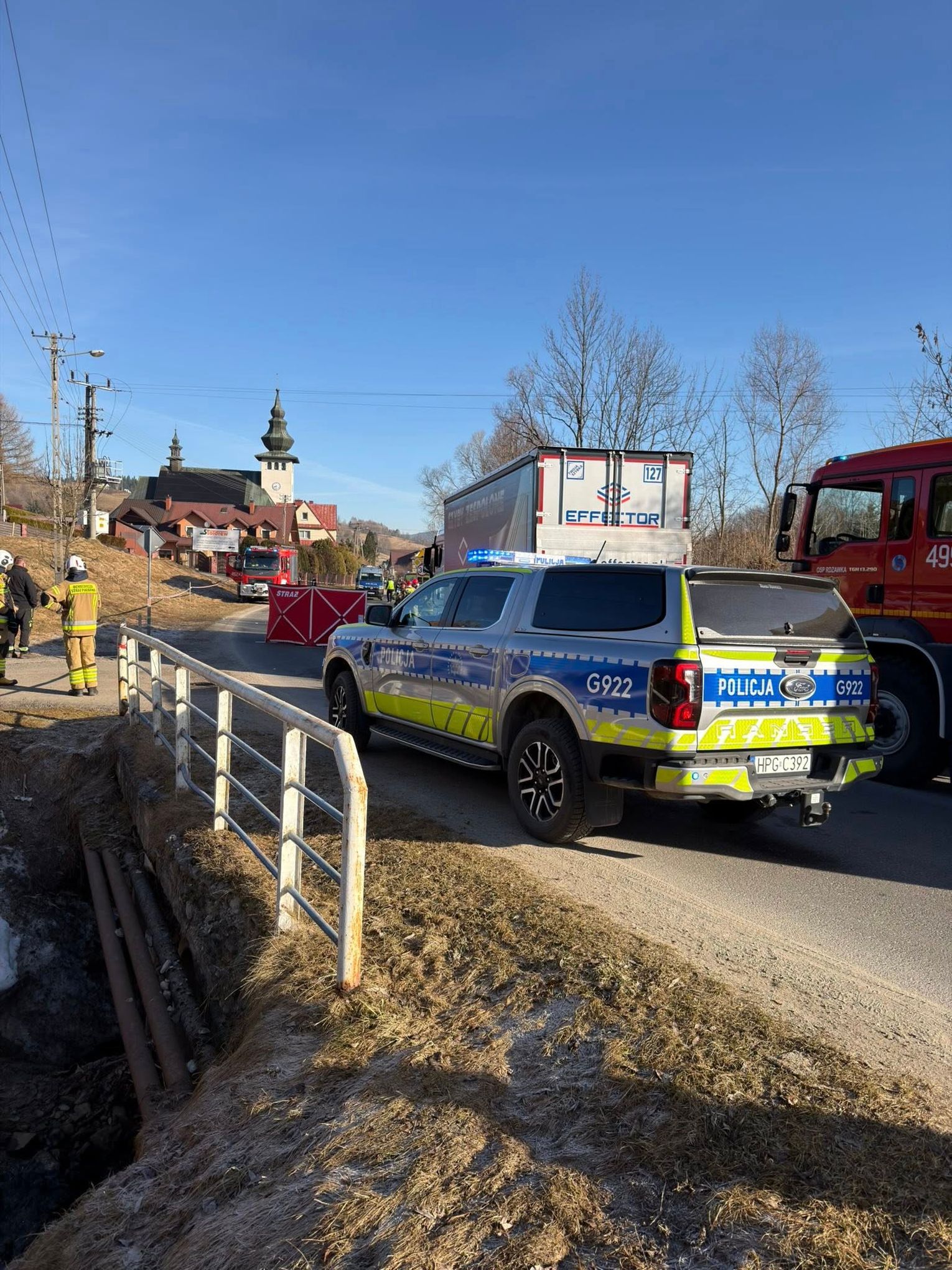 Na miejscu pracują służby ratunkowe oraz policja. Droga w miejscu zdarzenia jest obecnie całkowicie nieprzejezdna. Utrudnienia mogą potrwać około 3 godzin.