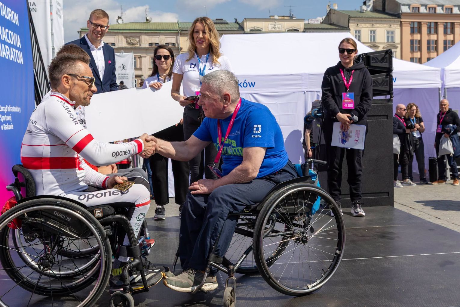 W kategorii zawodników z niepełnosprawnościami startujących na wózkach zwyciężył Rafał Wilk. Doświadczony paraolimpijczyk osiągnął czas 1:09:05, potwierdzając swoją klasę i dominację w tej kategorii.