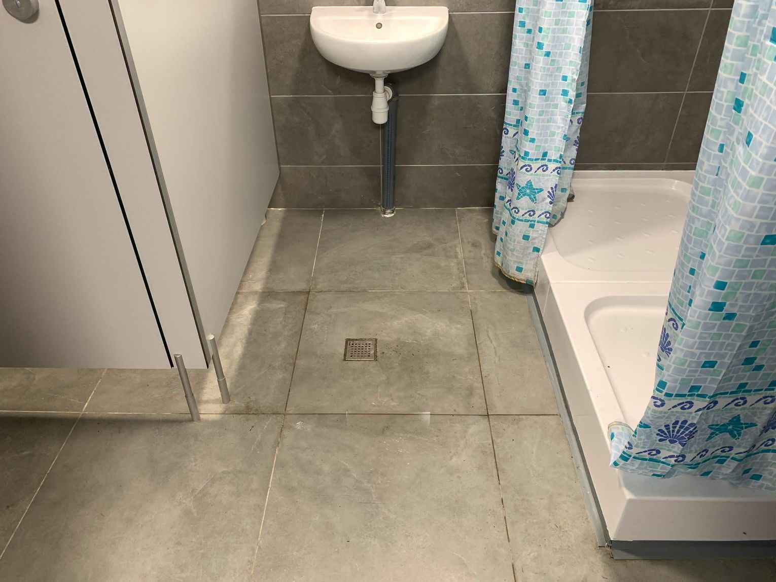 Istotnym elementem było także wykonanie nowej wylewki wraz z izolacją w pomieszczeniu sanitarnym, co ma bezpośredni wpływ na trwałość i funkcjonalność zaplecza. Dodatkowo uzupełniono listwy wokół okien od zewnętrznej strony budynku, poprawiając jego estetykę oraz szczelność.