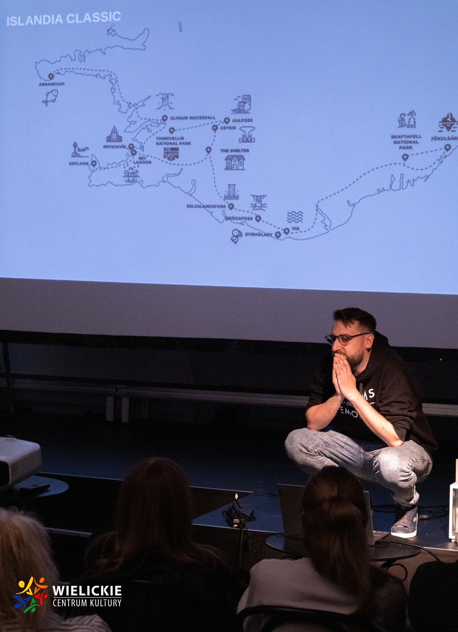 Spotkanie w Wielickim Centrum Kultury miało nie tylko inspiracyjny, ale również praktyczny wymiar. Prelegent dzielił się konkretnymi wskazówkami dotyczącymi organizacji podróży – od wyboru najlepszego terminu wyjazdu, przez rekomendacje miejsc wartych odwiedzenia, po kwestie bezpieczeństwa i logistyki. Nie zabrakło także informacji o mniej oczywistych aspektach podróżowania po Islandii, które mogą mieć kluczowe znaczenie dla komfortu wyprawy.